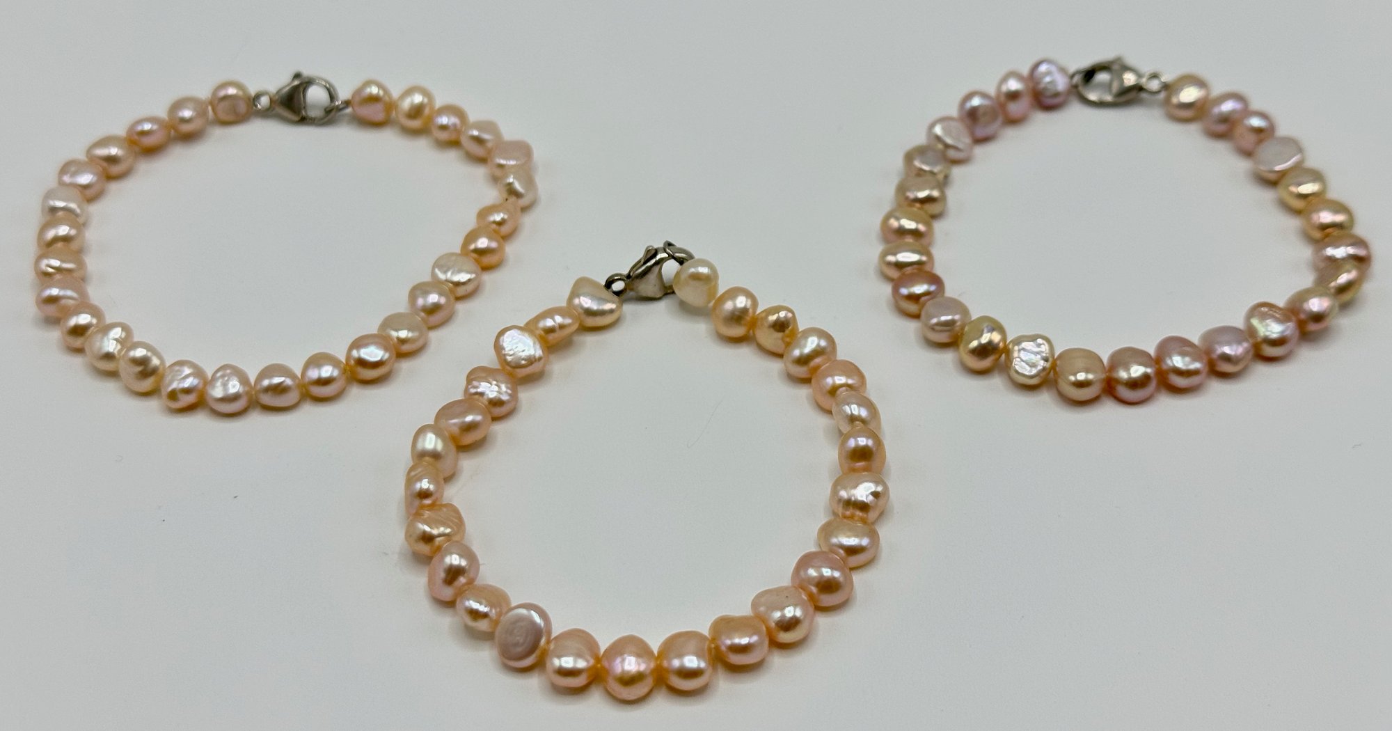 3 New Fresh Water Pearl Bracelets By Honora, 8 Inches, With Sterling Clasps