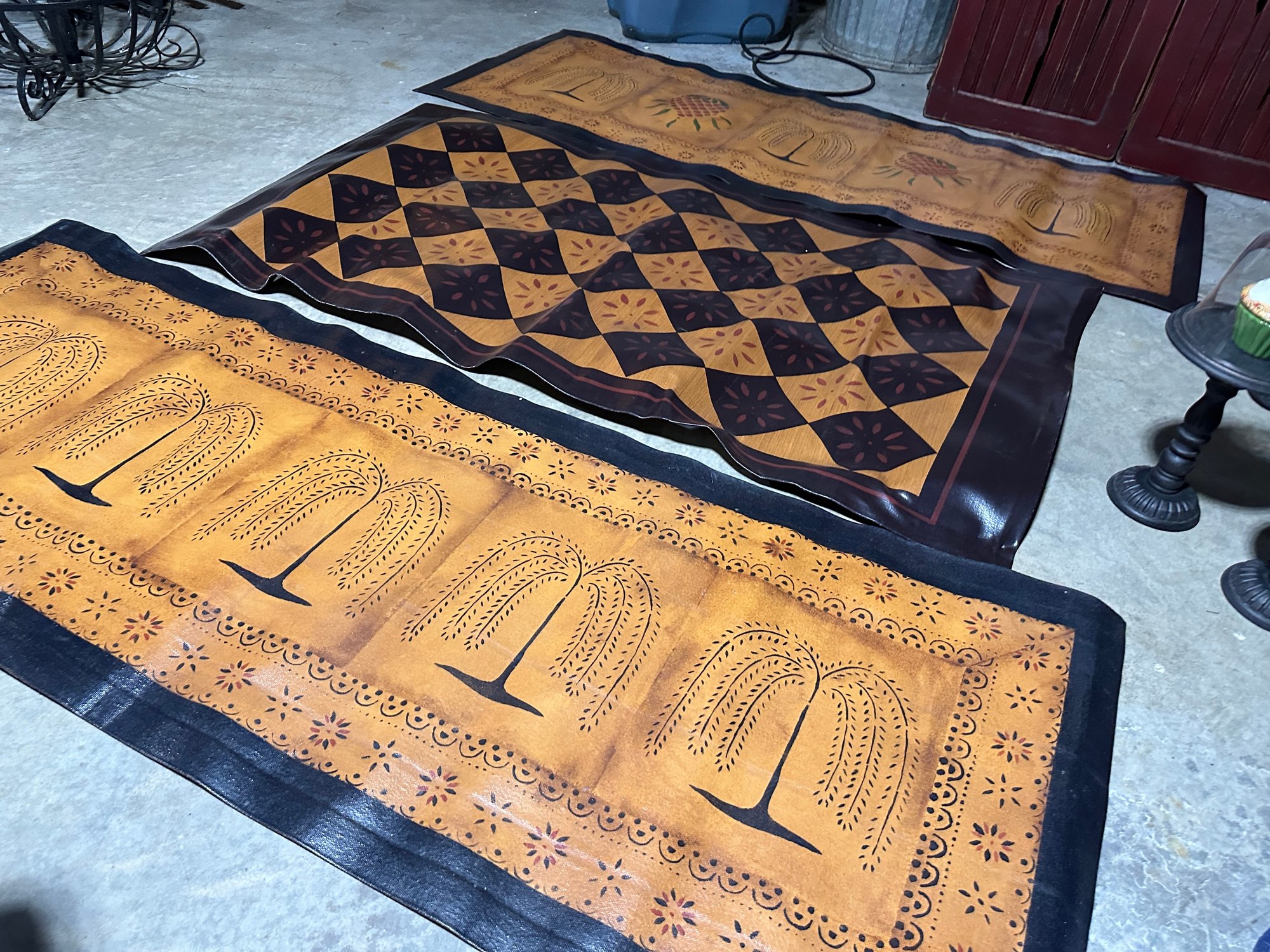 pineapple 26 x 69, pattern 23 x 60, willow trees 26 x69