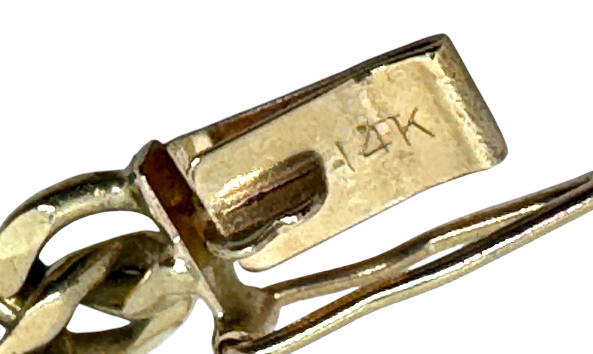 • Beautiful shine to this 30" flat figaro chain necklace with slide insert closure with safety. Insert stamped 14K.