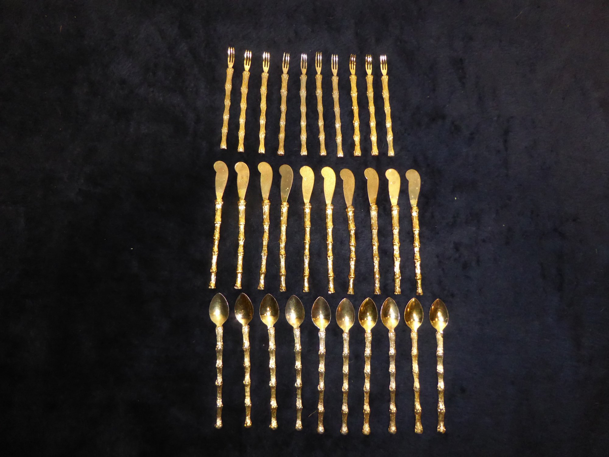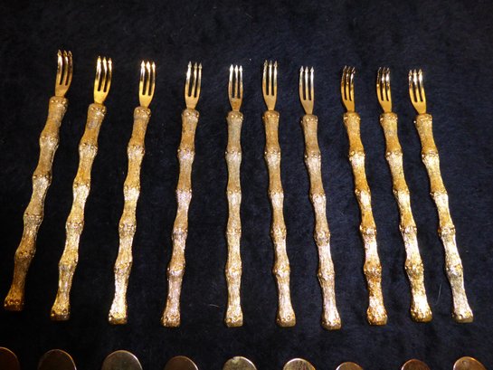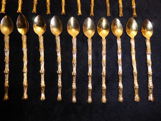 30 Piece Set Of Vintage 1950'S Flatware - Gold Tone Bamboo Style Handles