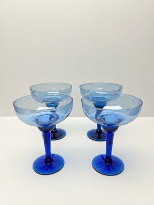 Set of 4 Blue Glass Margarita Glasses – 5 1/4" W x 6 3/4" H