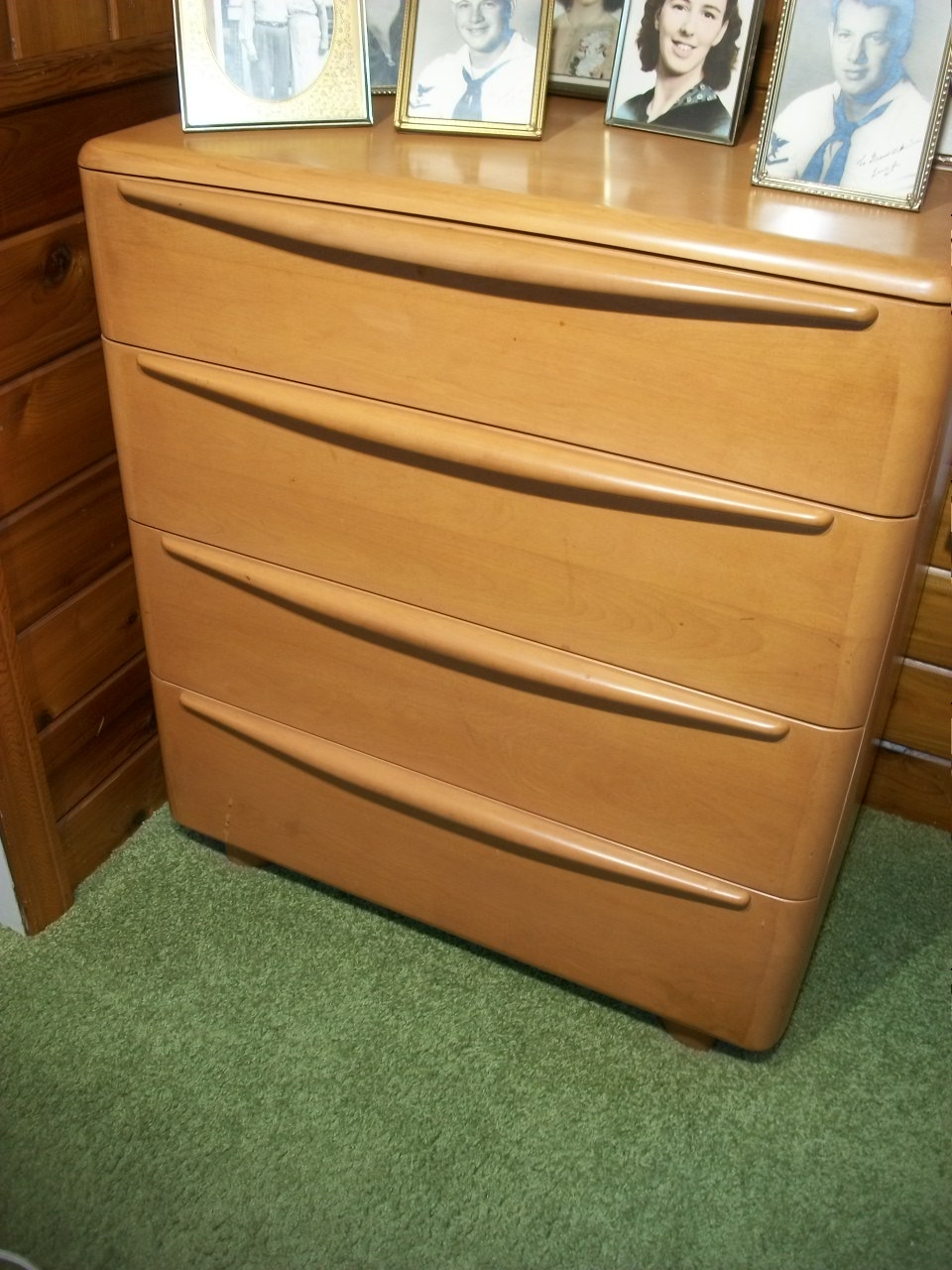 sun fading marks - 30" w x 33 1/2" H x 20" d - as you can see in the first couple photos there were family photo frames on top of this dresser (NOT MOVED FOR 55+ YEARS) . . .so there is a bit of fading where the photos stood. . . (as shown in later photo). . . . as-is. . . . .ALL ORIGINAL FINISH . . . . . . WE ARE SORRY BUT NO HELP LABOR AVAILABLE AT PICKUP . . . .PLEASE BRING PROPER VEHICLE, ROPE, DOLLYS, HANDTRUCKS, AND LABOR . . . . . Thank You for looking at our auction. . . . . . this is a really nice estate sale in Fairfield,CT (minutes from Merritt Parkway or I-95). . . .when the estate attorney called me to look at this house. . .to be honest . . .over the phone . . .It didn't sound very good. . . .WOW WAS I WRONG !!!!. . . .this is a MID-CENTURY TIME CAPSULE !!!!! . . .BUT these people were not Mid Century collectors or anything like that, they bought all these items as their everyday furniture starting in the 1950's - 1980's . . . . . . .this couple was married in and moved in this house in 1948 and they bought furniture and it NEVER LEFT THE HOUSE. . . .(he passed in 2014 at 91 years old and his wife just passed in September 2018 at 92 years old) . . . . . . EVERYTHING HERE IS "FRESH TO MARKET". . . . .no additions . . . .EVERYTHING is "original owner". . . .very well kept . . . .well cared for. . . . .this was a non-smoking,no pets,no kids household. . . .condition on everything is good to very good. . . .ALL furniture is on the 1st floor (easy access). . .all items sold as-is . . .you should expect MINOR issues, wear, dings, scrapes, scratches,etc. . . .all consistent with age. . .any MAJOR issues or glaring defects will be mentioned. . . . pickup is at the house in Fairfield,CT . . . . . . .ALL ITEMS START AT $1 . . . . . . . see you at the pickup in Fairfield,CT . . . . . GOOD LUCK BIDDING ! - HAPPY HOLIDAYS