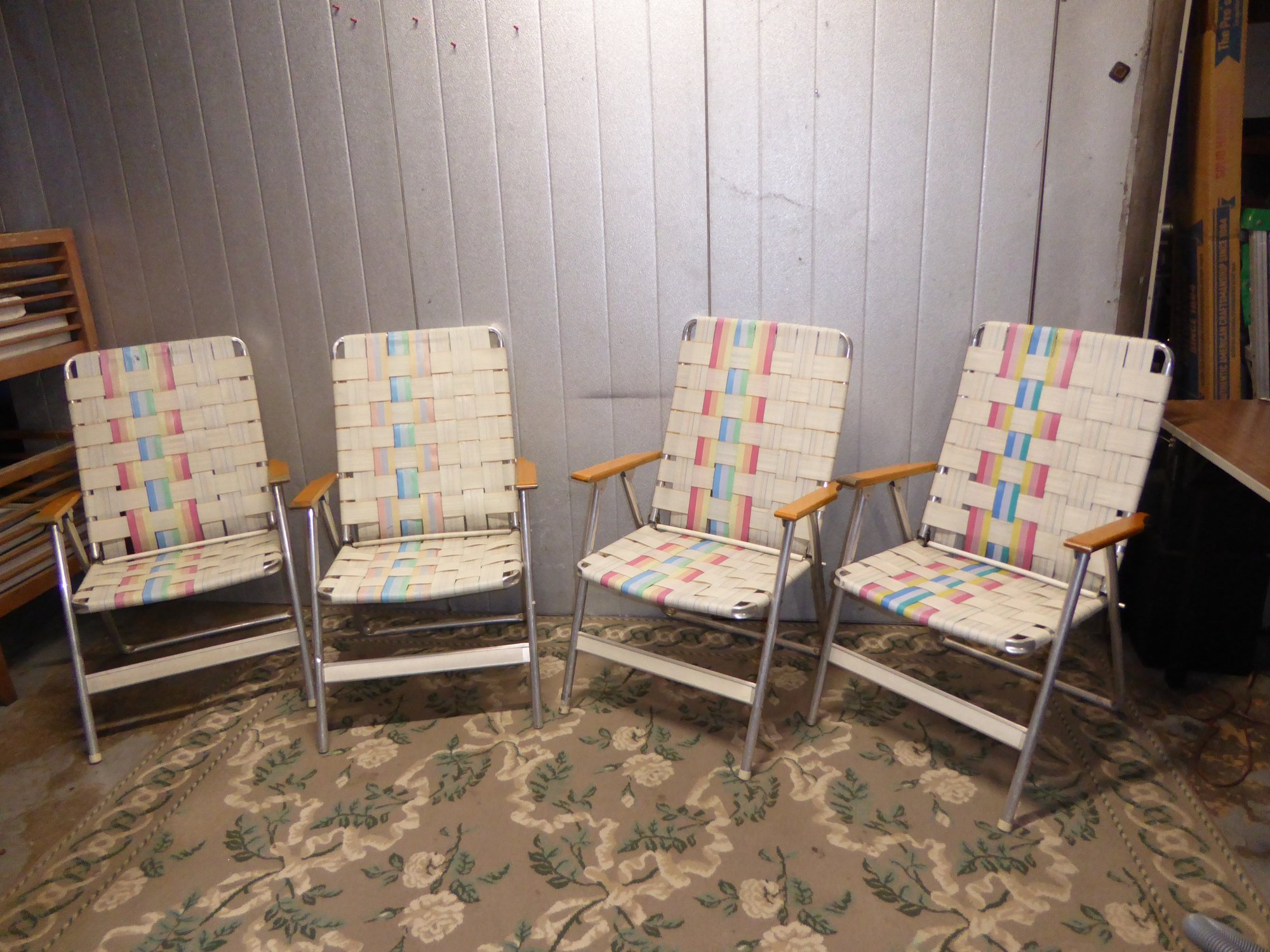 4 Matching Vintage Wood And Aluminum Nylon-Webbed Folding Beach Chairs