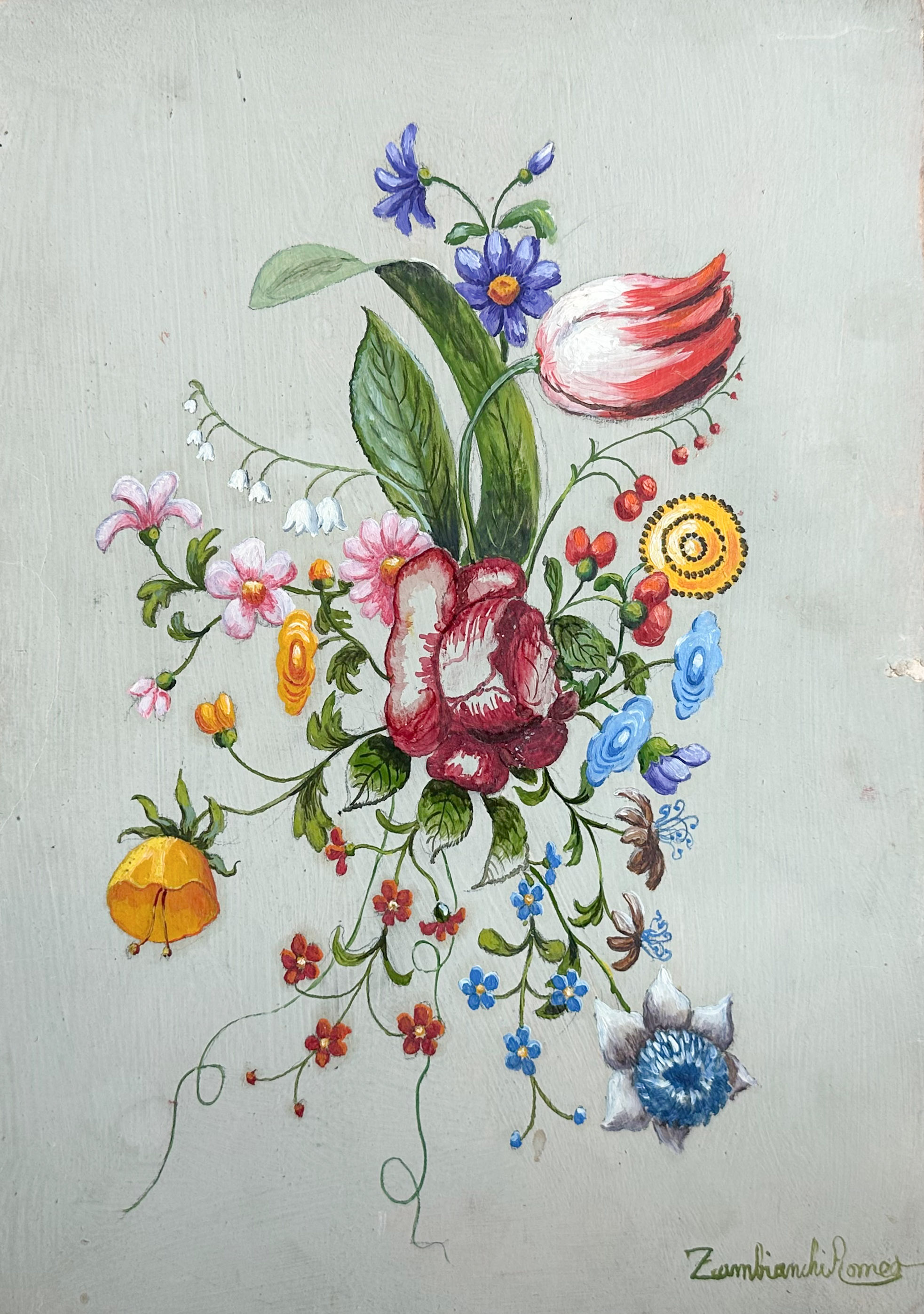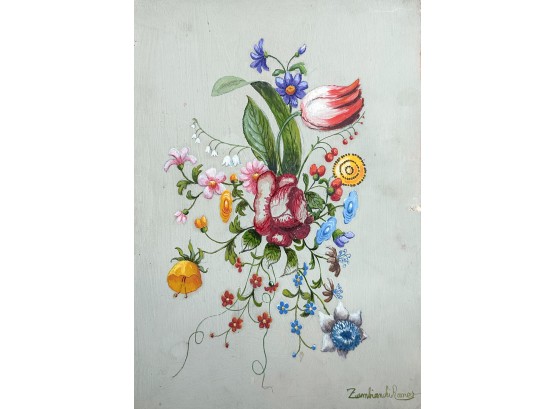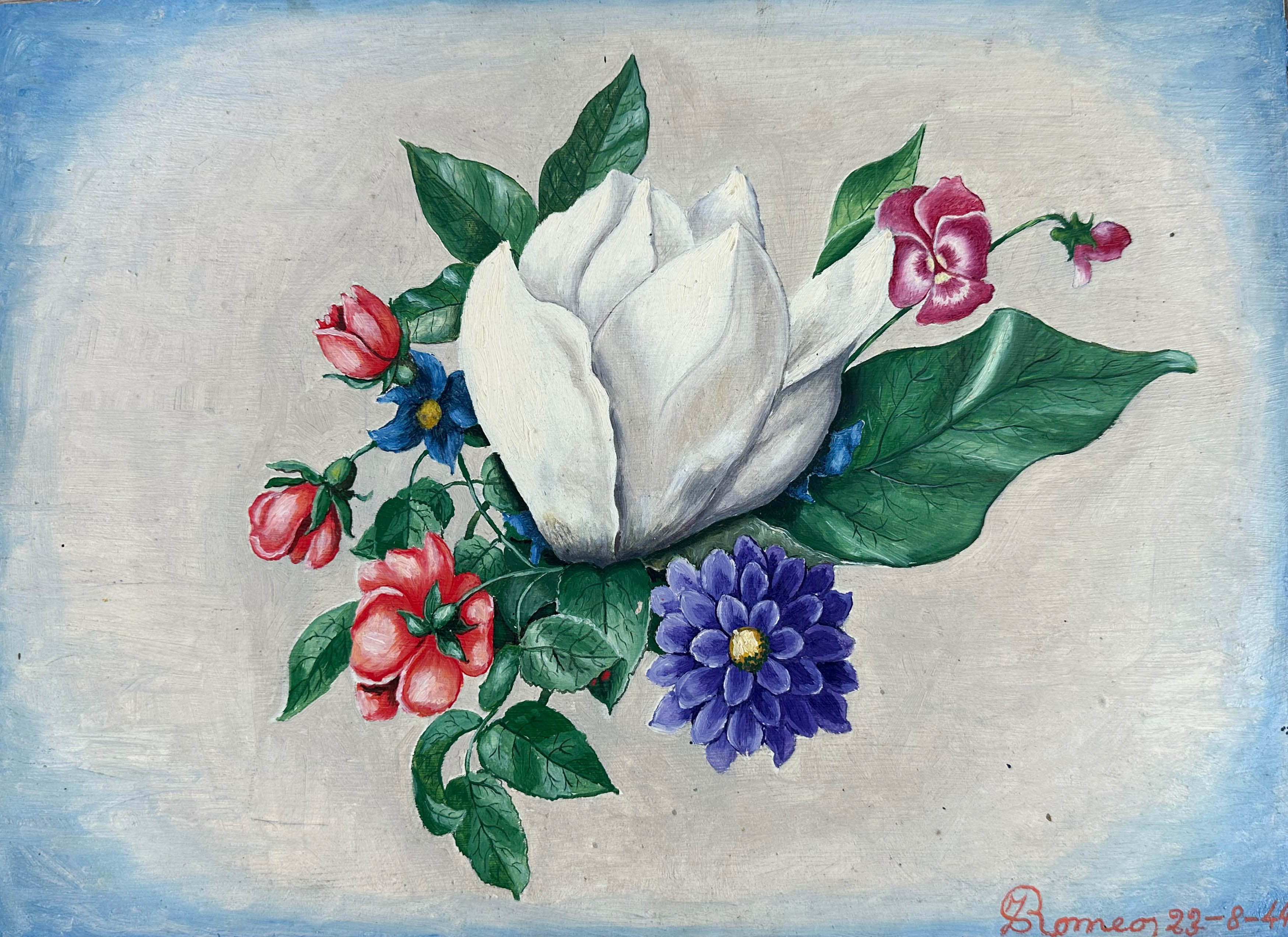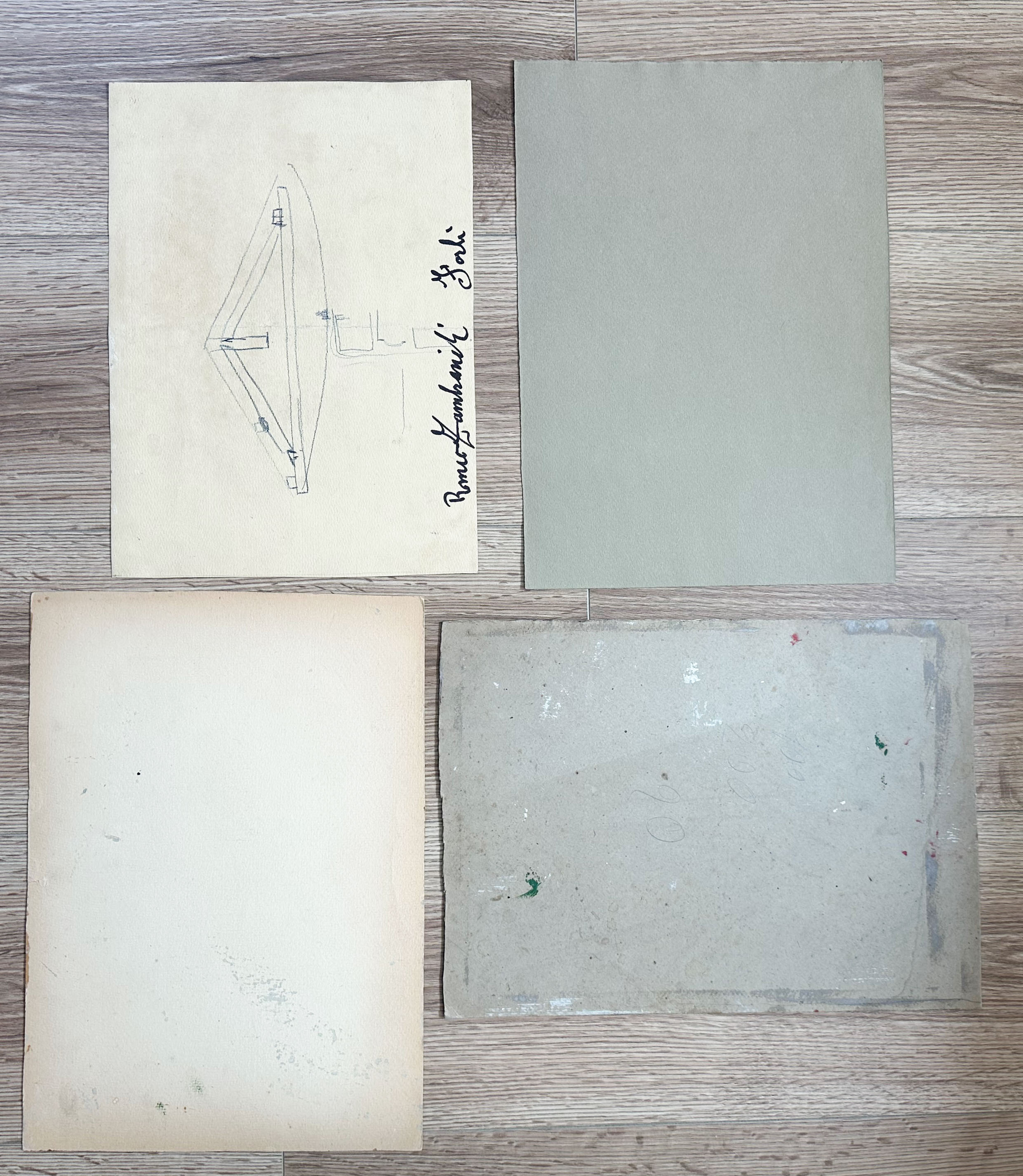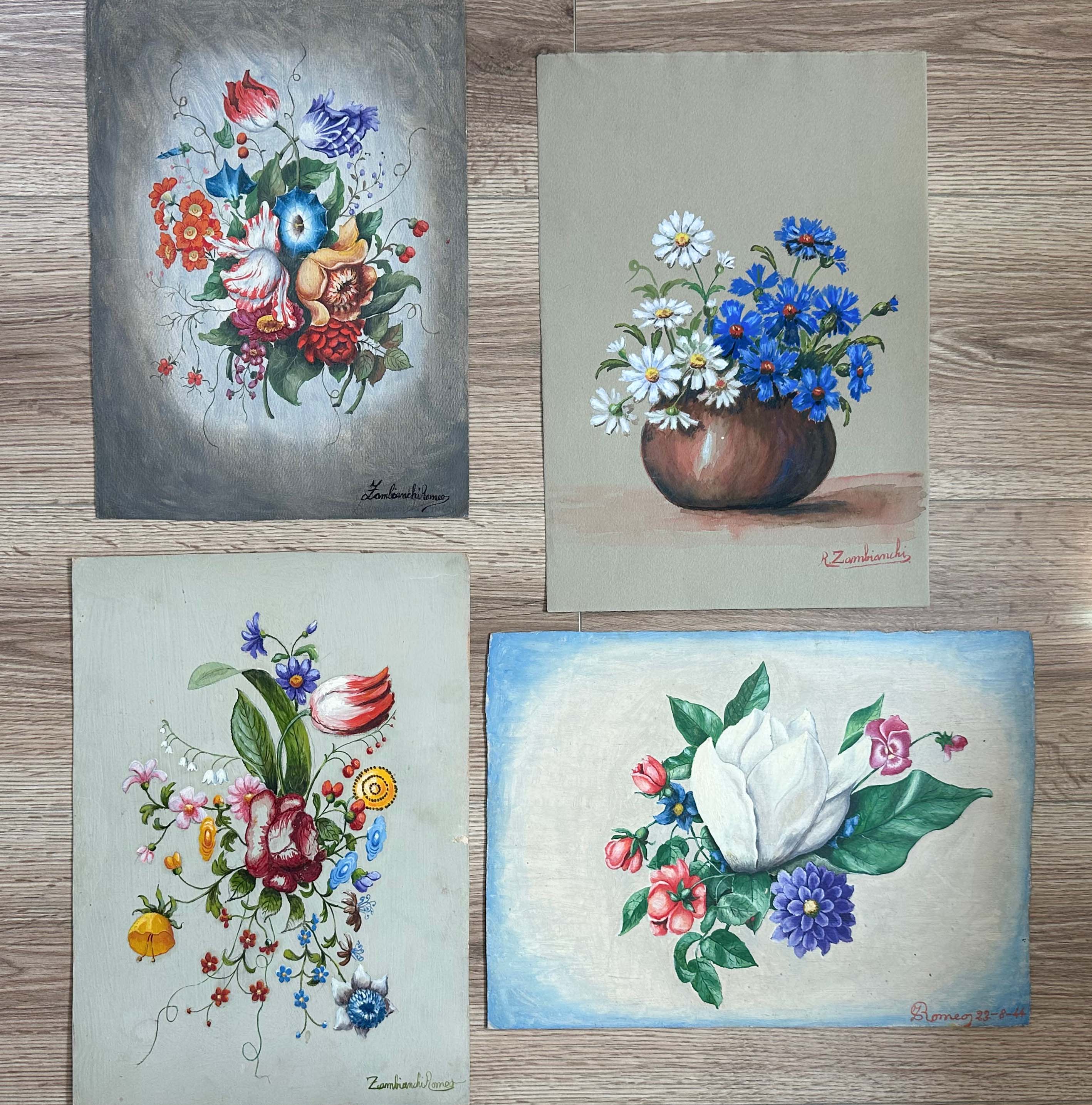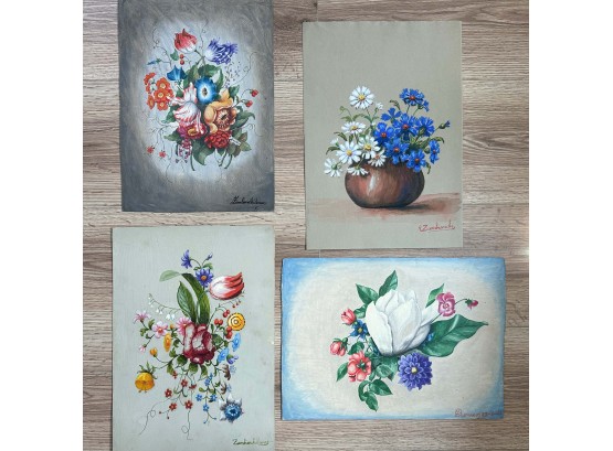 1 is 12 3/4” h x 9 1/4” w, 3 are 14” h x 9 3/4” w (the lower right painting is on board, all others are on paper.