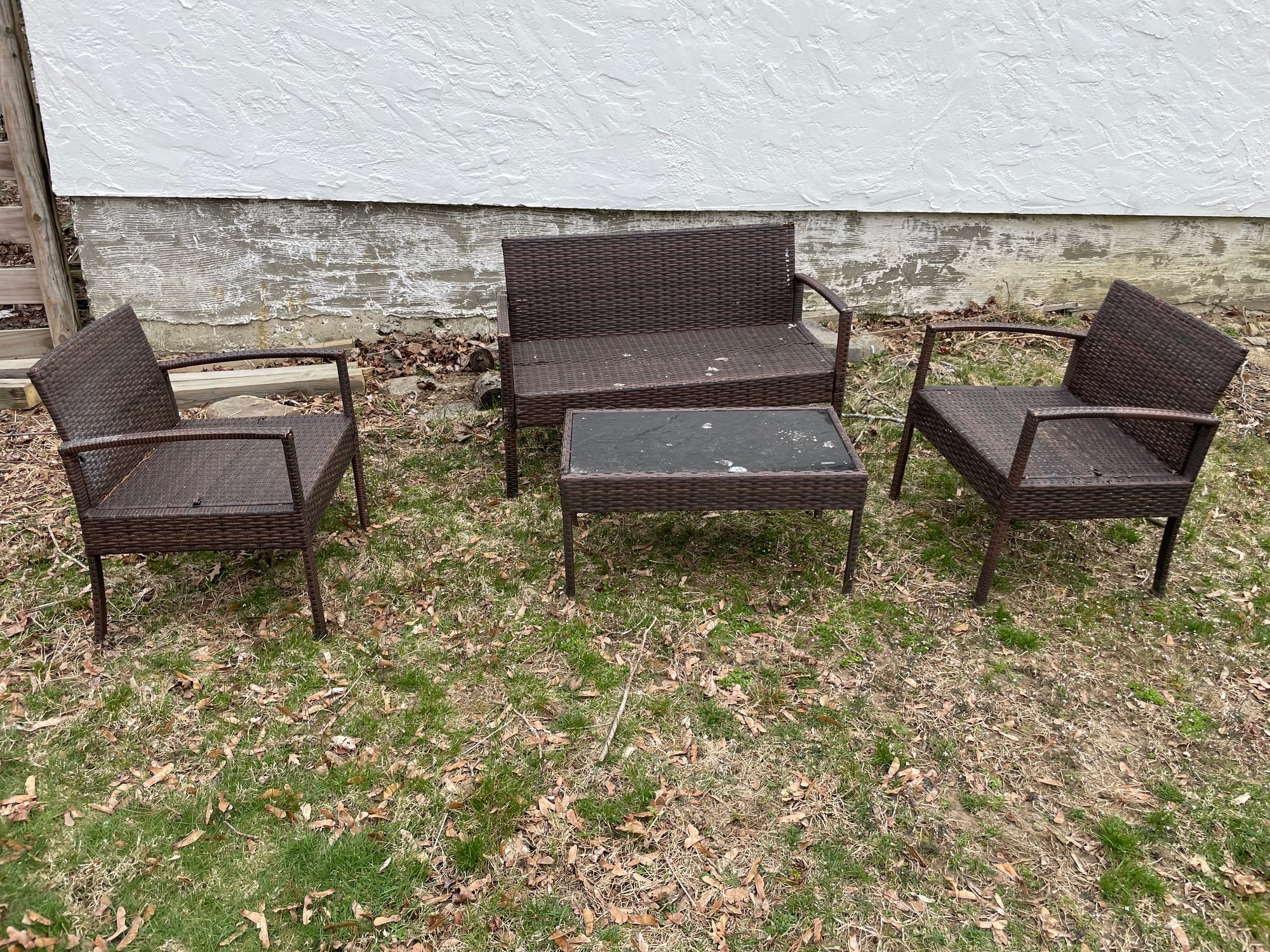4 Piece Rattan Outdoor Patio Table With Chairs