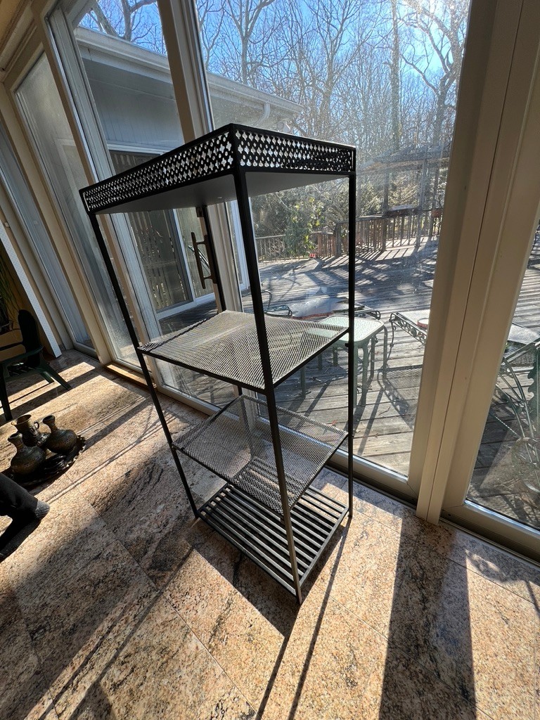 4 shelf metal unit, with mesh shelves