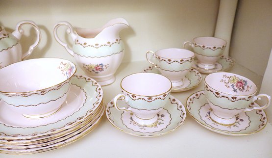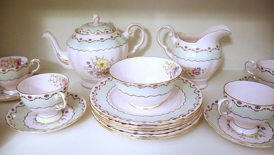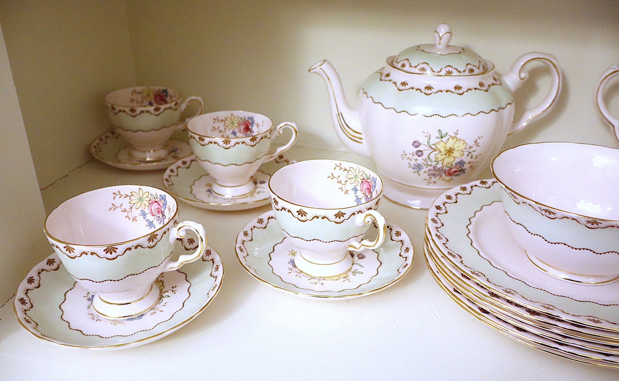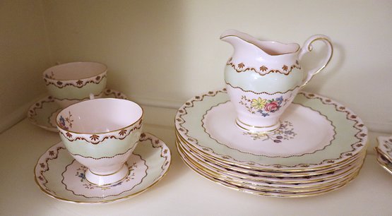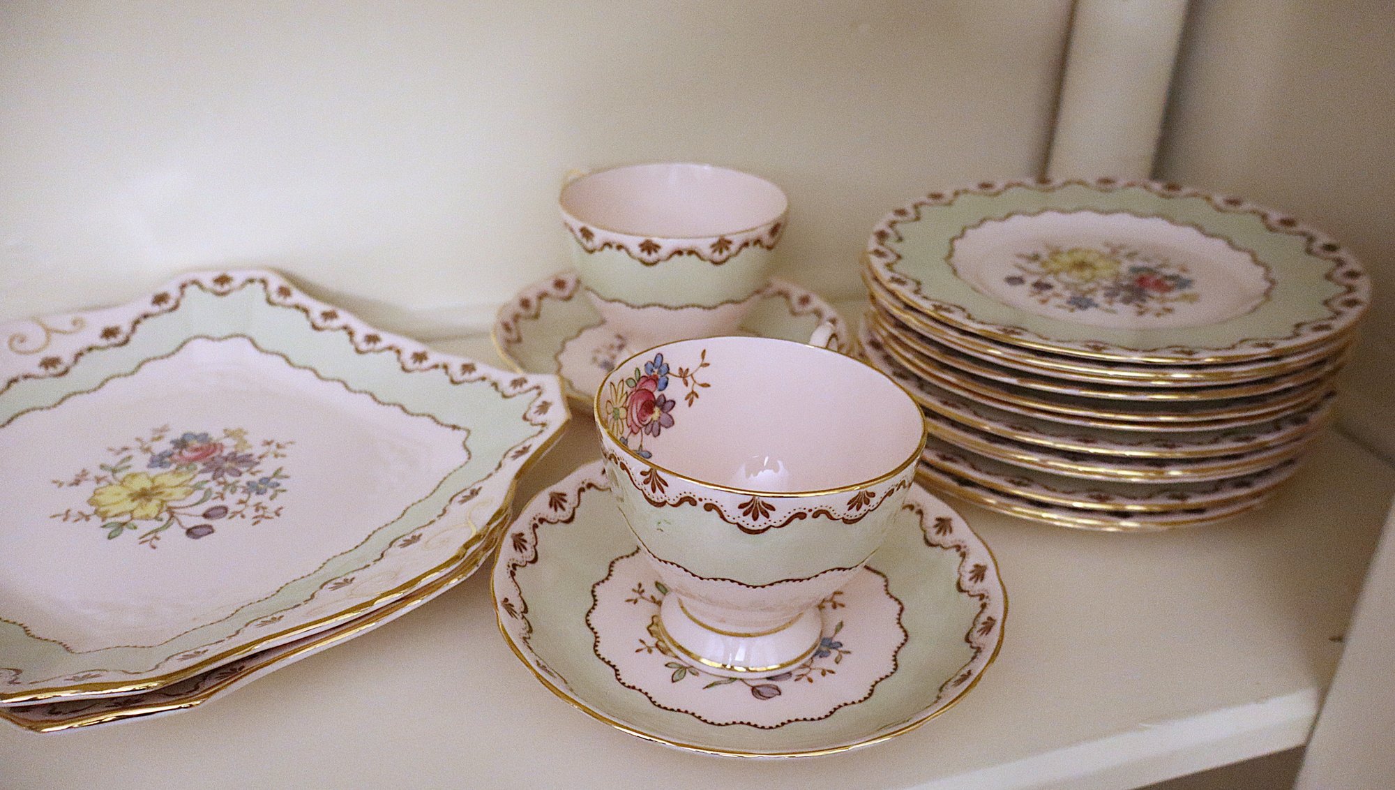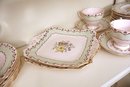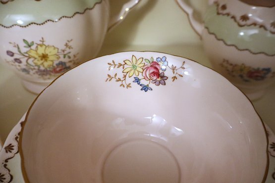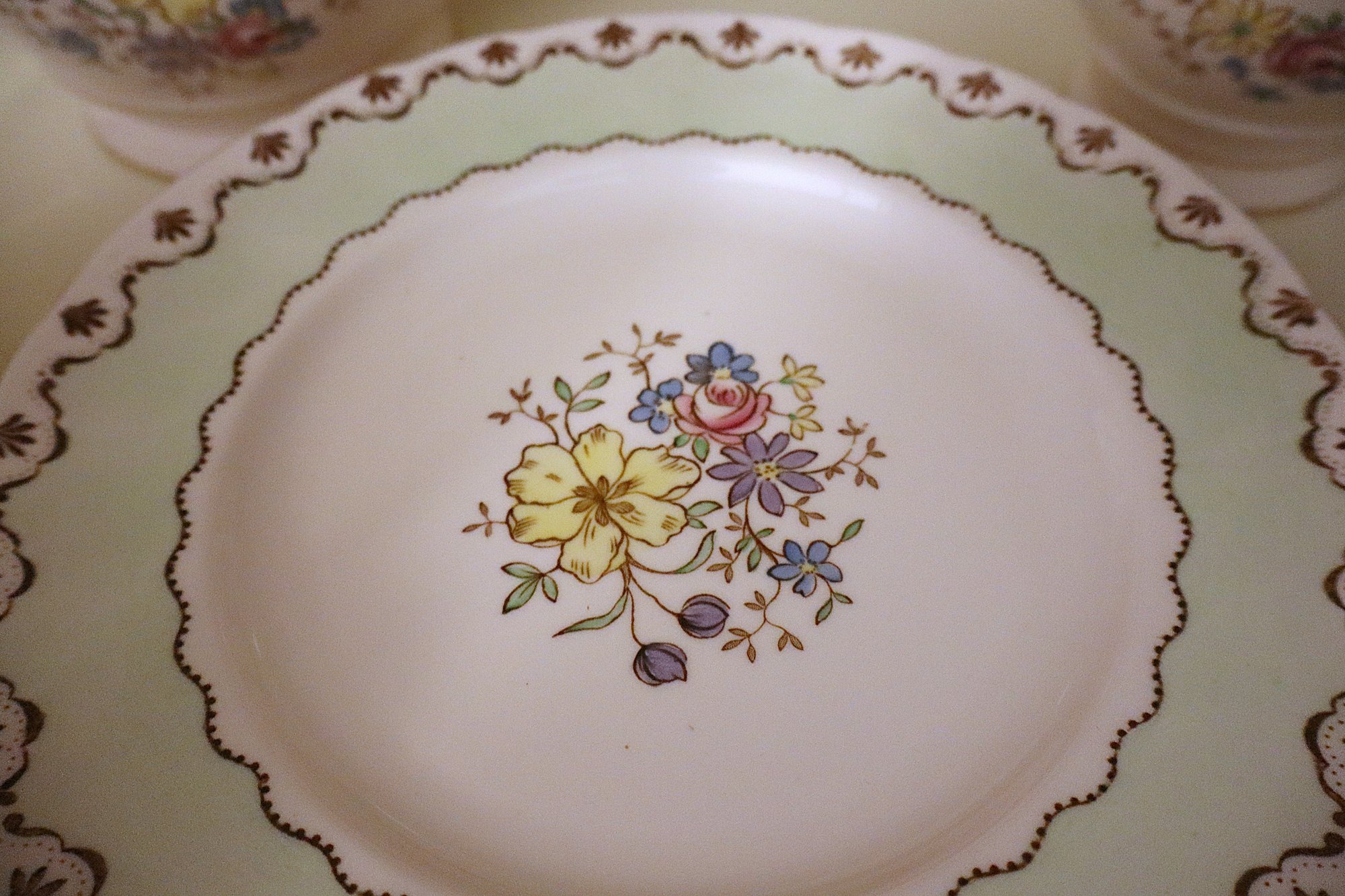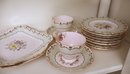 Pattern has hand painted flowers & scalloped edge with gold trim