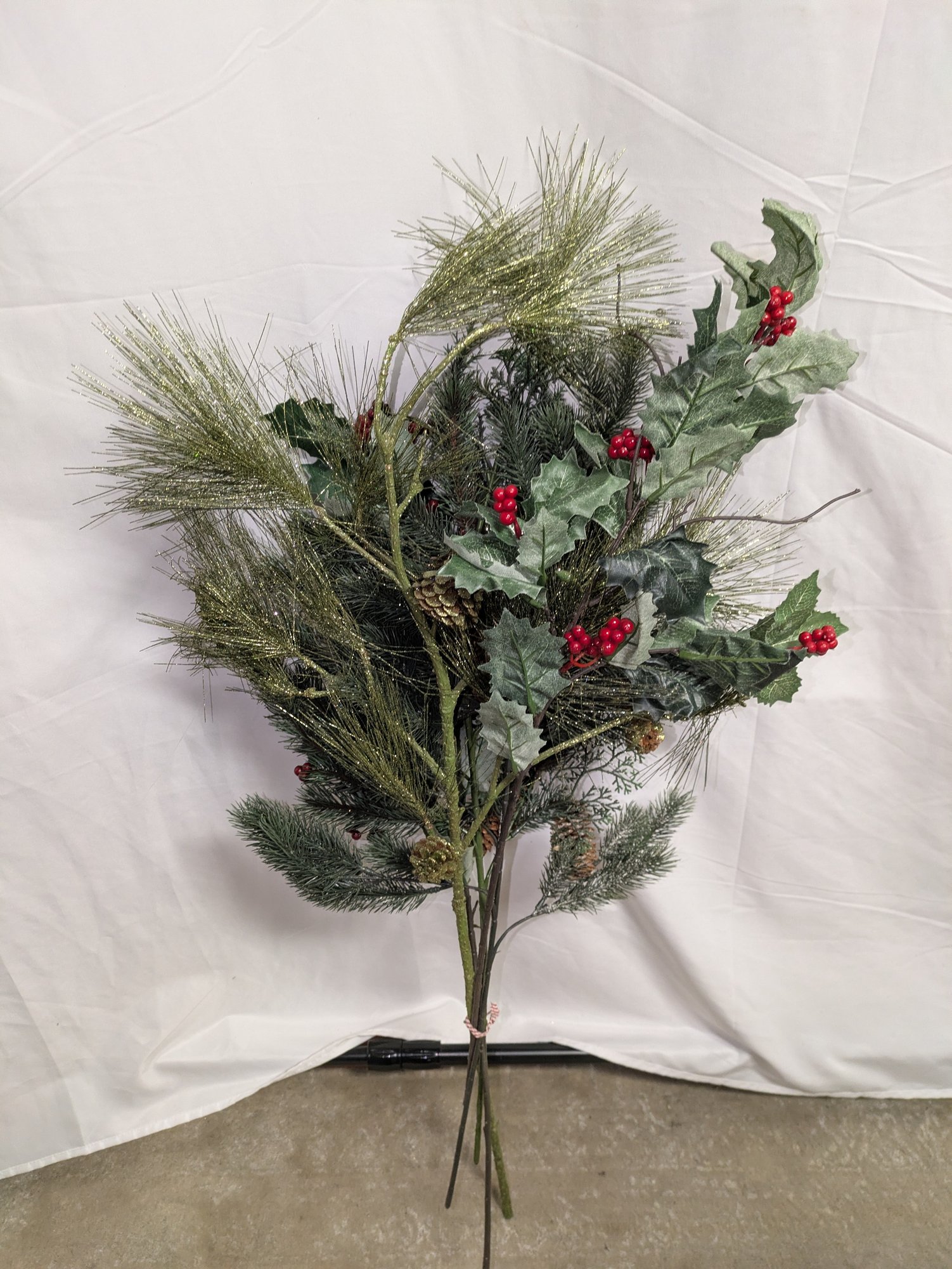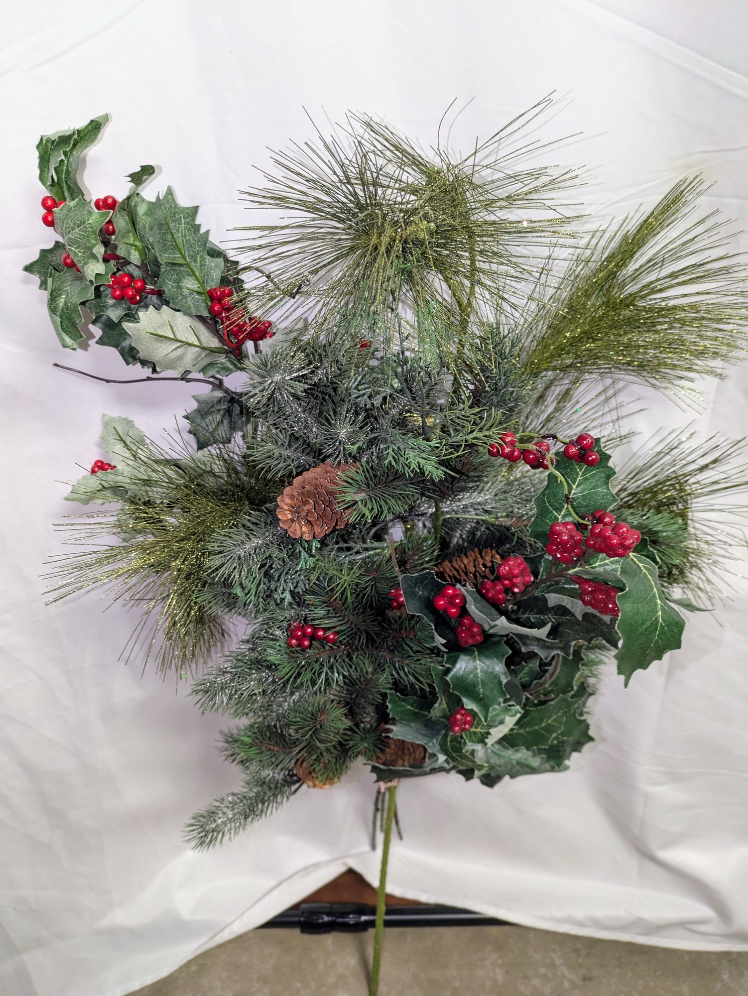 (5) Artificial Holiday Pine, Holly & Pinecone Floral Spray Picks