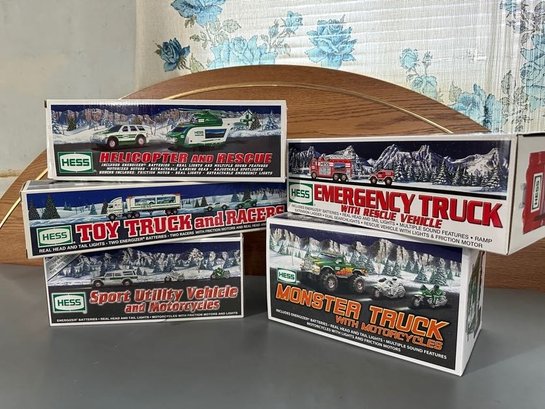 Monster truck 2007; emergency truck w/ rescue vehicle 2005,; Helicopter & rescue 2012; truck and racer 1997; sport utility vand and motorcycle 2004