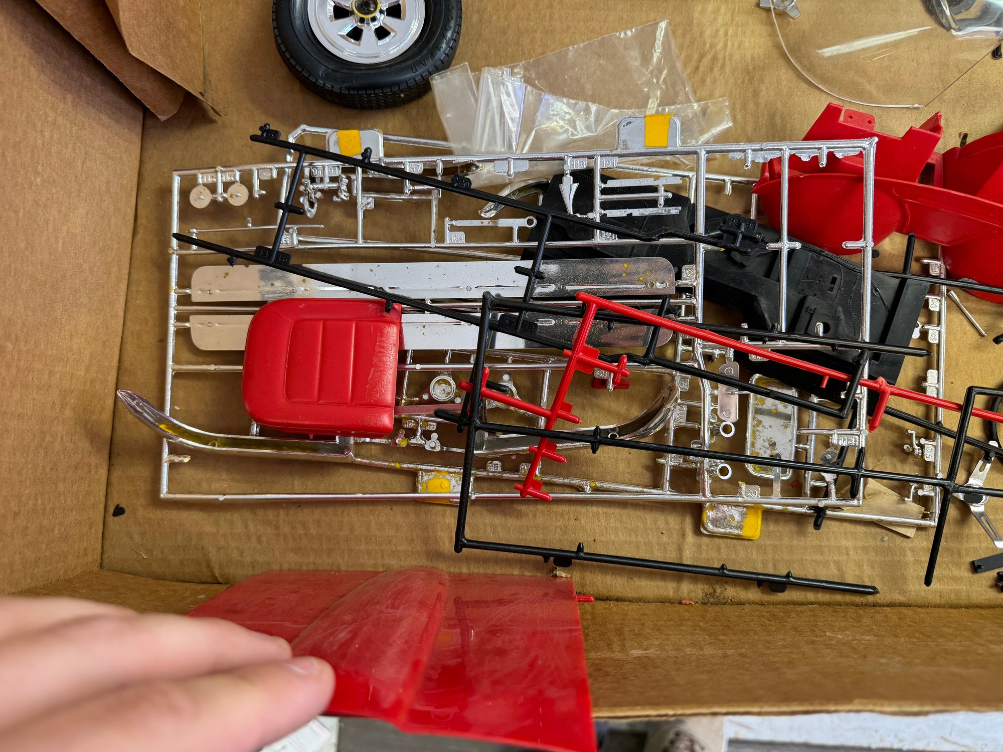 The box has some water damage but the contents inside appear undamaged. It appears to have most but of the parts inside but we urge bidders to view all photos for contents and use there best judgement.