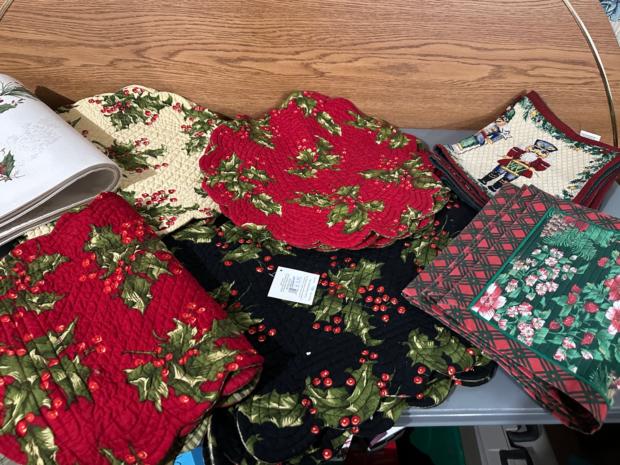7 Sets Of Holiday Fabric Placemats - Like New - Beautiful