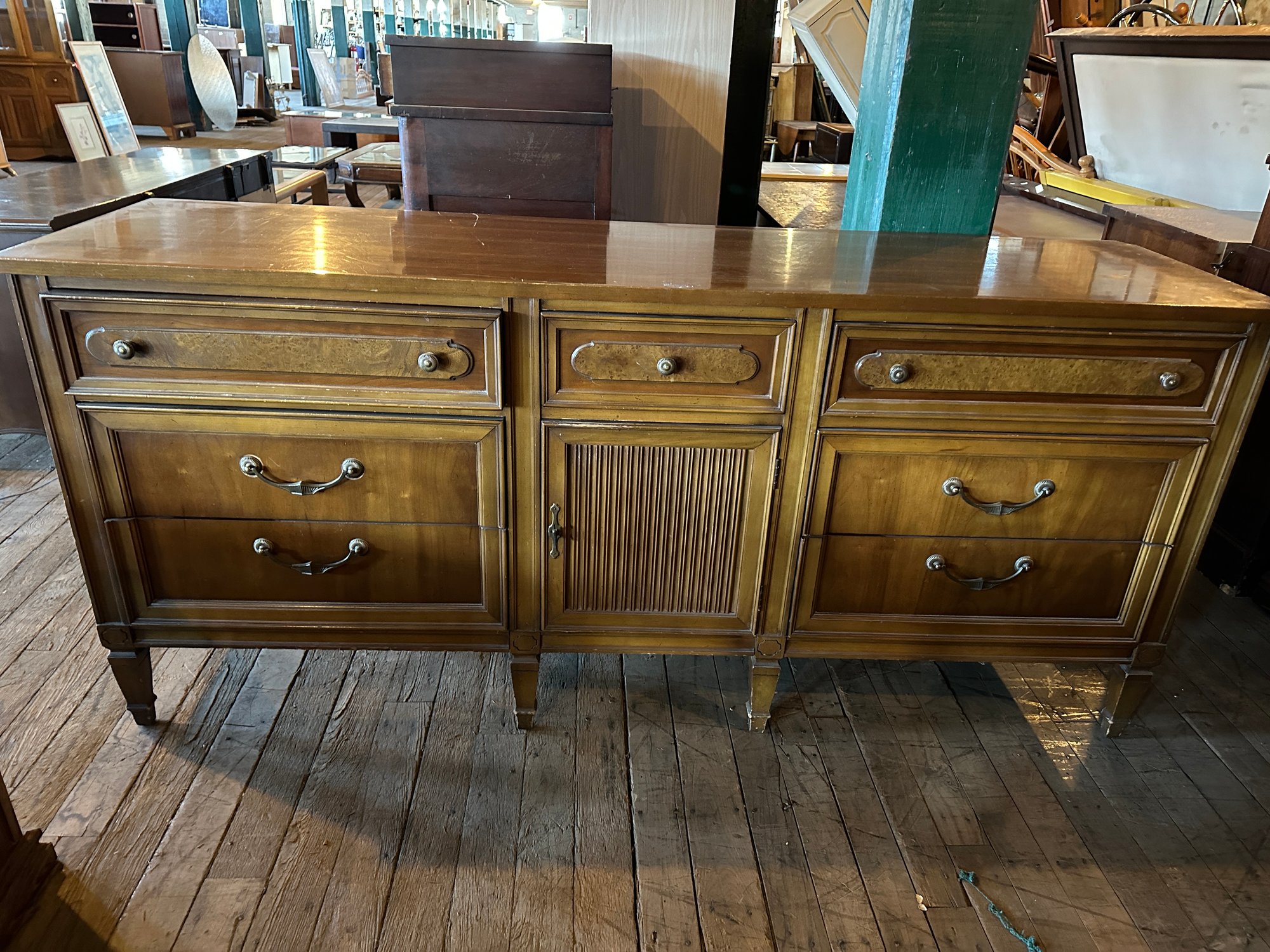 cabinet with two interior drawers . corner damage 71 1/2 x 19 1/2 x 32