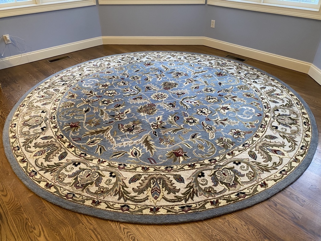 With elegant designs and a stylish border, the Mystic-William Rug from Kaleen is handcrafted from 100% virgin wool. Includes pad. Very good condition, minor wear.