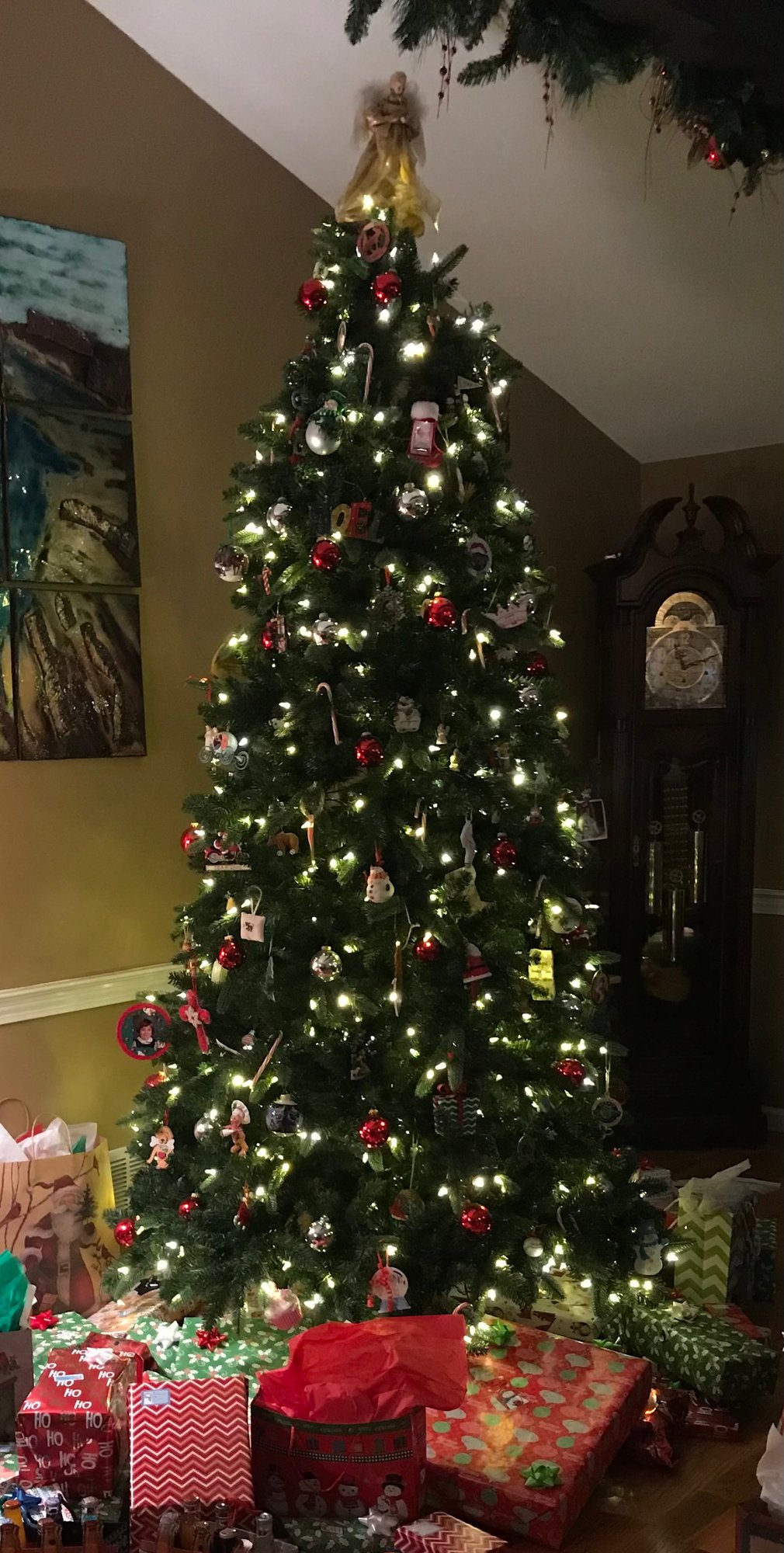Good shape, tree is in box. 54" by 19" by 18". This is just the tree, no ornaments, decor, or presents are included.