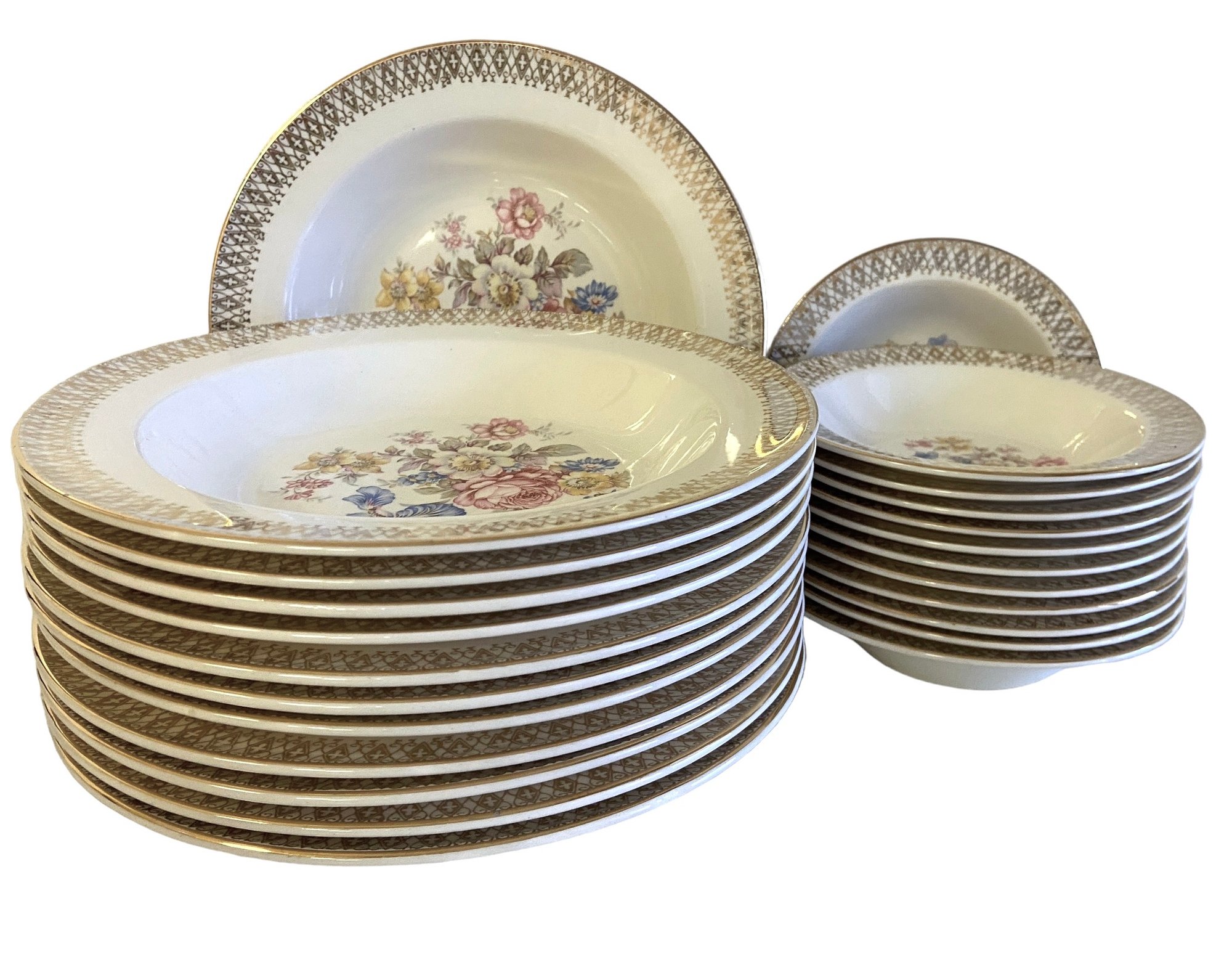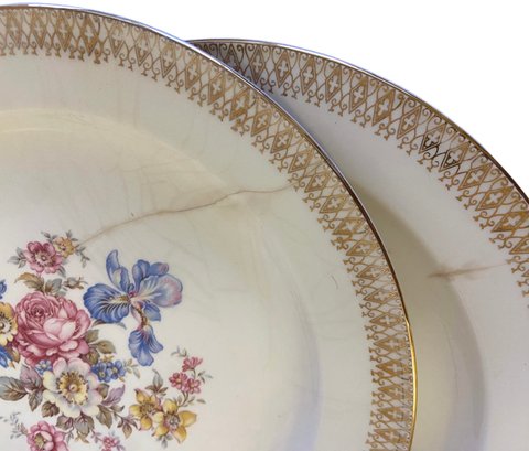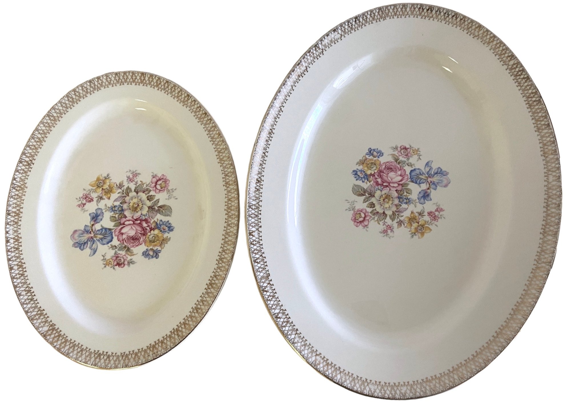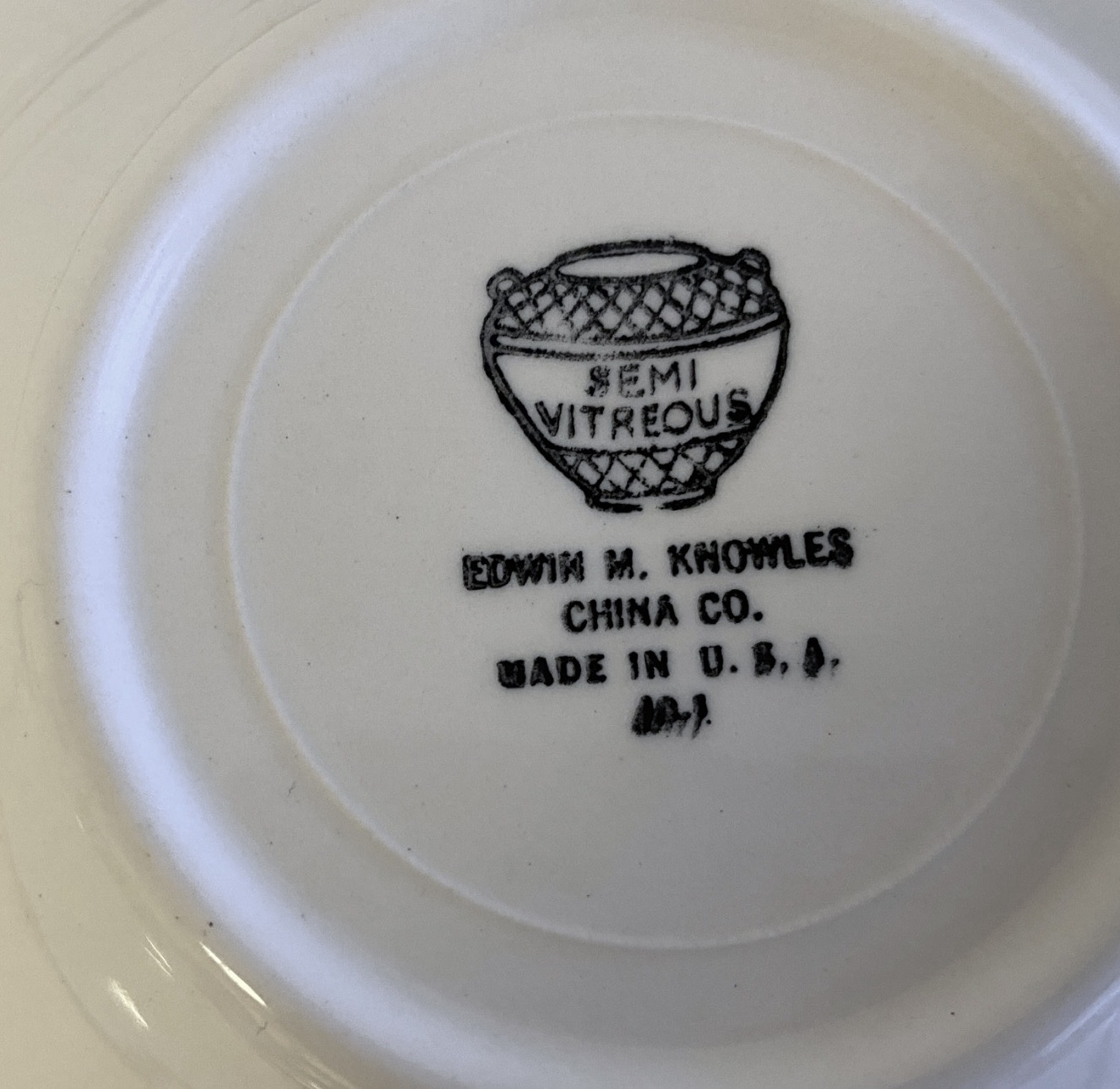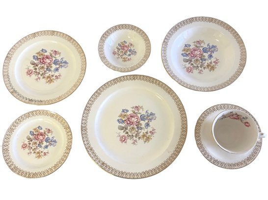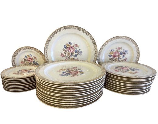 Set includes 92 pieces. Semi vitreous china. Made in USA. Some loss of finish, marks, some crazing and fork marks.