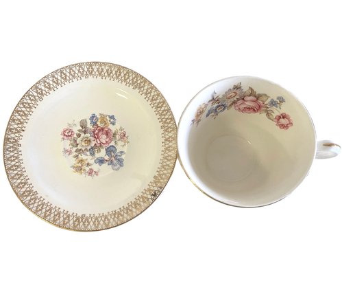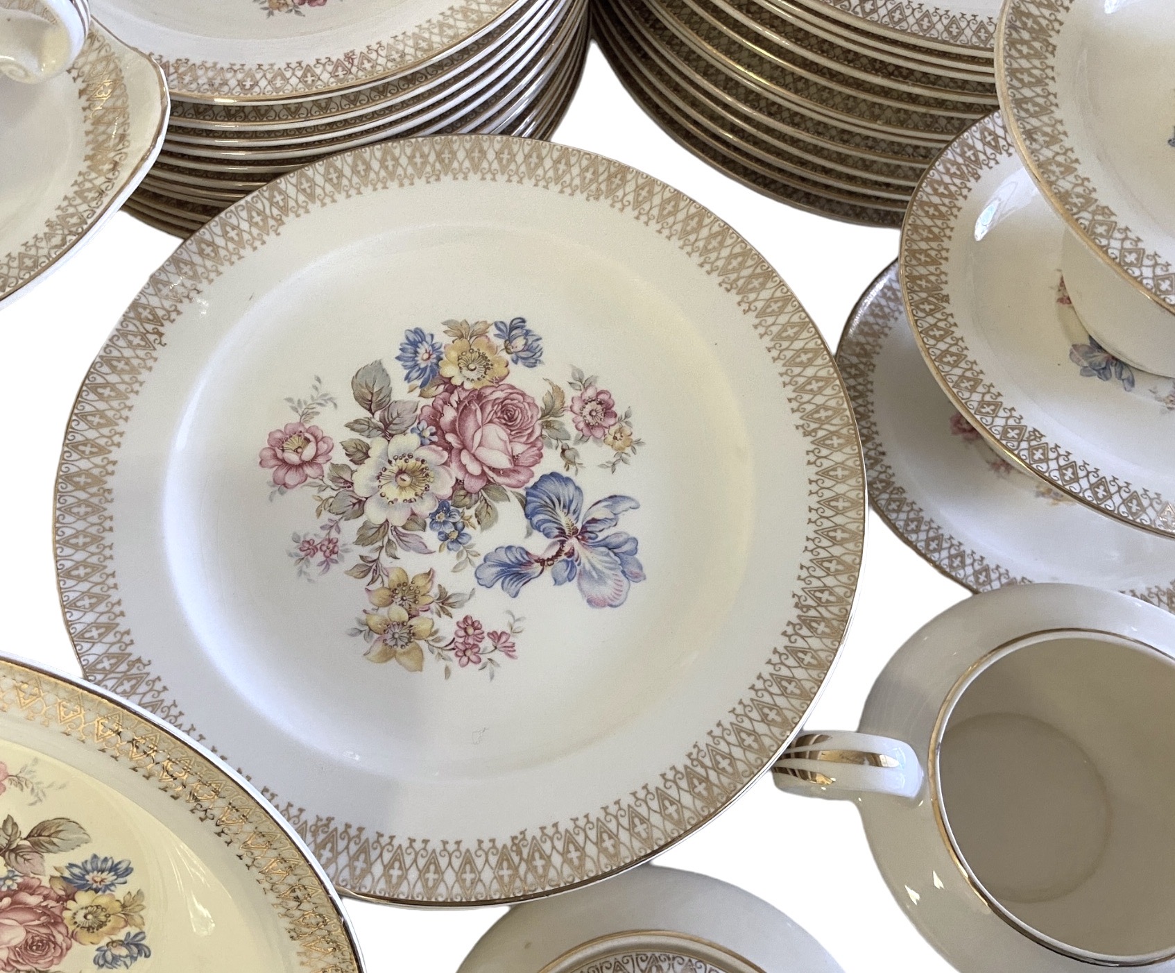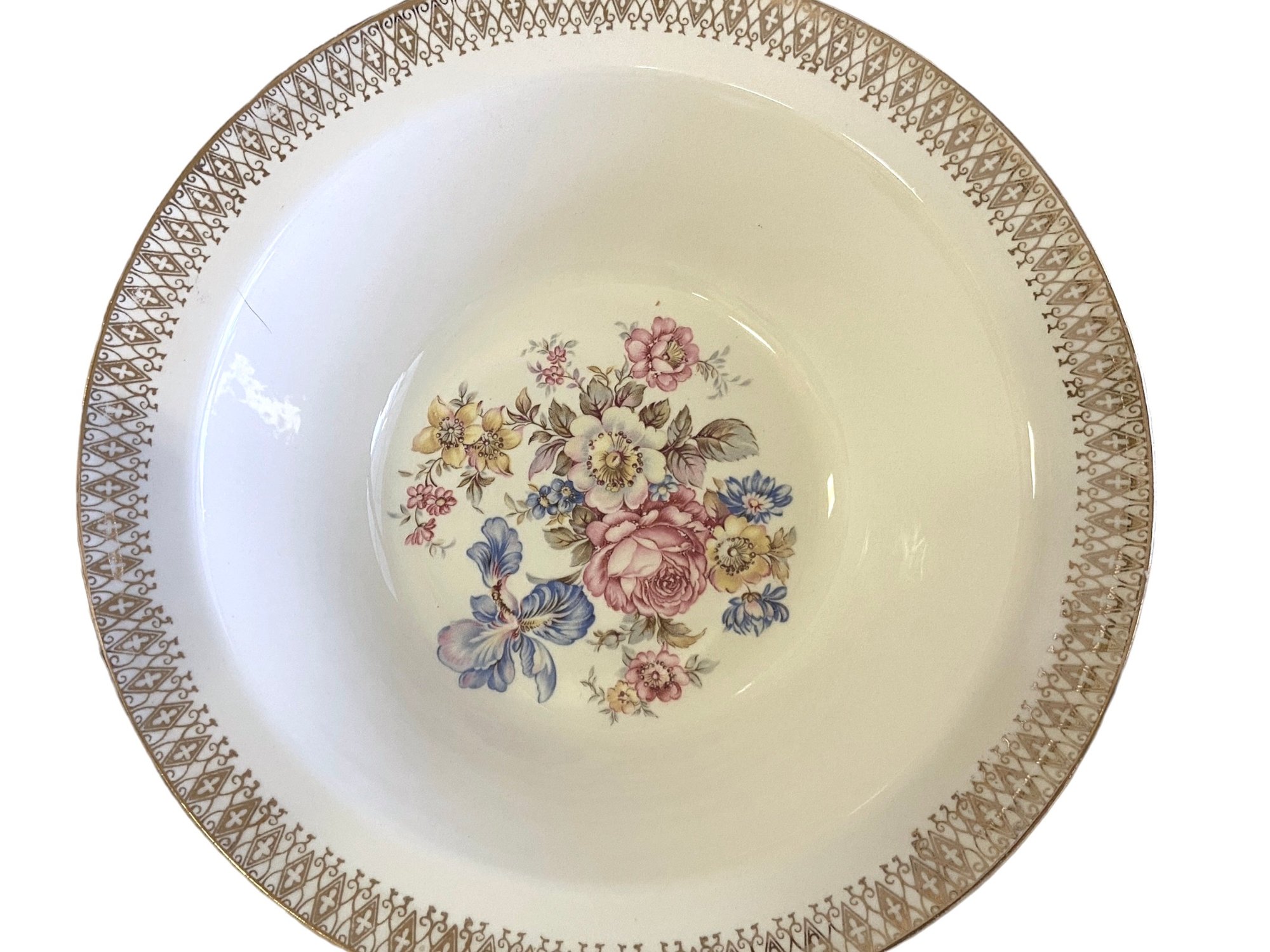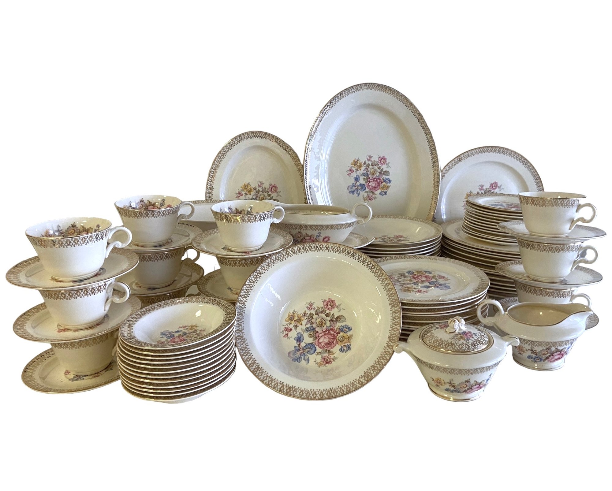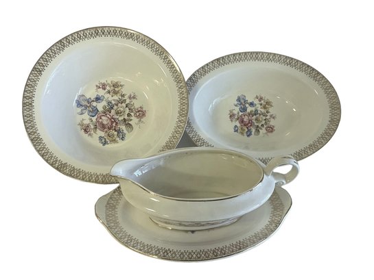 Set includes 92 pieces. Semi vitreous china. Made in USA. Some loss of finish, marks, some crazing and fork marks.