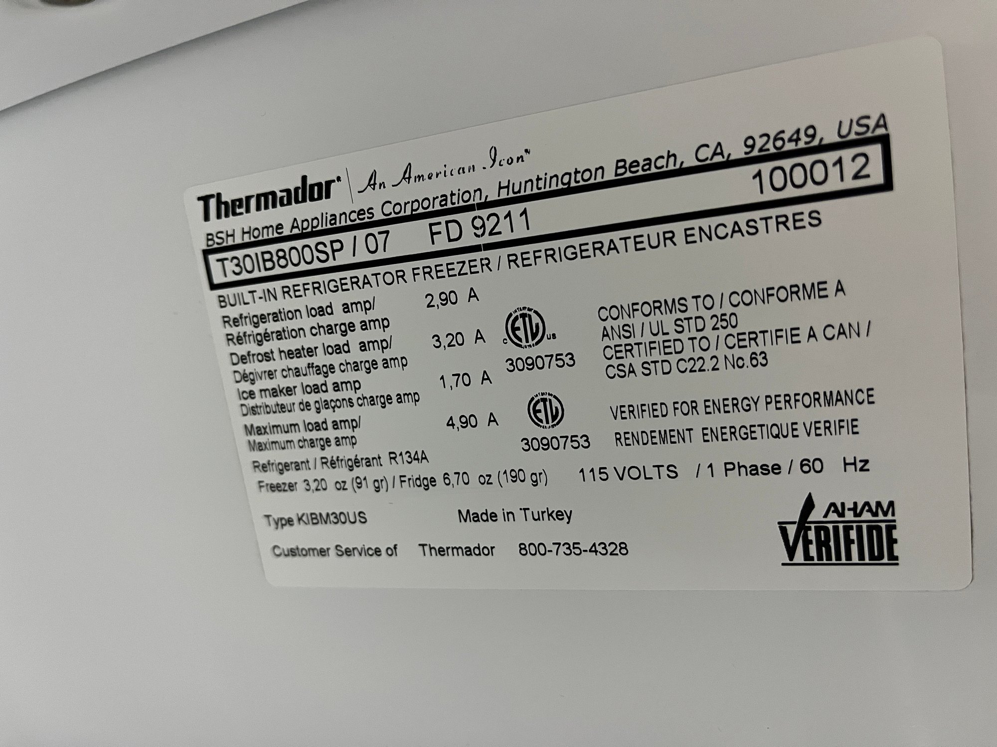 FD 9211: Indicates manufactured in November 2012