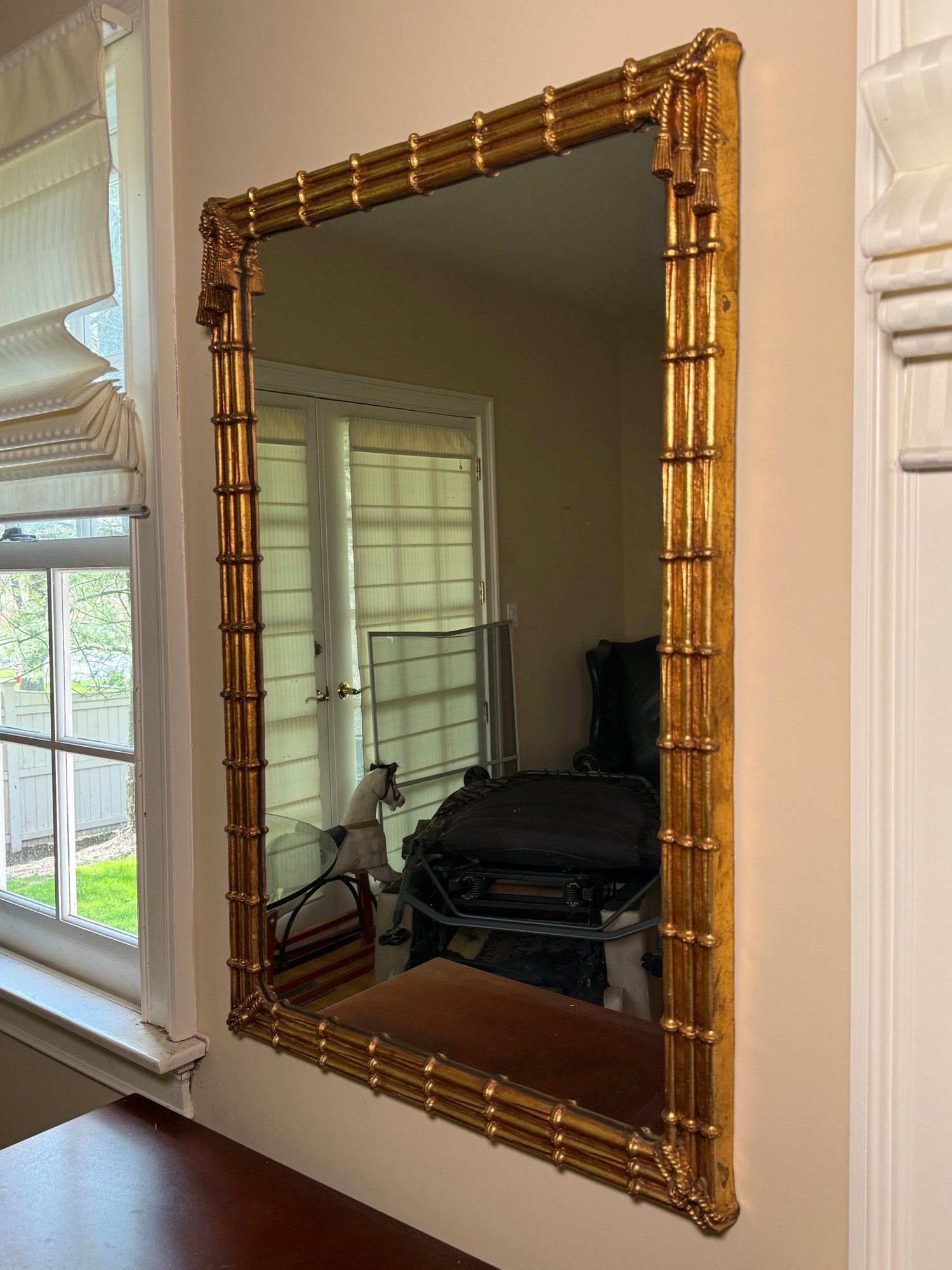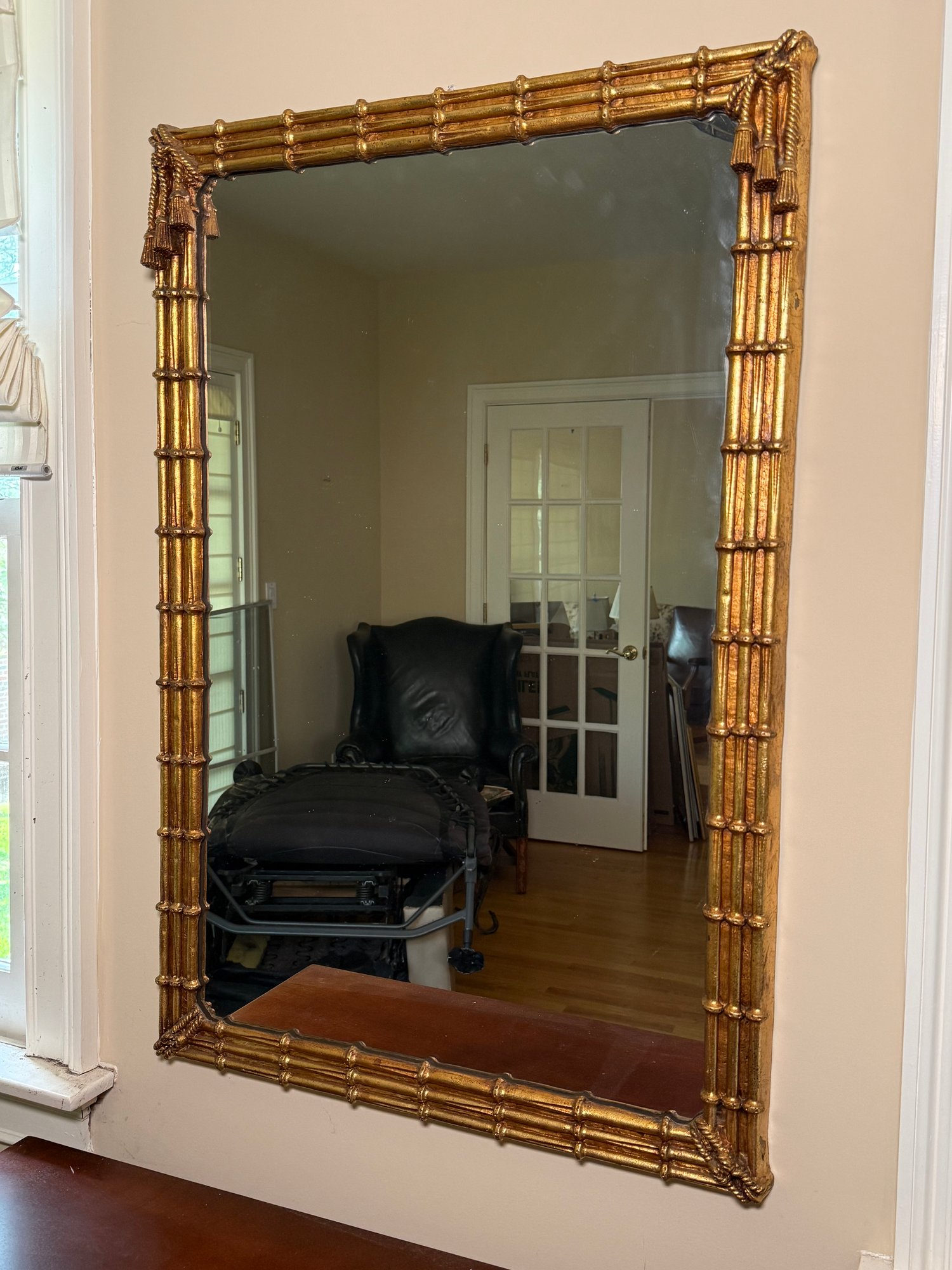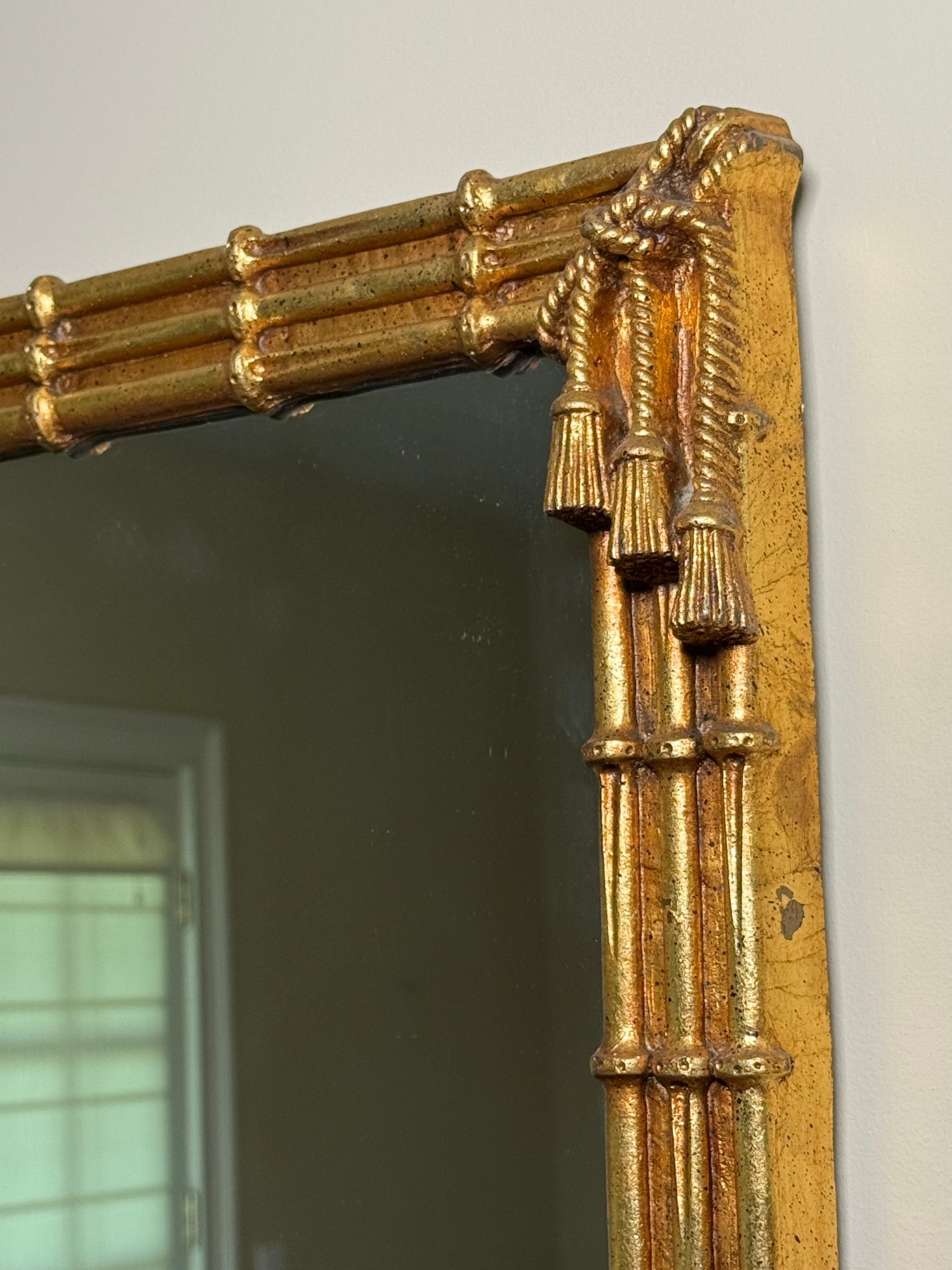 A Beautiful Vintage Hollywood regency Bamboo Style Gilded Mirror with Tassel Detail