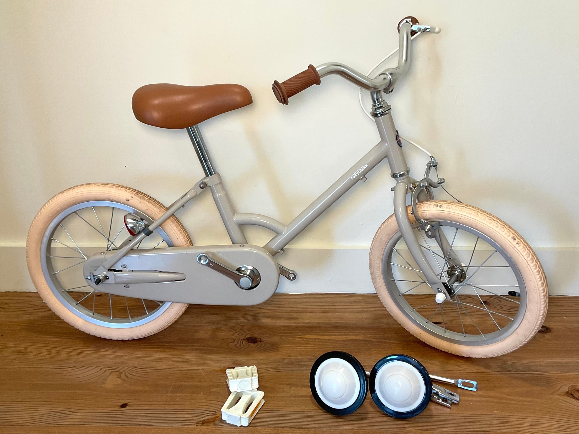 Practice as a push bike, add training wheels and pedals to this Tokyo Bikes youth bicycle, with hand break and chain guard. 15” tires