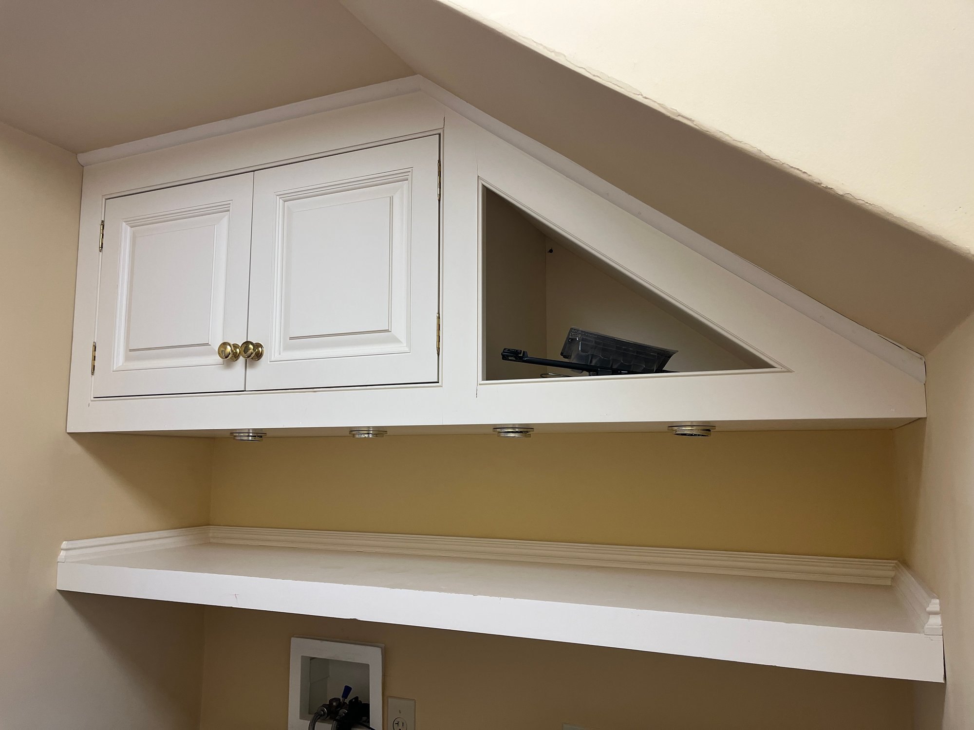 triangular section, right, attached - 26(bottom) x 16.75d x 22H(left), 31 angled right side