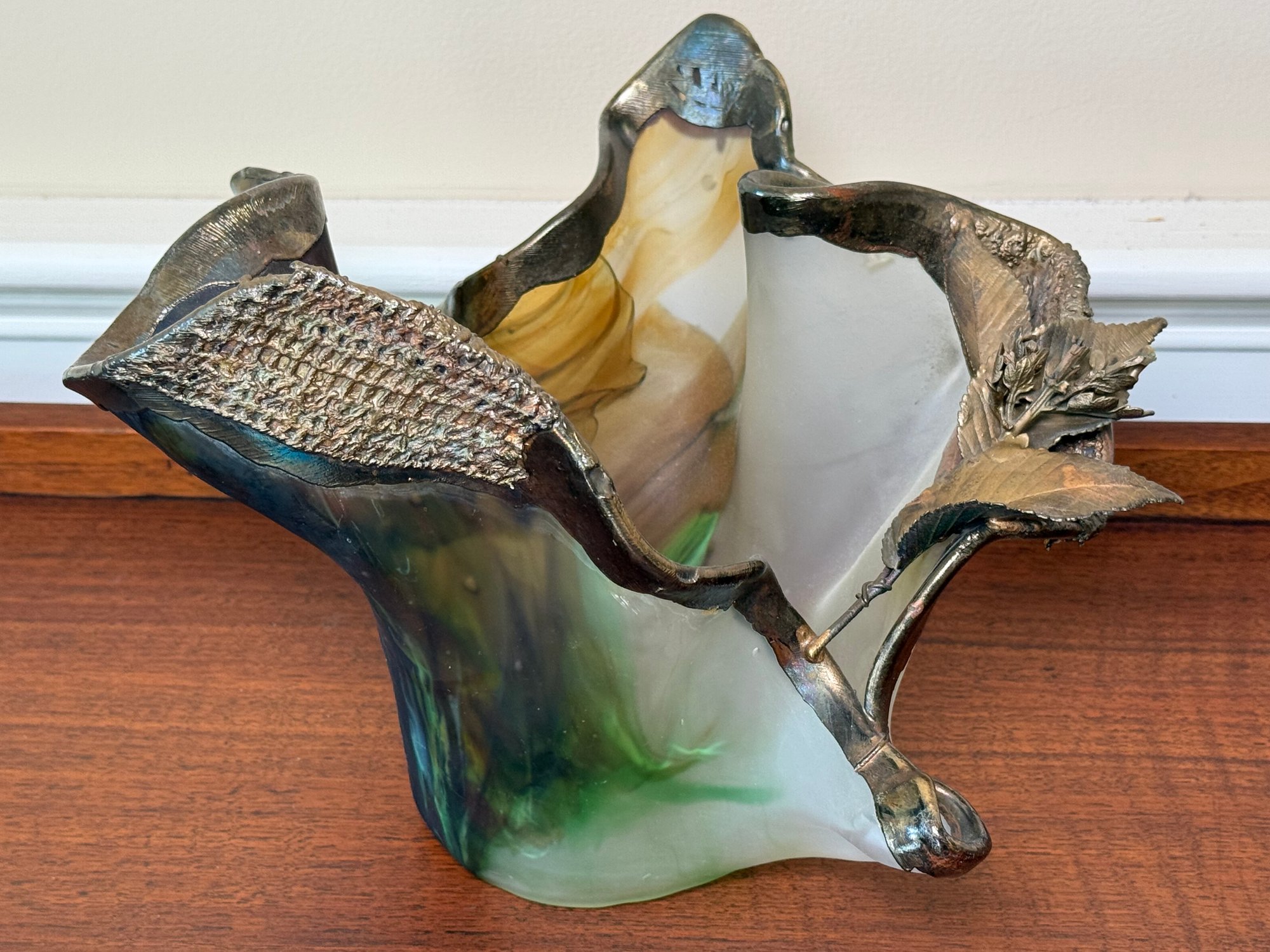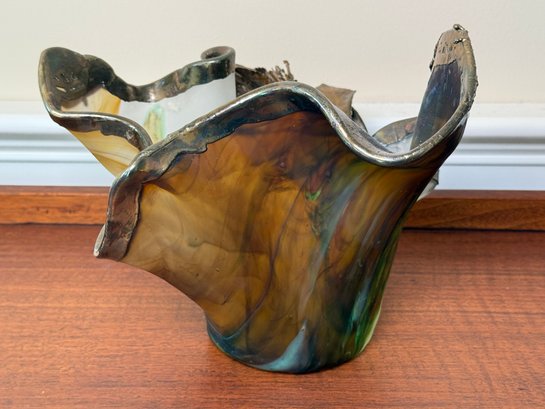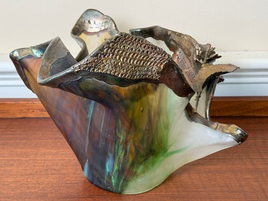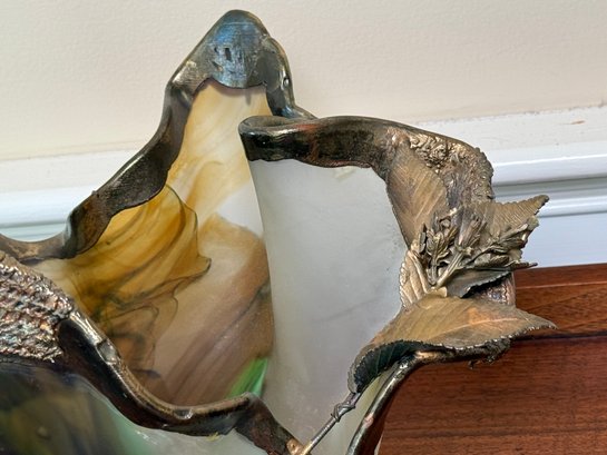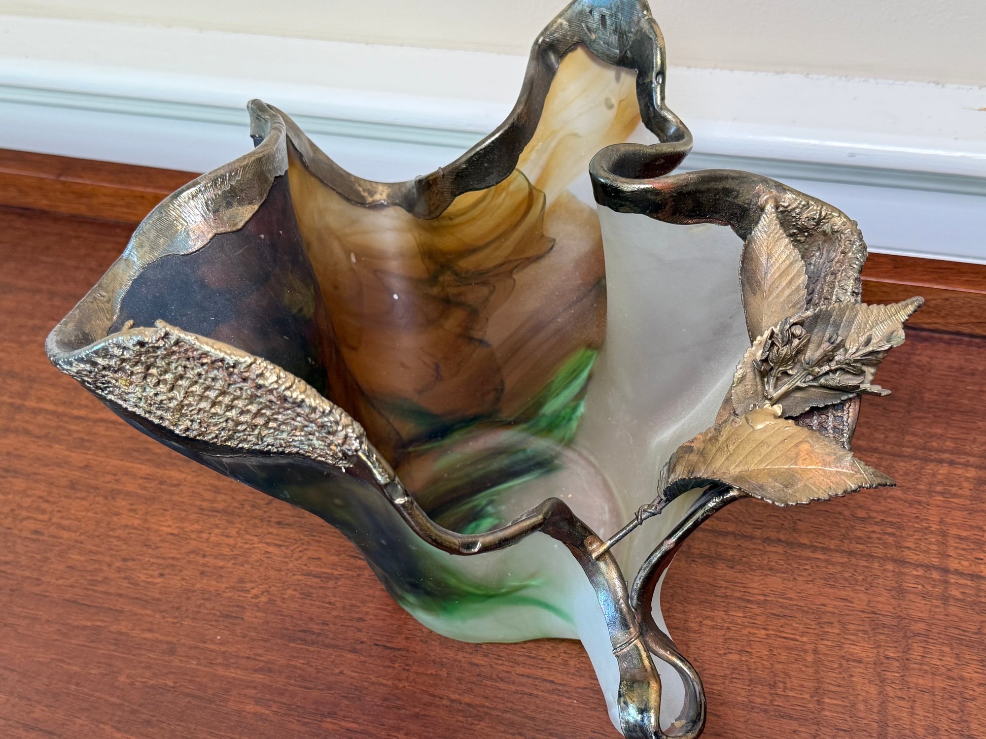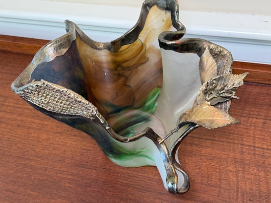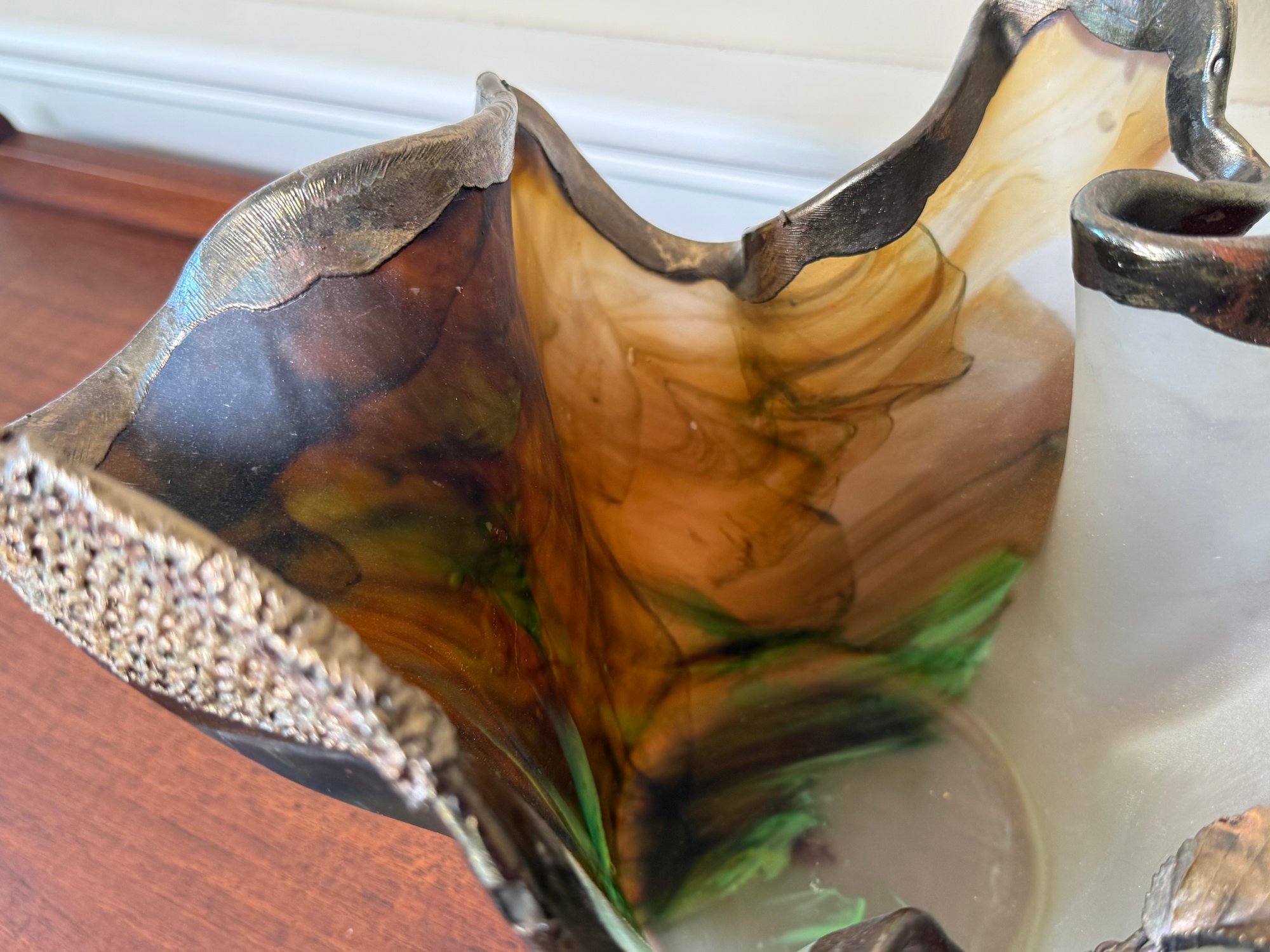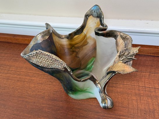 A gorgeous slag glass & metal Unique Handkerchief Design Bowl