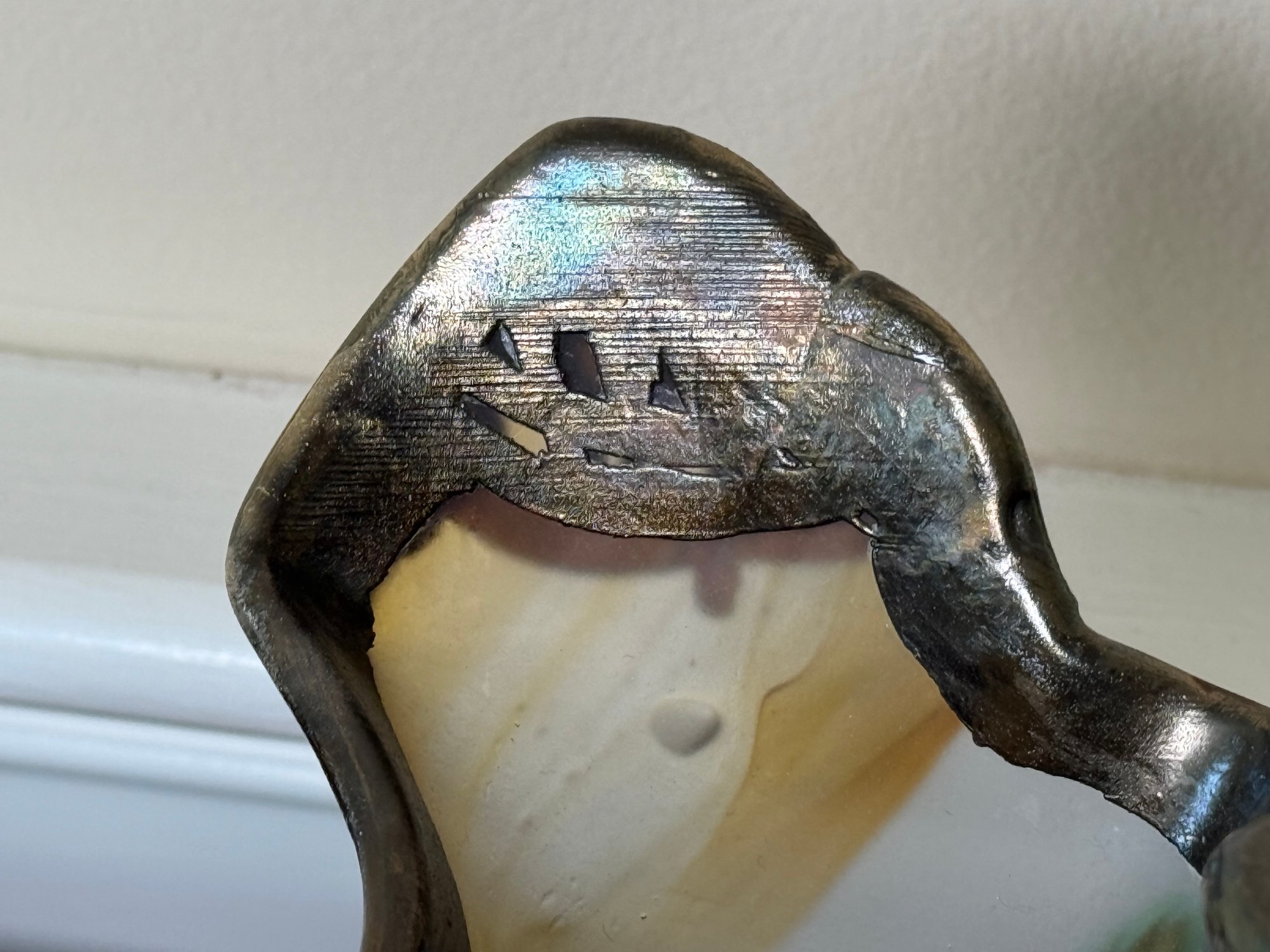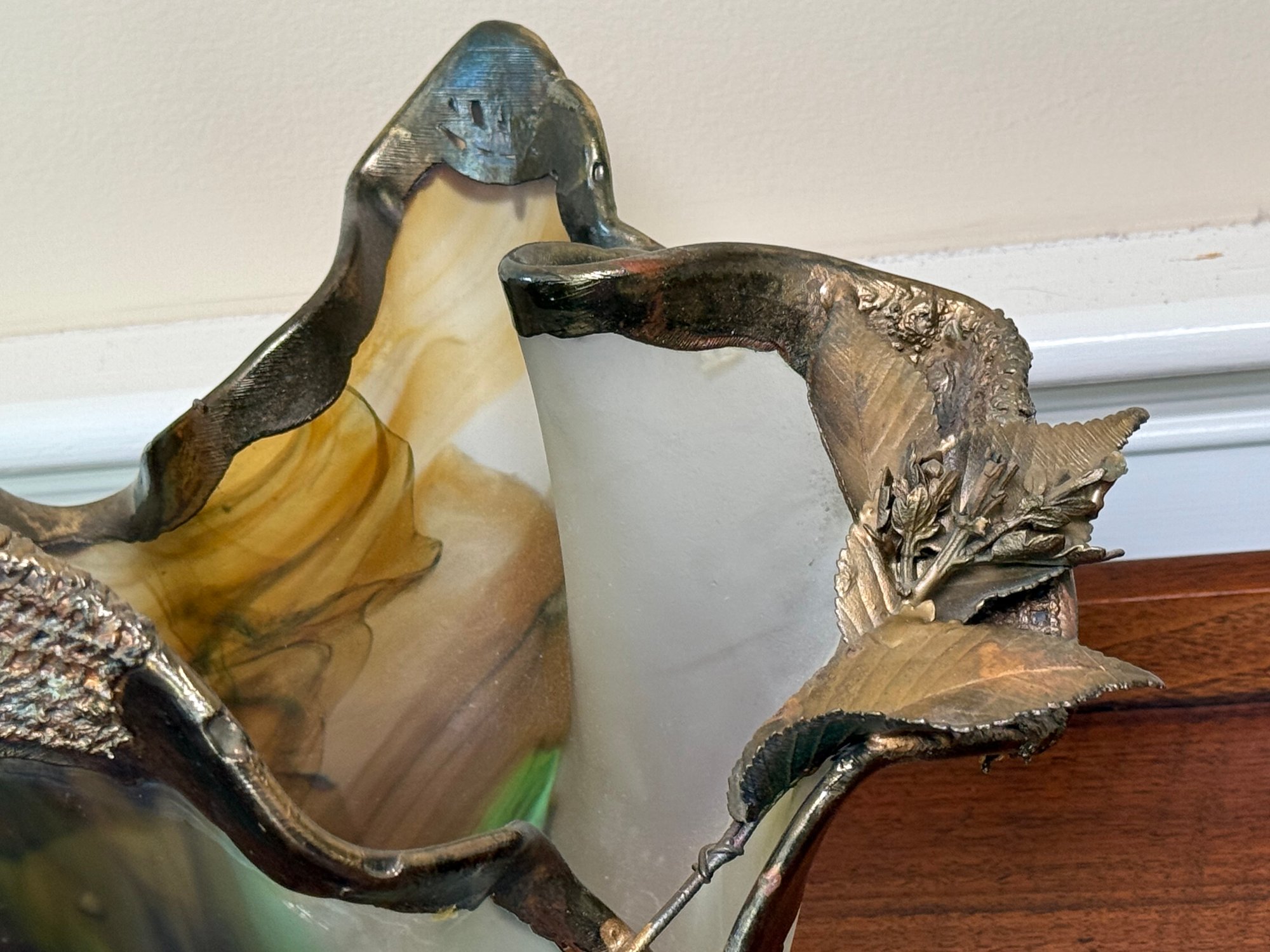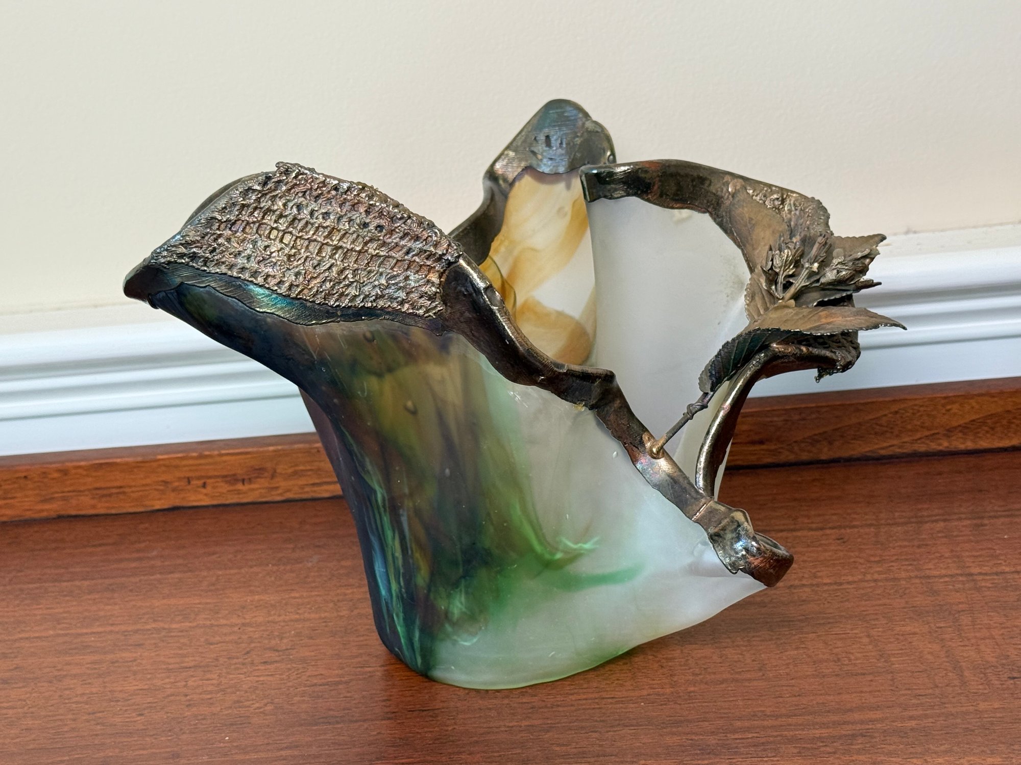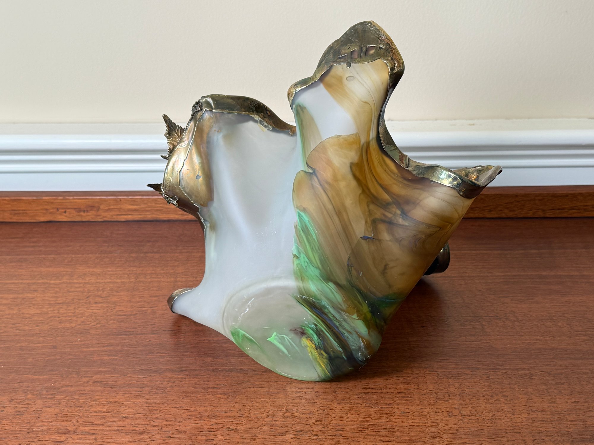 A gorgeous slag glass & metal Unique Handkerchief Design Bowl