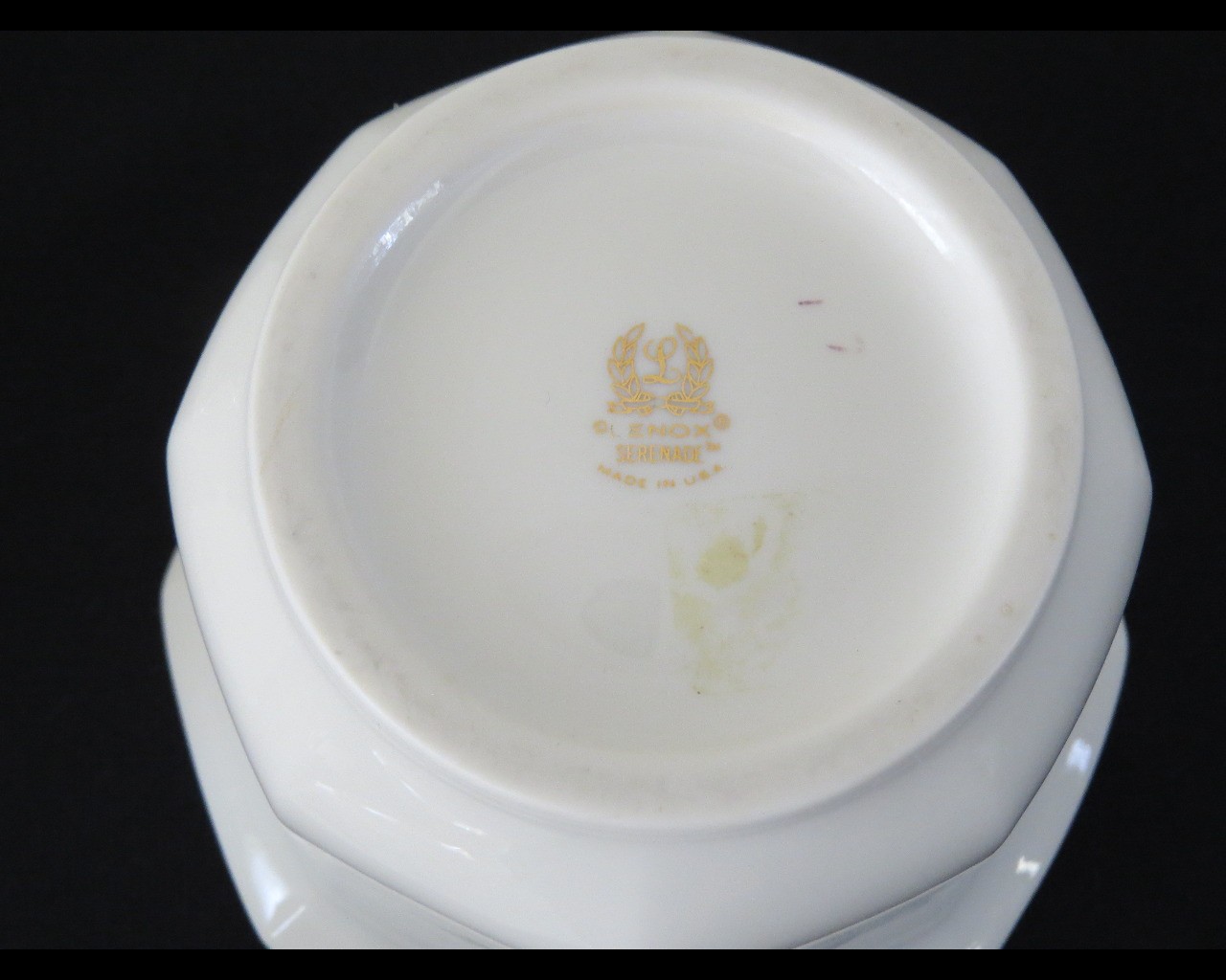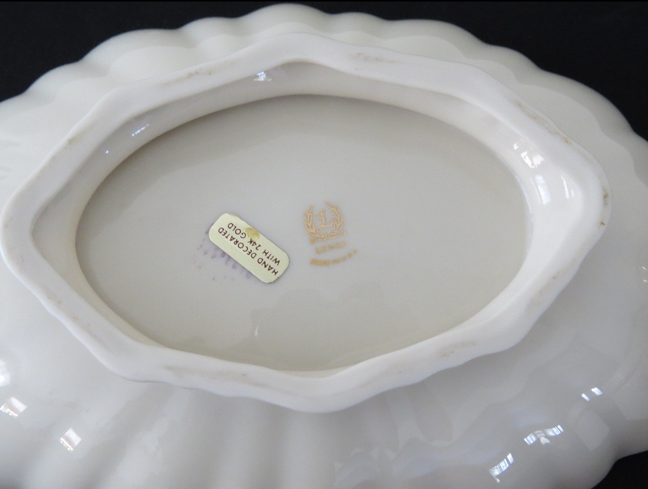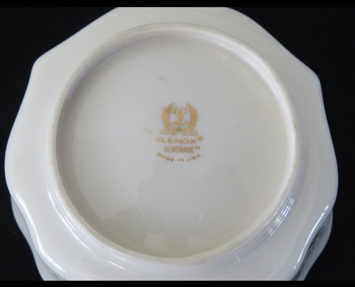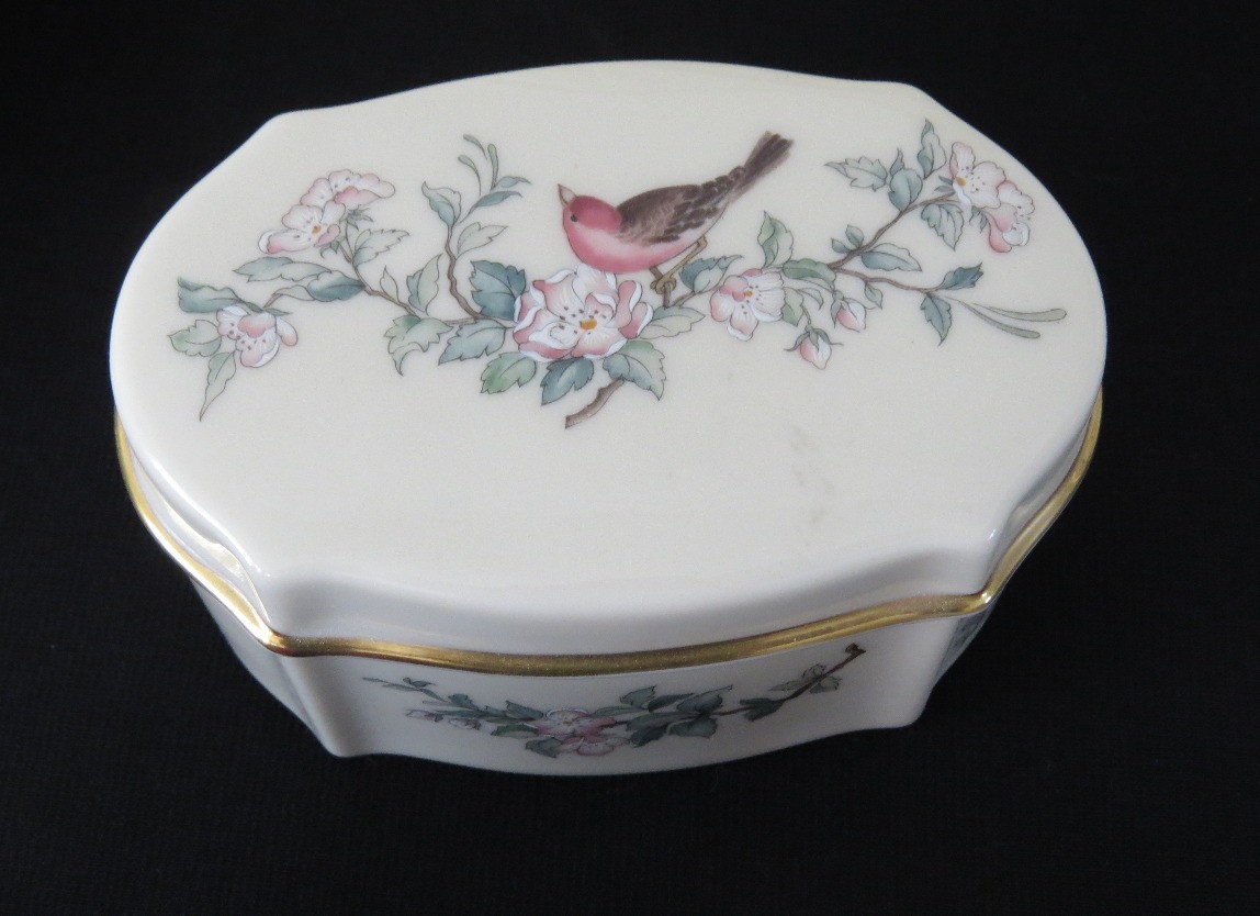 Five piece lot of Lenox china including clock (needs a battery), covered keepsake/trinket box, various bowls all in good shape.