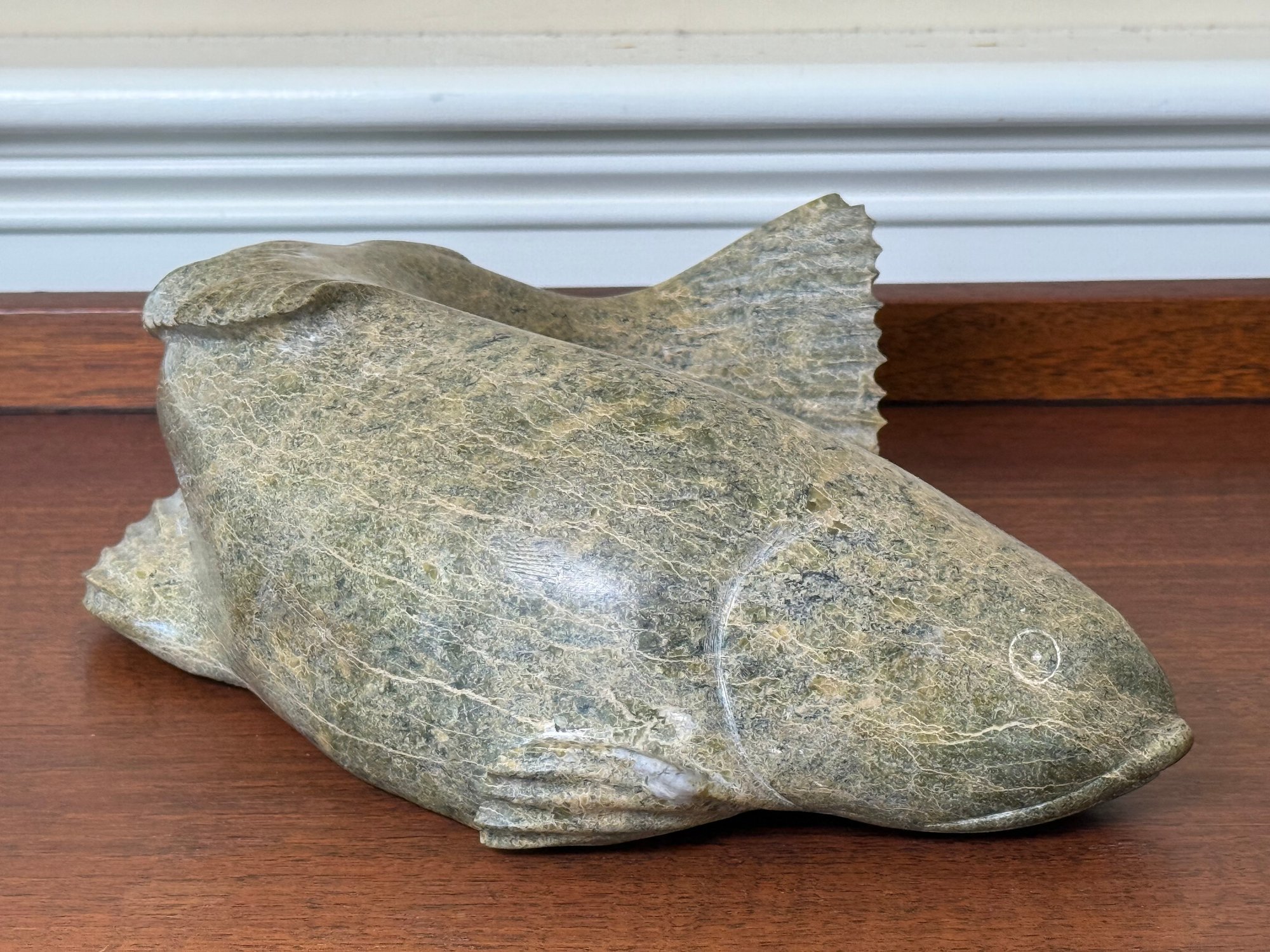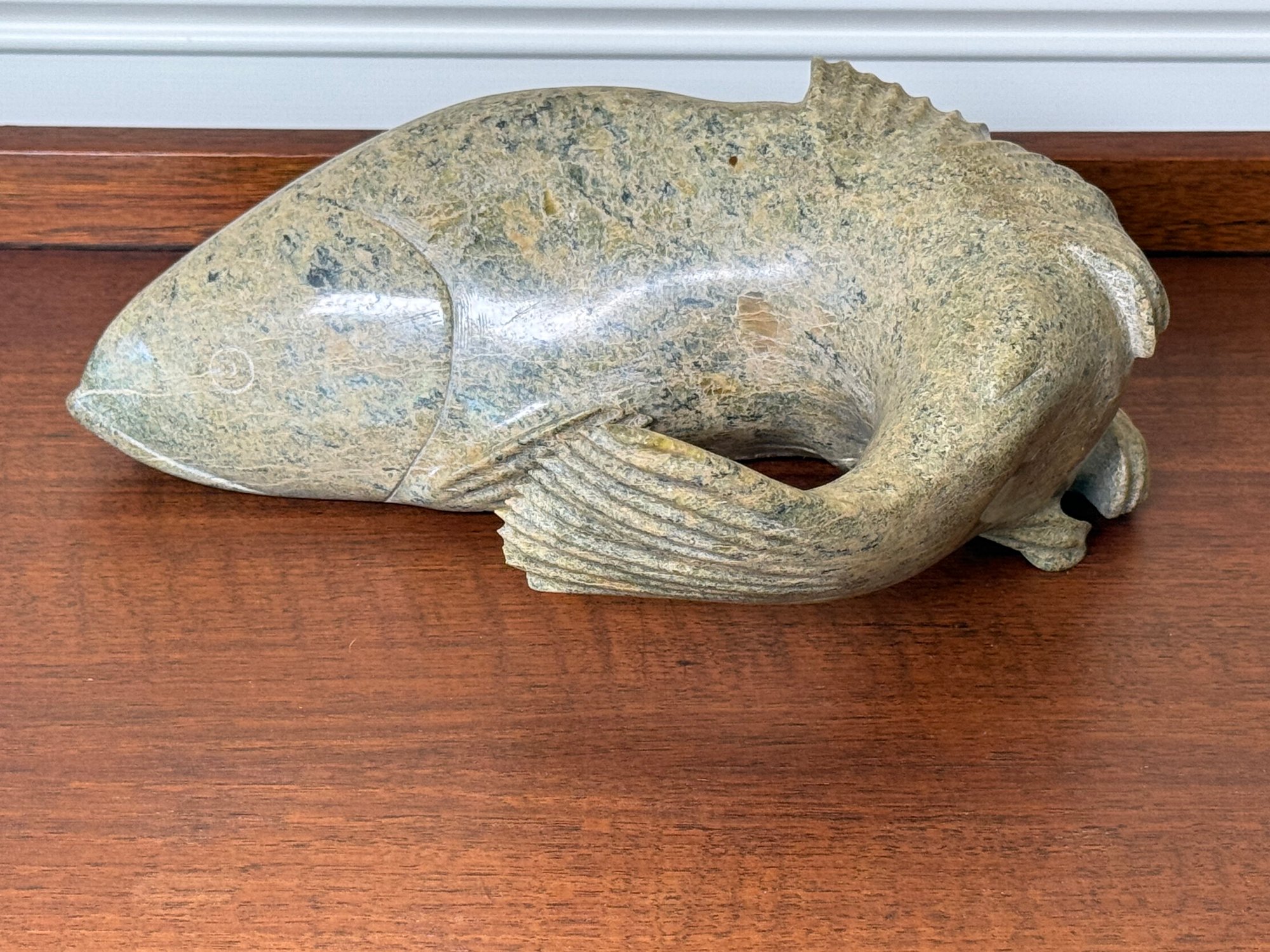 A Large Signed Hand Carved Soapstone Fish Sculpture