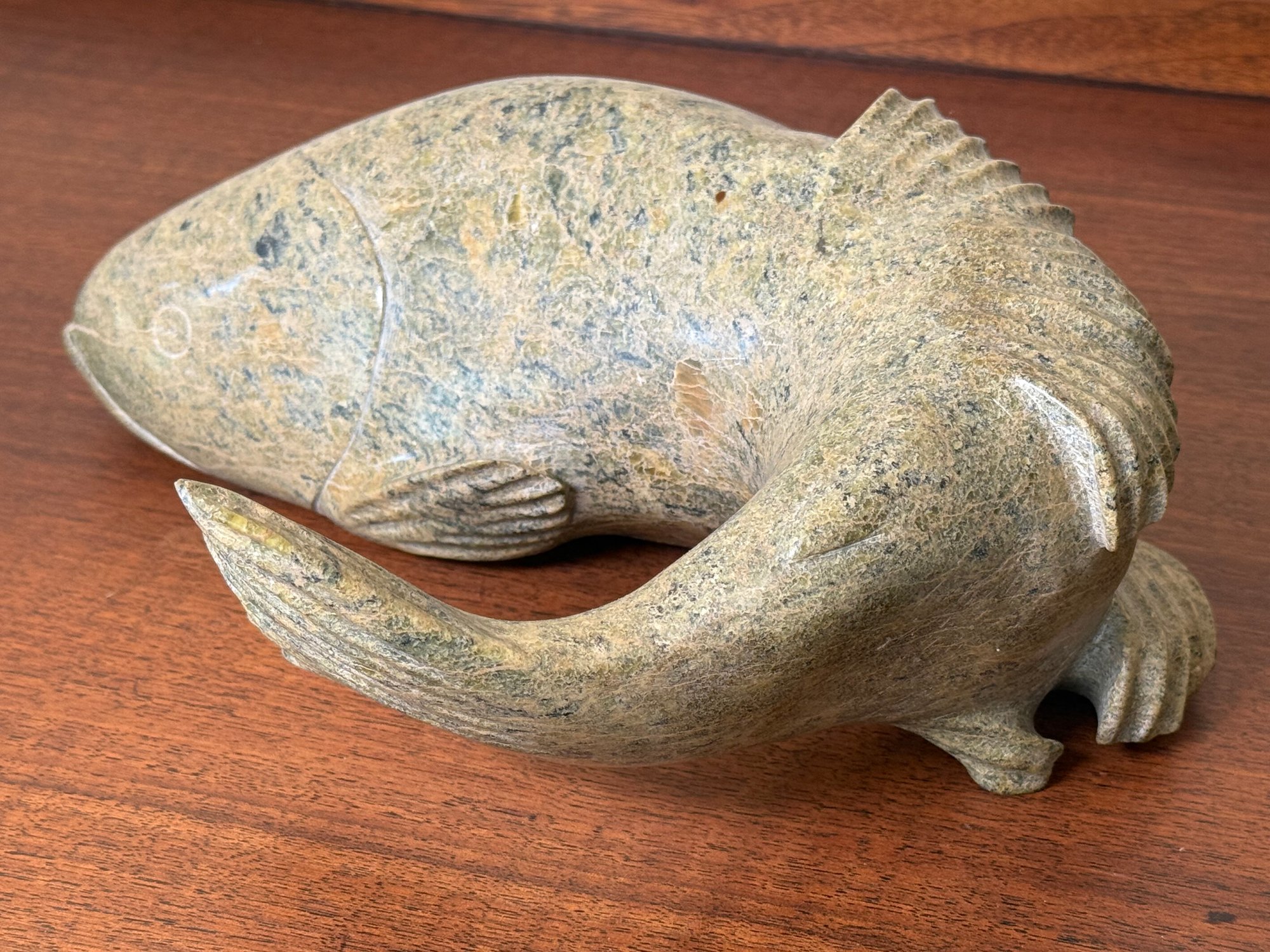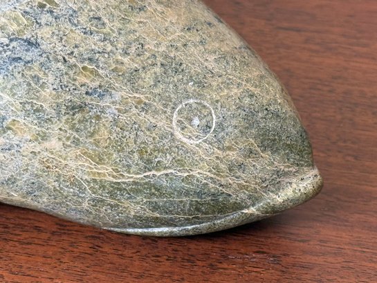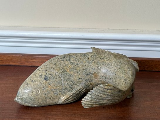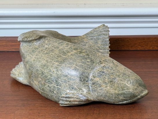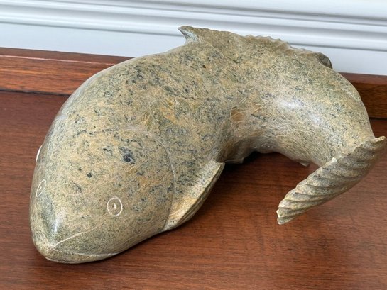 This beautiful hand carved soapstone fish is signed on the underside. This is a very heavy weighted and quality made fish figure.