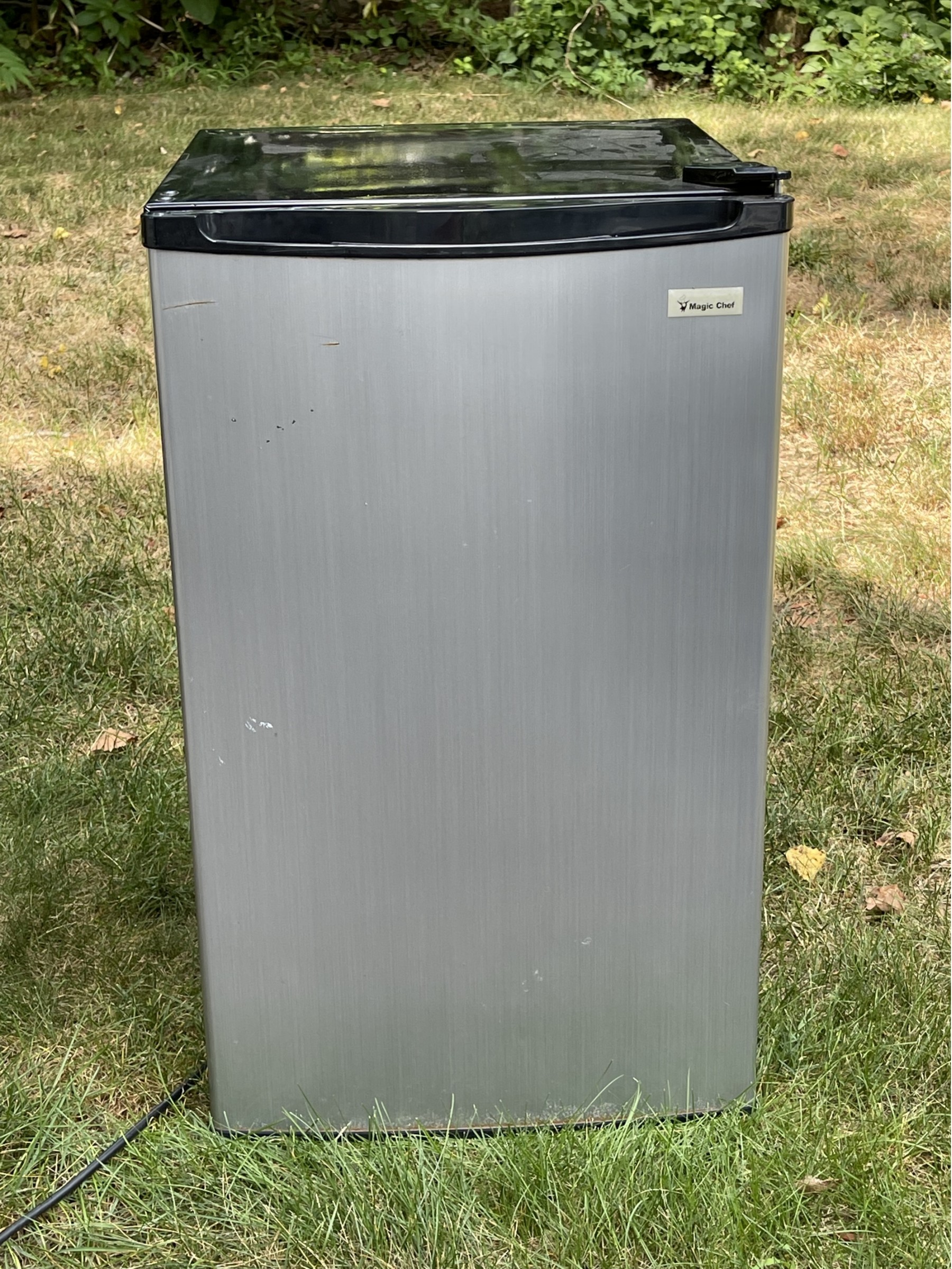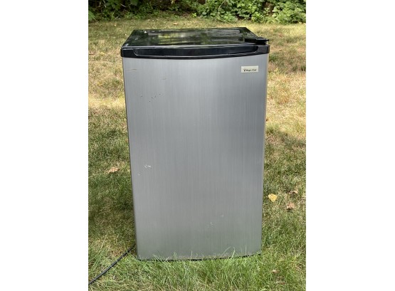 A magic chef small refrigerator, just needs a little cleaning. It measures 21 inches deep, 19 inches wide and 32 inches tall.
