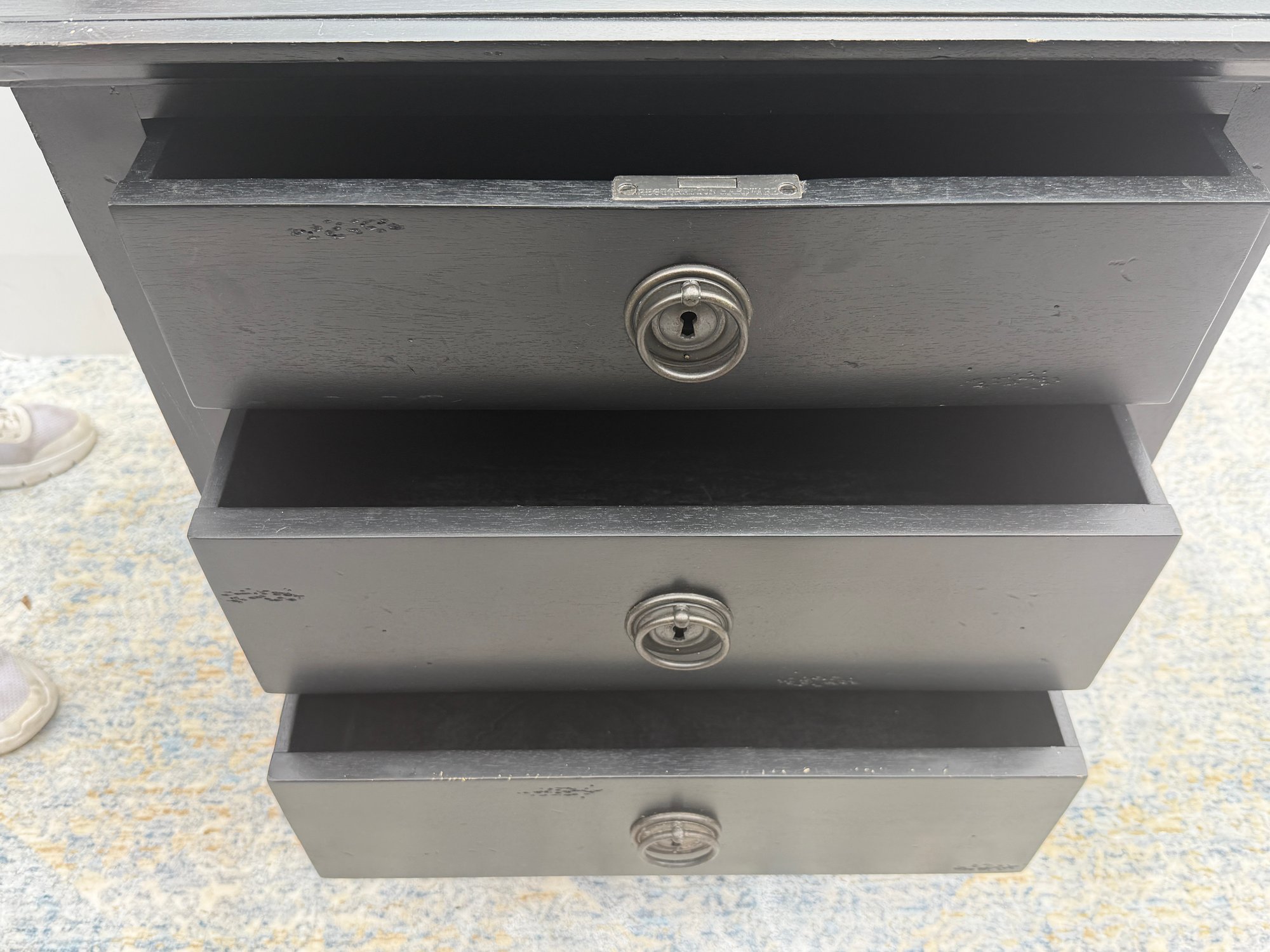 Good condition consistent with age and use. Drawers. open well. We do not have the keys.
