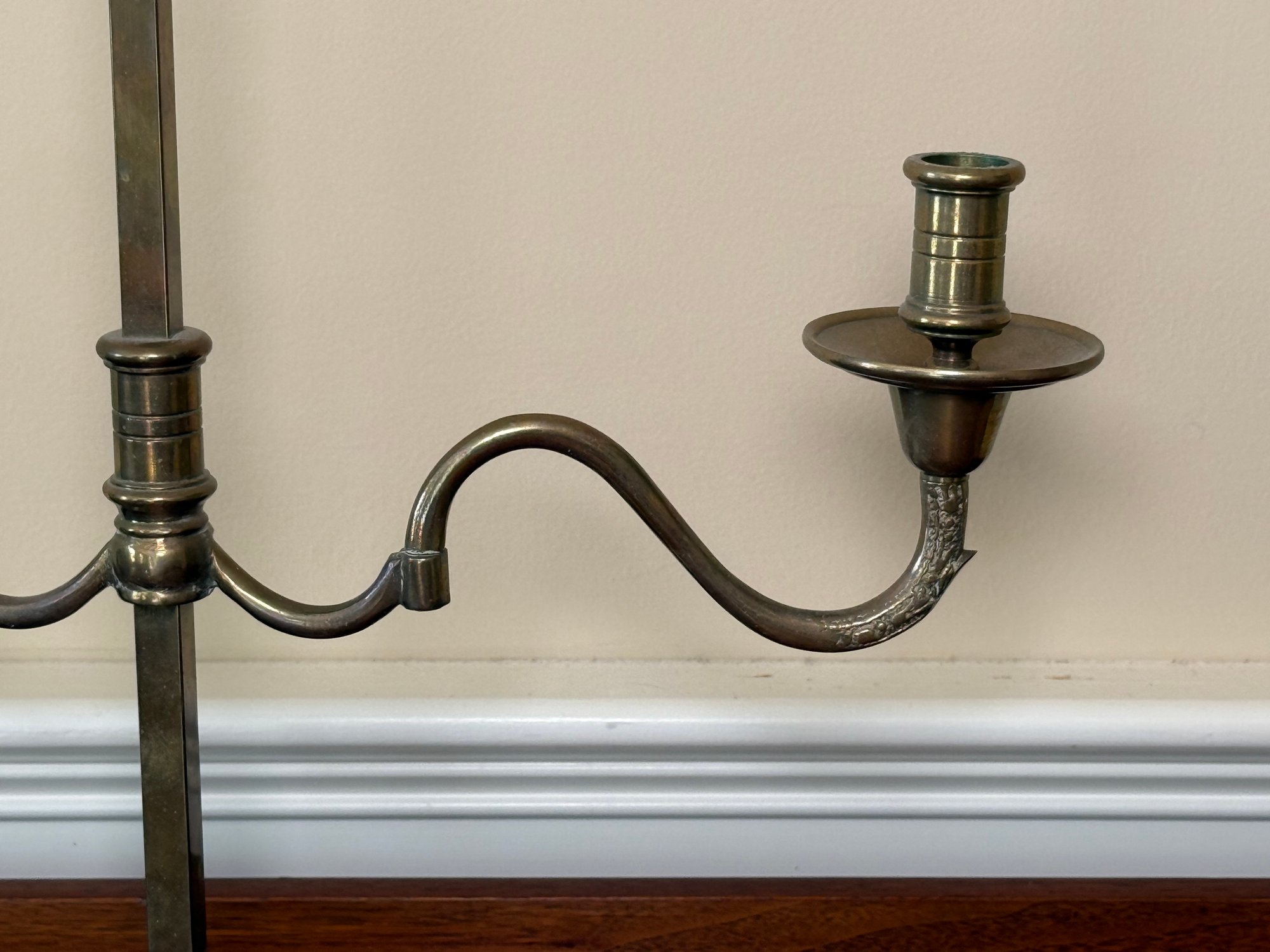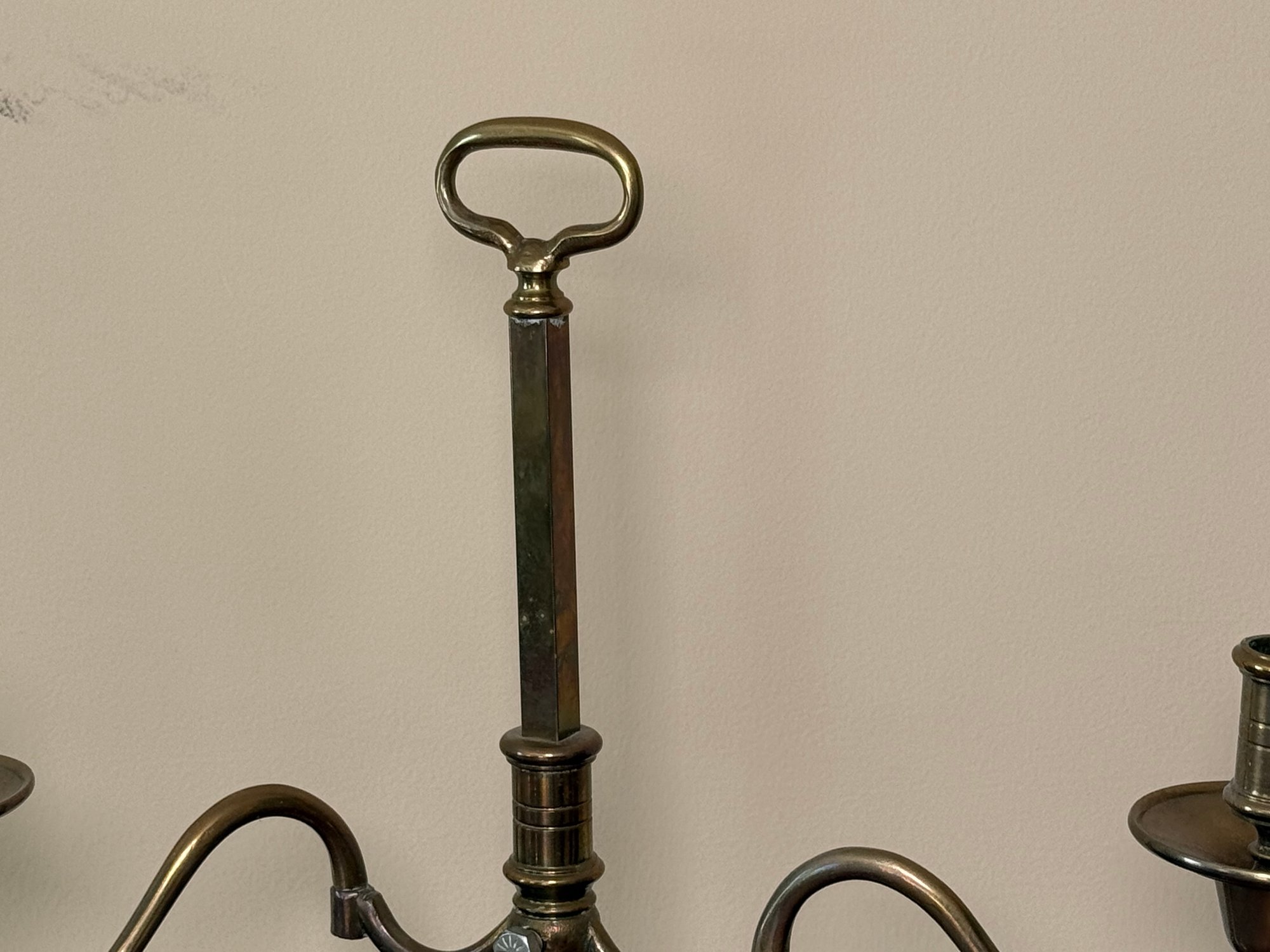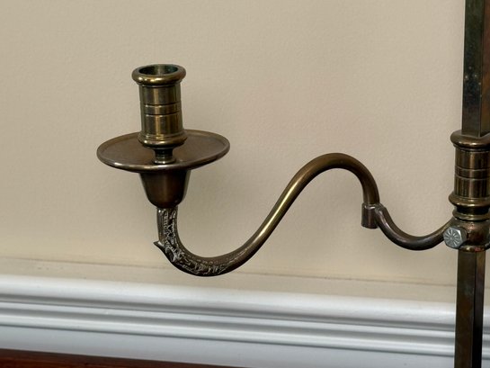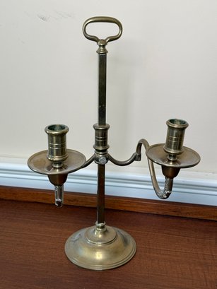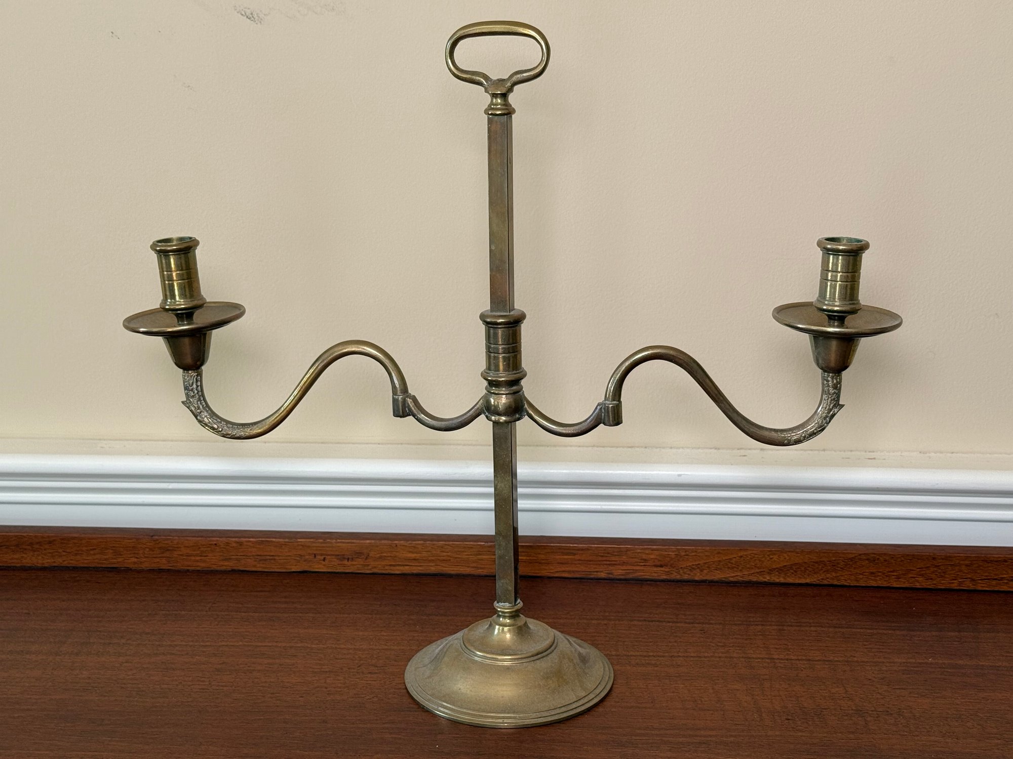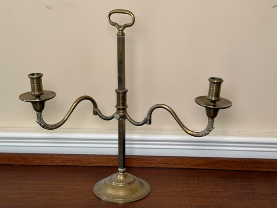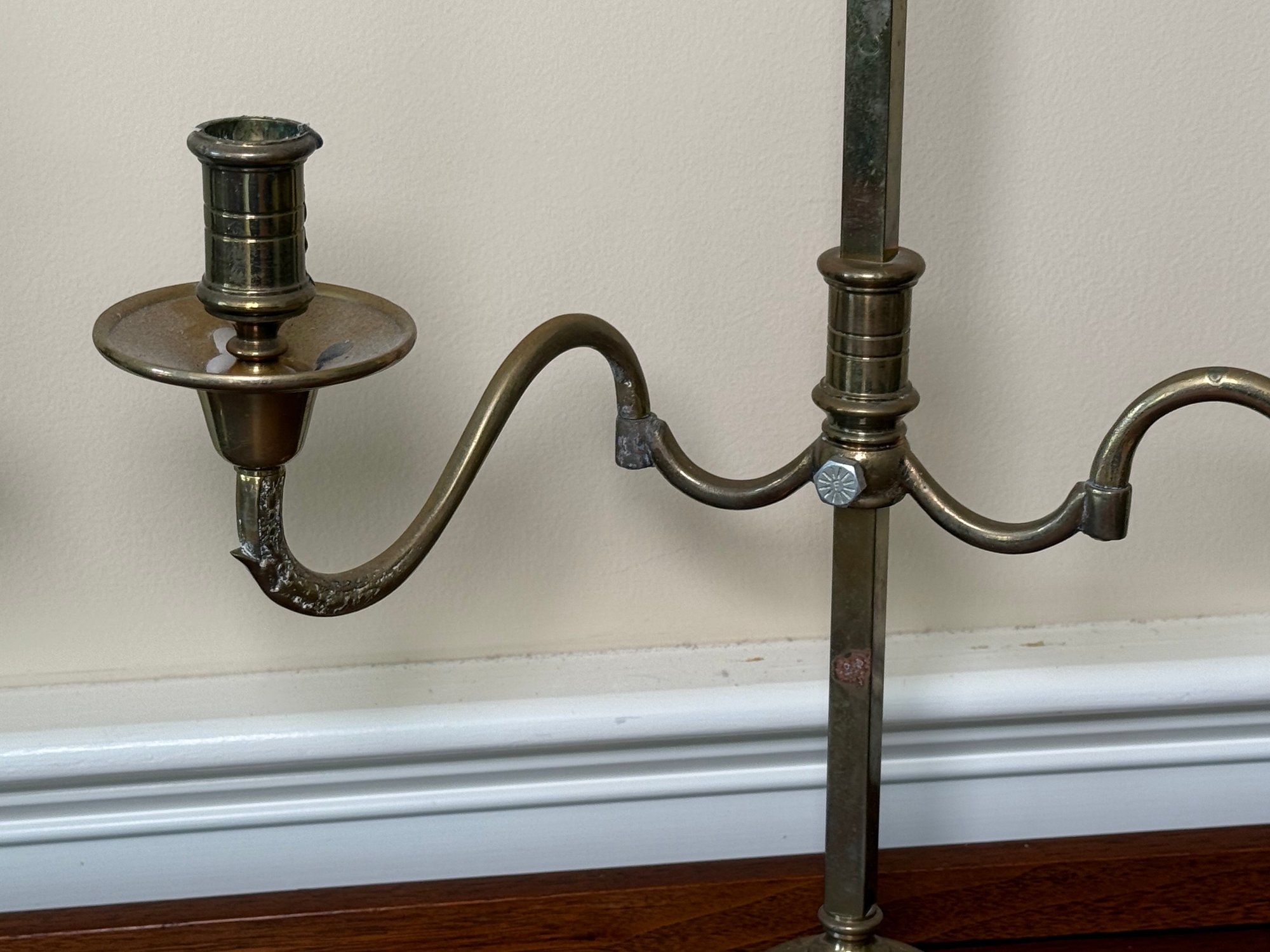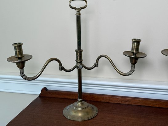 Solid brass two slot candelabras. You can adjust the width of each candle holder.