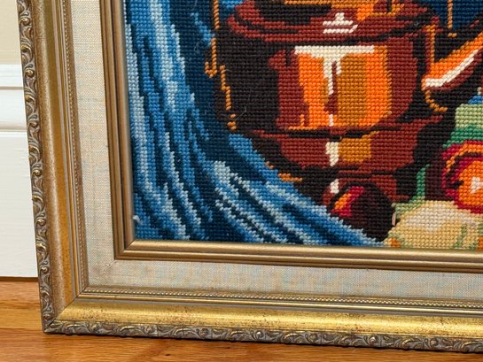A Pretty Needlepoint Copper Kettle Framed Art Piece
