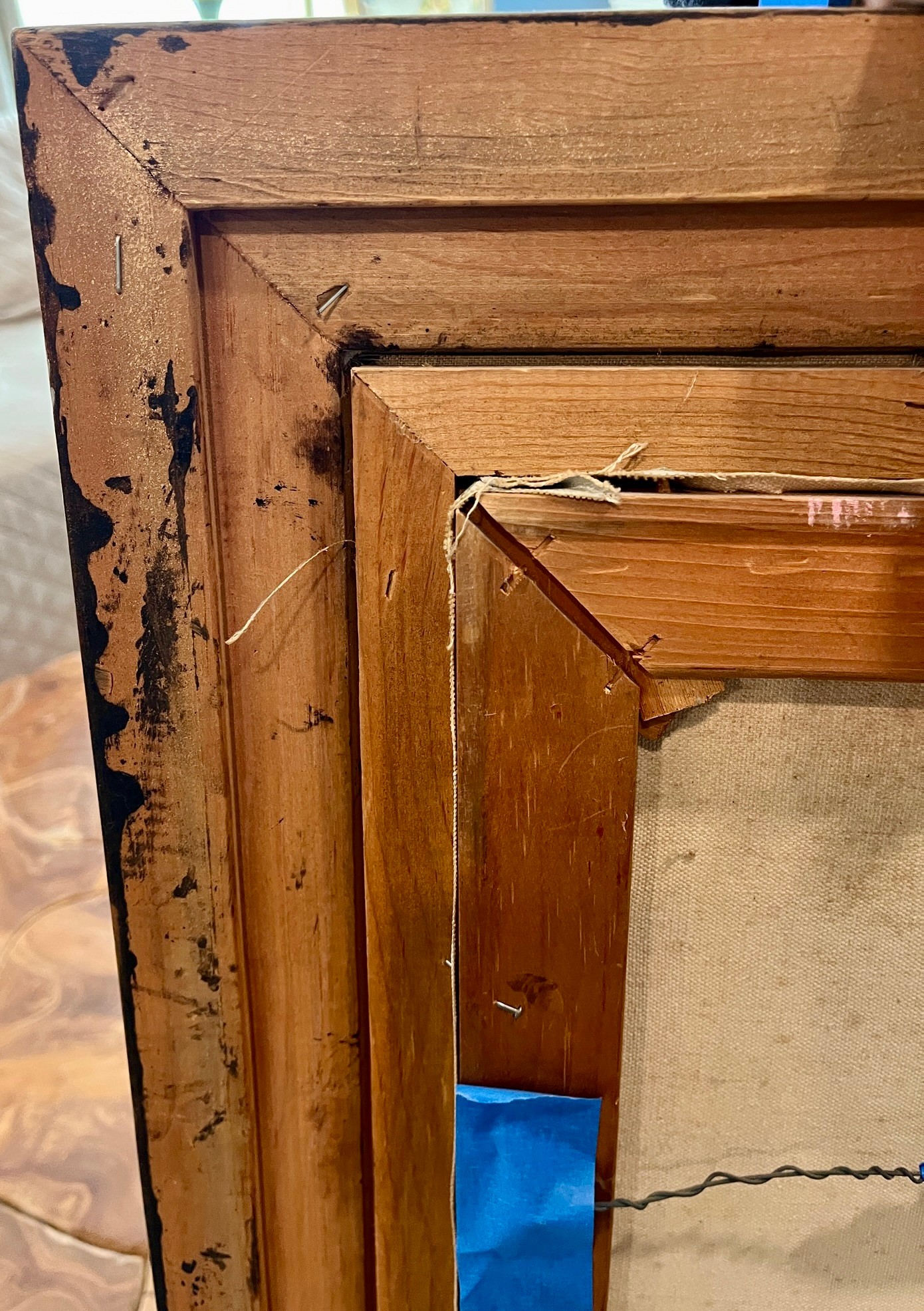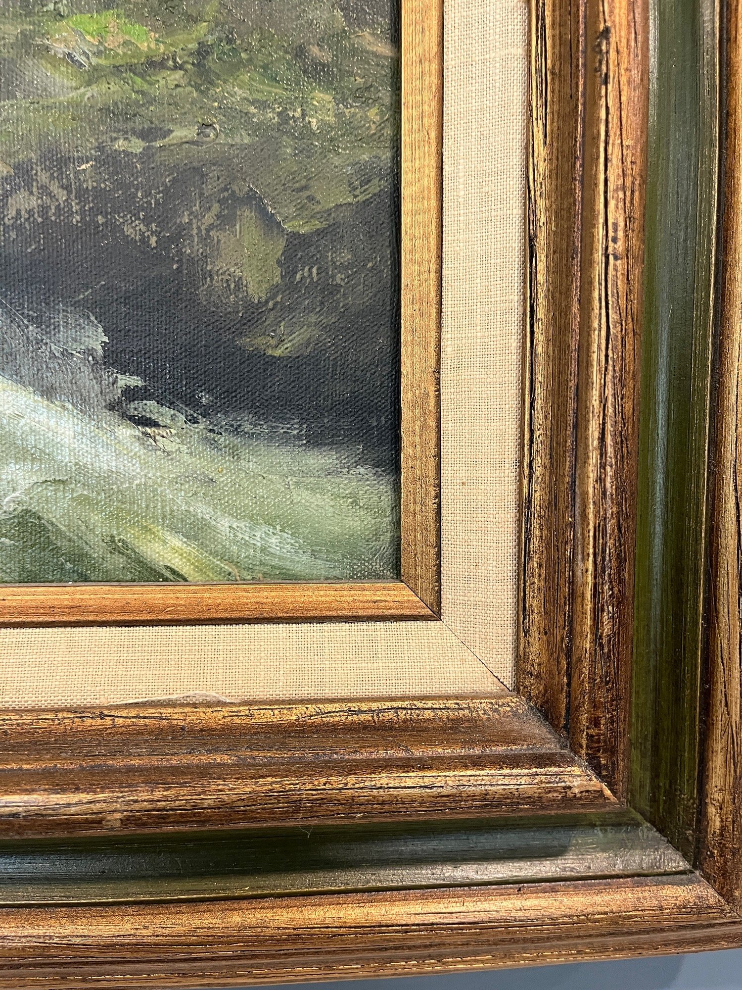 Nicely framed, wood with linen