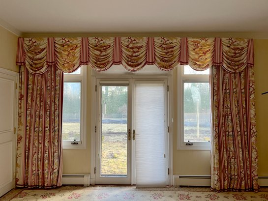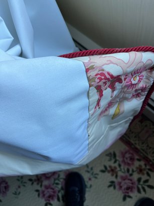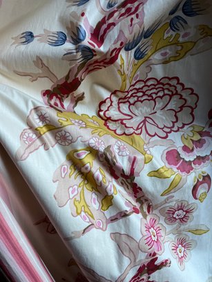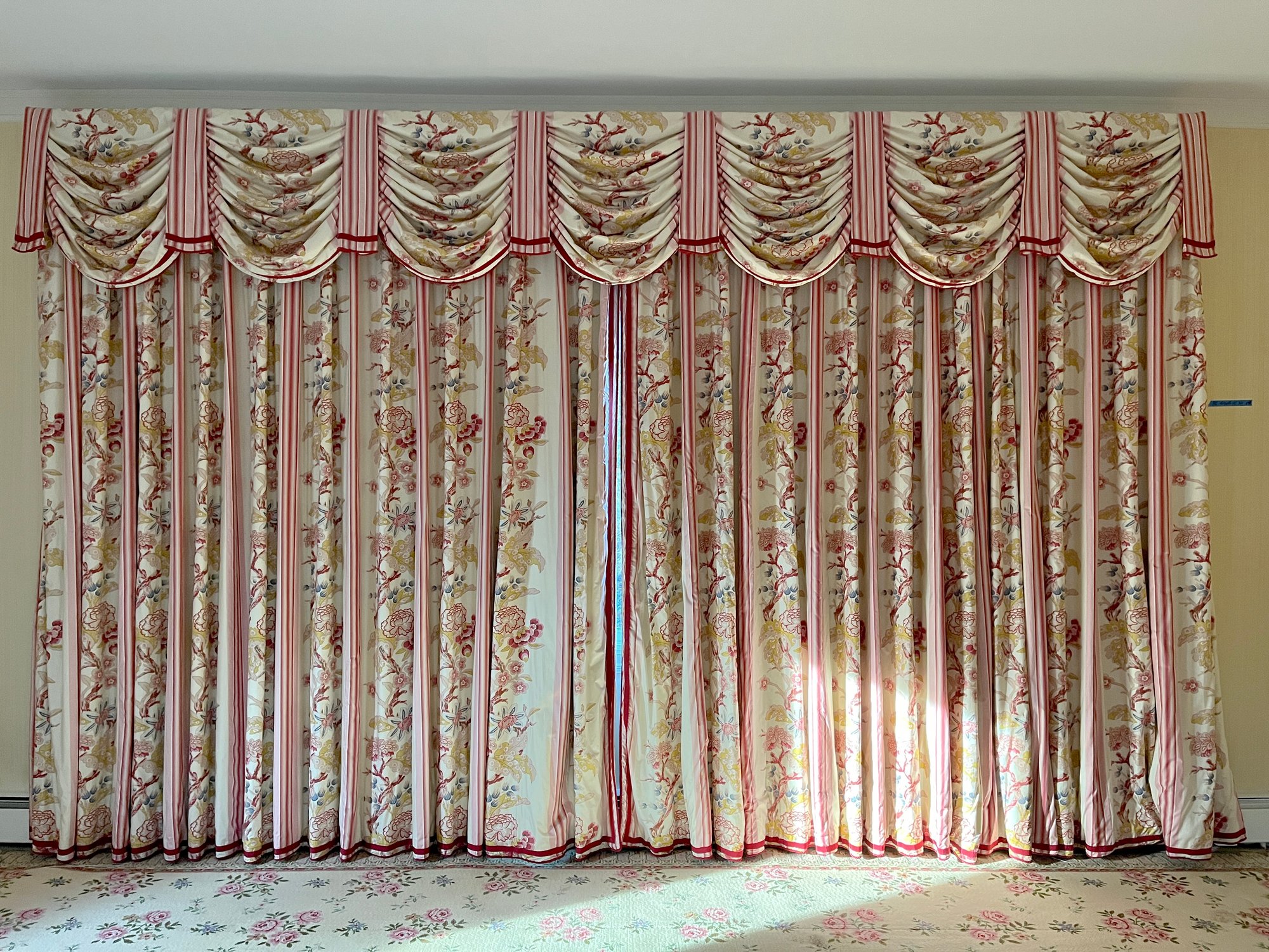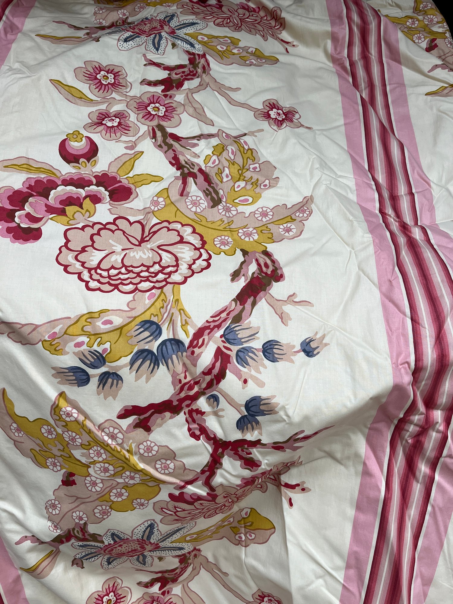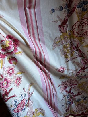 No expense spared- highest quality cotton blend fabric, wool liner, heavy cotton liner, beautiful hand, impeccable trim. Yards and yards of fabric to use as is or repurposed.