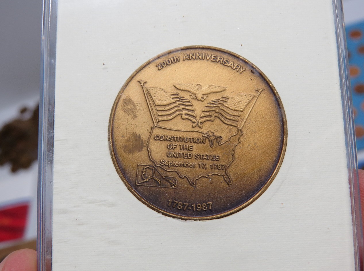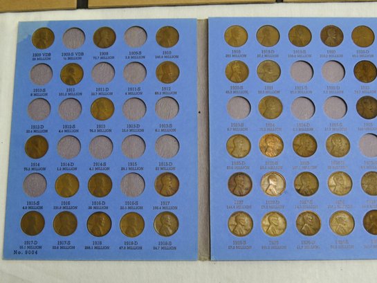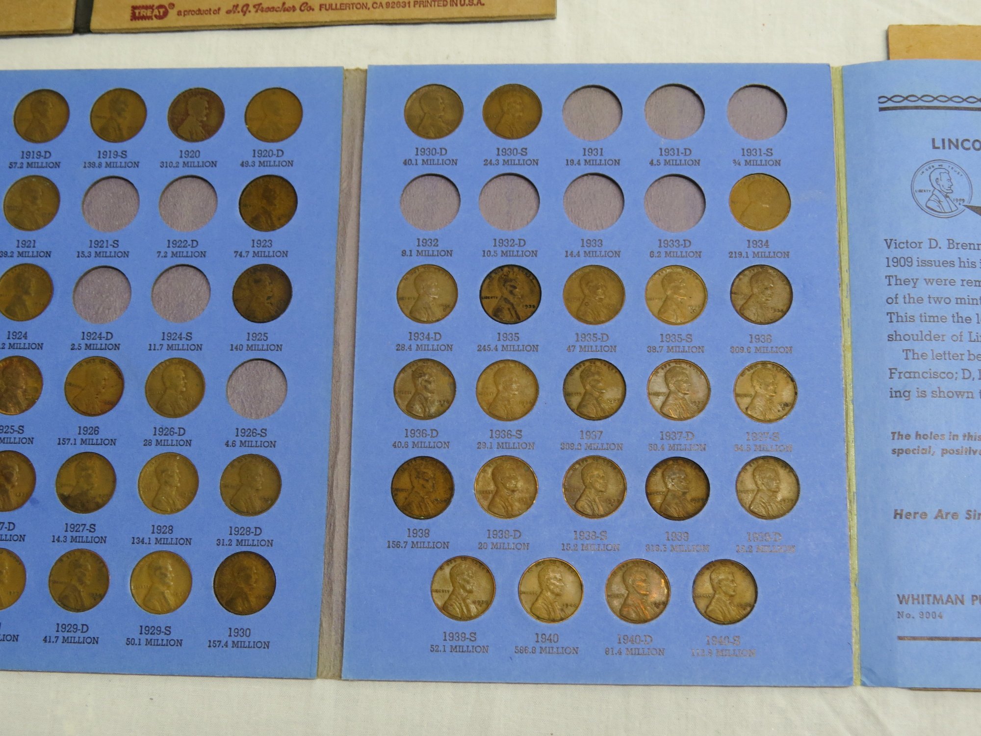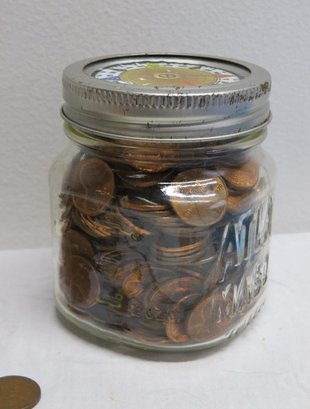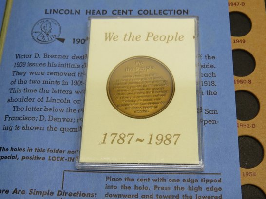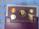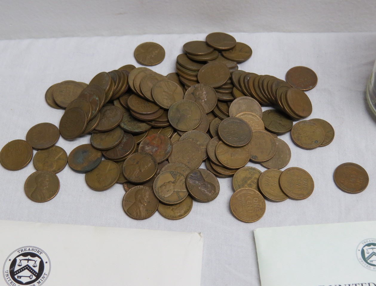 A small coin collection including Whitman binders of US Wheat Cents, a few Indians, type coins, US Mint Sets from 1987, 1989 & 1991, a US Proof Set 1991, a pile of loose wheaties, another small jar of memorial cents that look to be all copper, mostly 1960's-70's era, commemorative coin, etc.