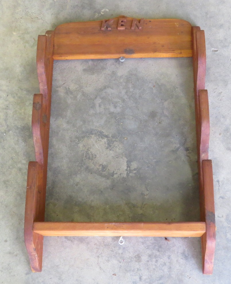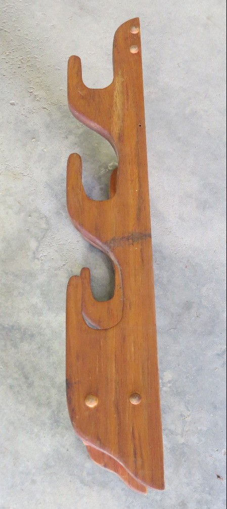 Small pine gun rack, 16" wide, 25.5" length overall, wall mount.