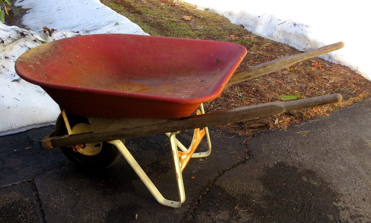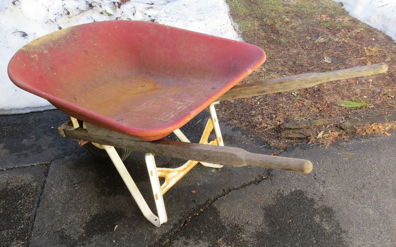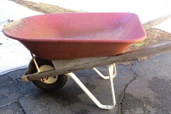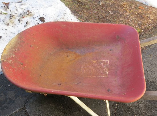 A well built vintage wheelbarrow, all steel construction heavy gauge, much better than the cheap metal ones you find at Lowe's today. Tire needs some air, built to work.