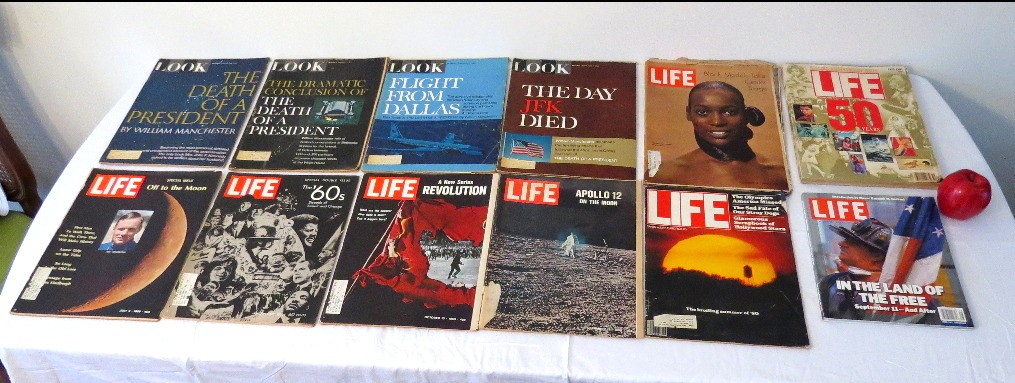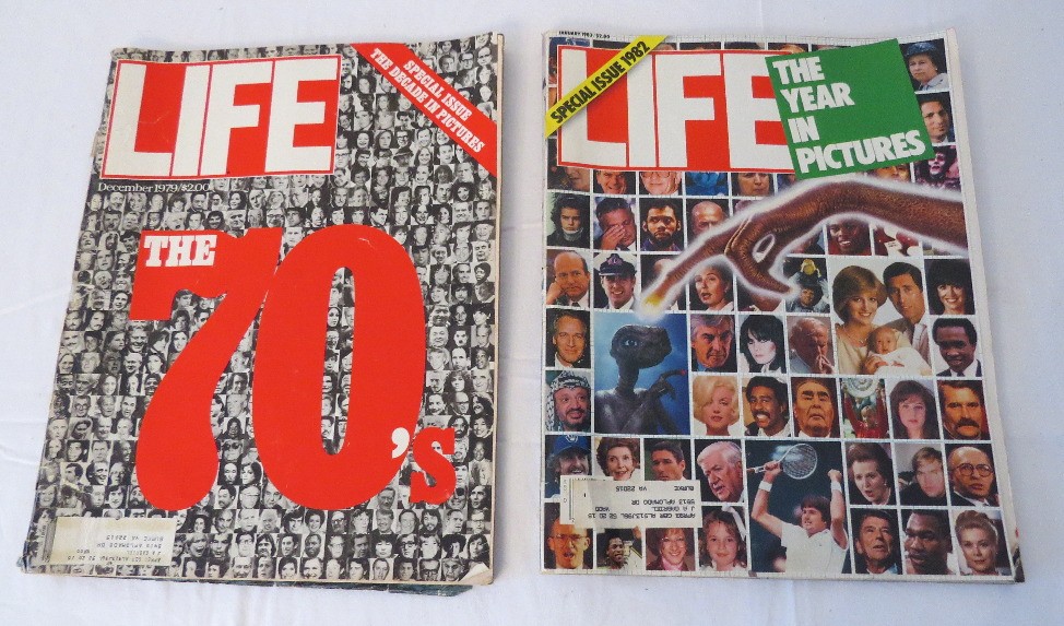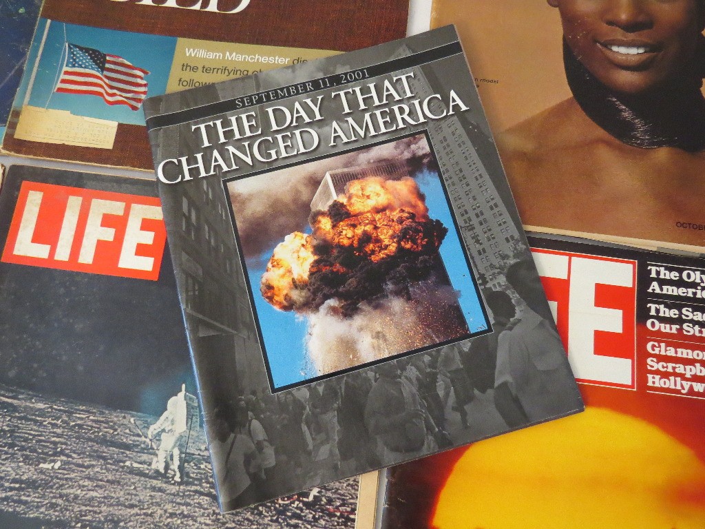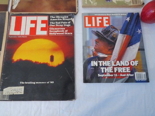 Group of large format Life magazines of the mid-1960's to 1980's mostly, with a 9/11 issue as well.