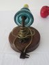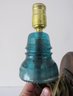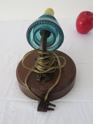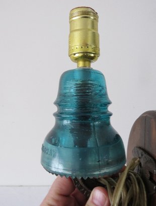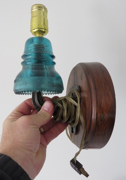A Hemingray blue insulator on bracket wall lamp, bring your own shade.