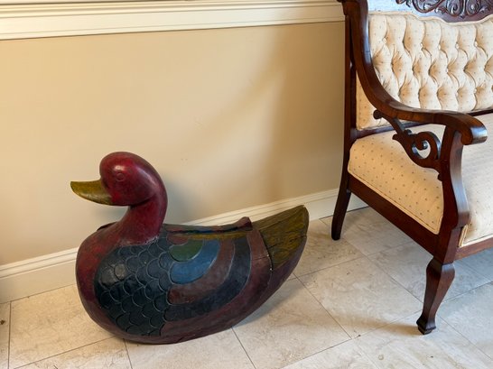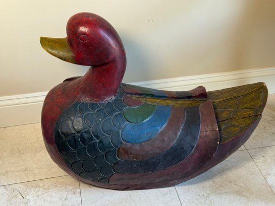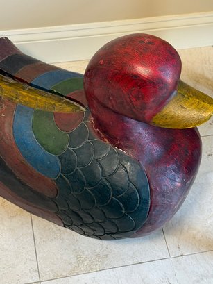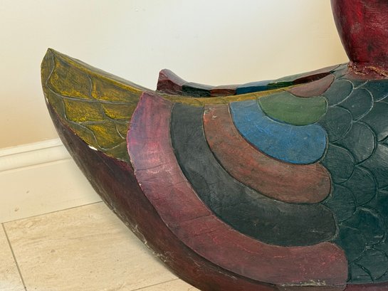 A Very Large Carved Wooden Duck Statue