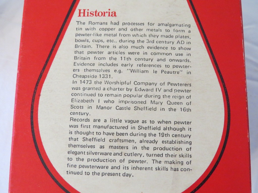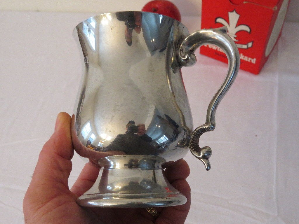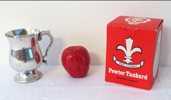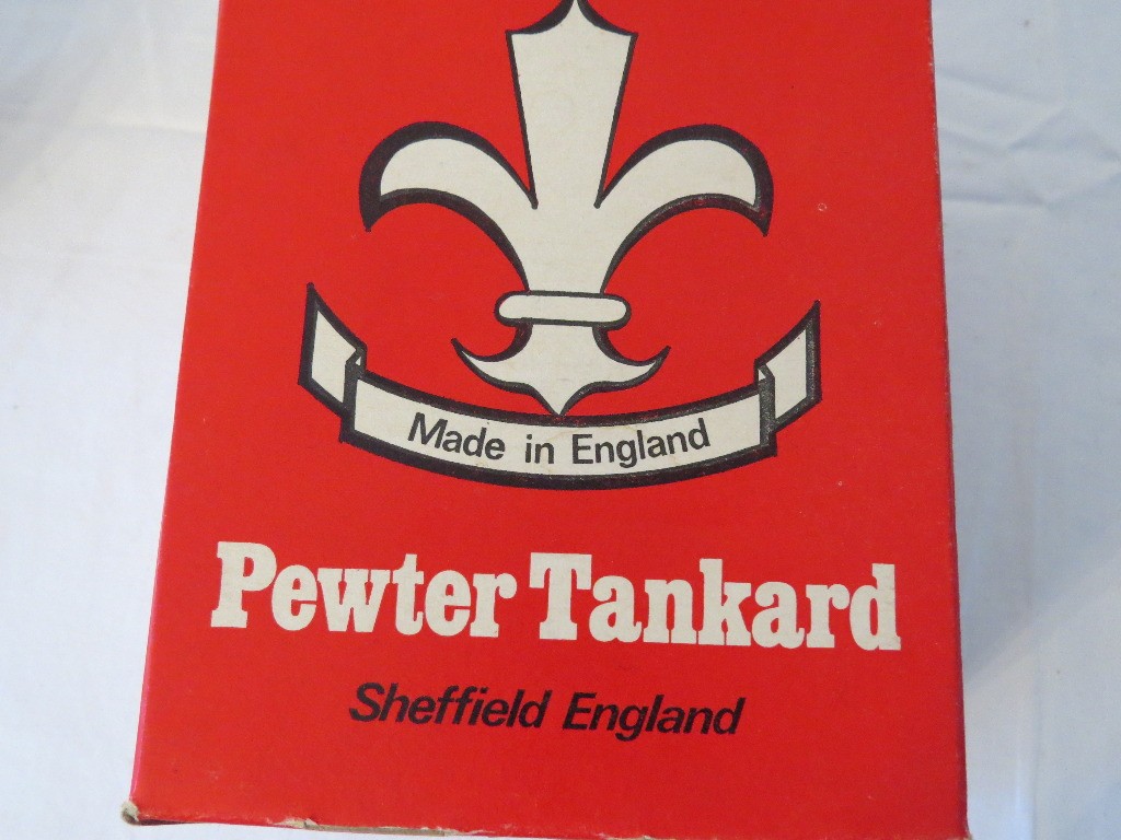 A vintage Sheffield England pewter tankard in the original box, movie prop, reenactors, collectors and more will like this one.