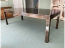 With two leaves. Beautiful finish - trendy and new again. Inset metal banding to wood. WOW!