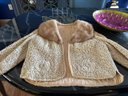 This pice says medium but it looks like a small medium. The tank zips up the back and is made totally of woven ribbon. The jacket has 3/4 length arms and a mink collar. The tag says Nicholas Furs New Haven.