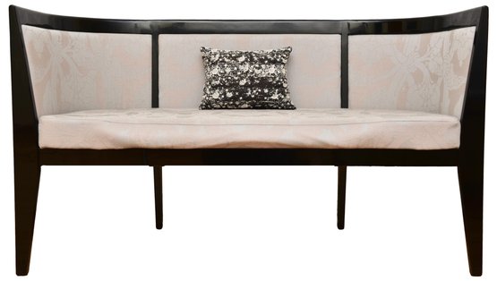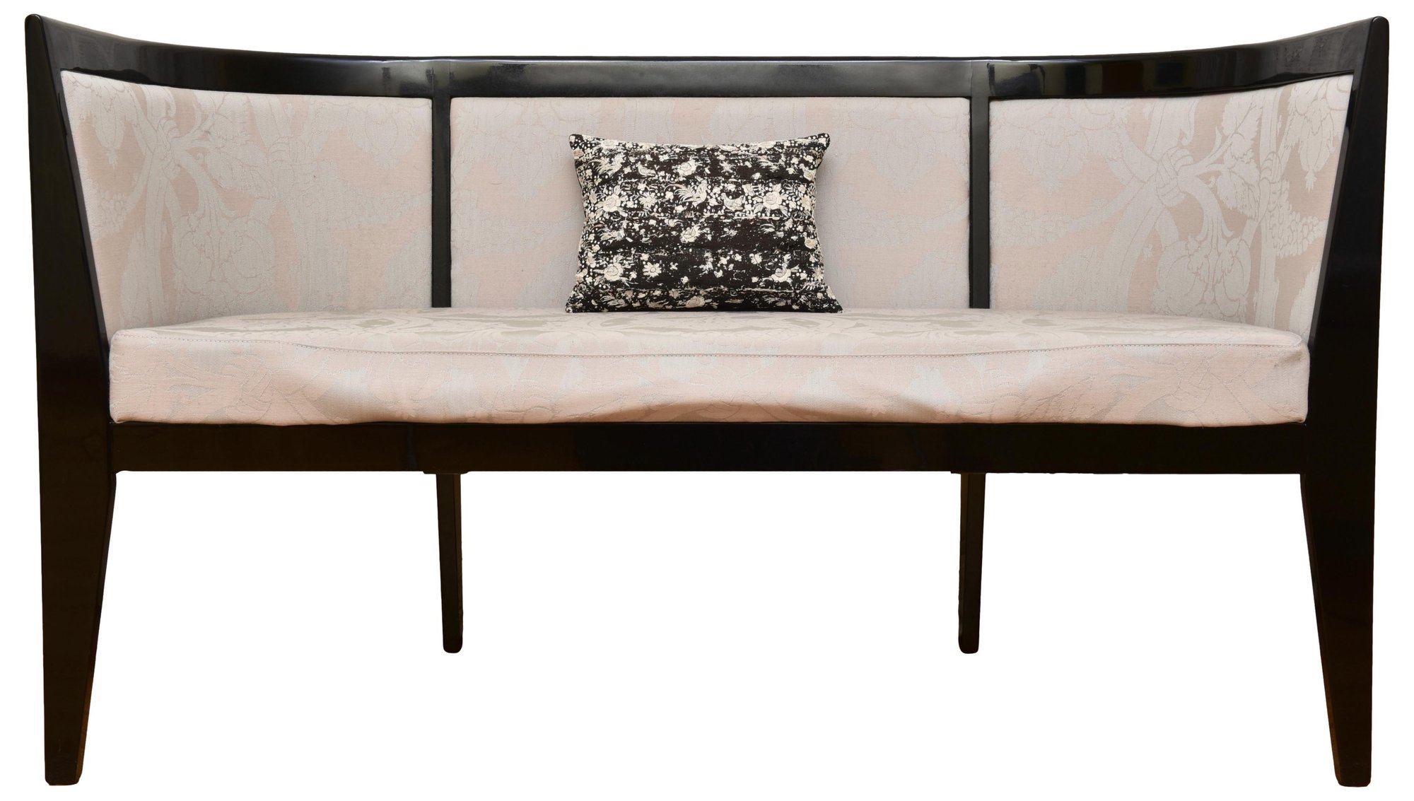 Upholstered in Jack Lenore Larsen heirloom fabric with alabaster weave.