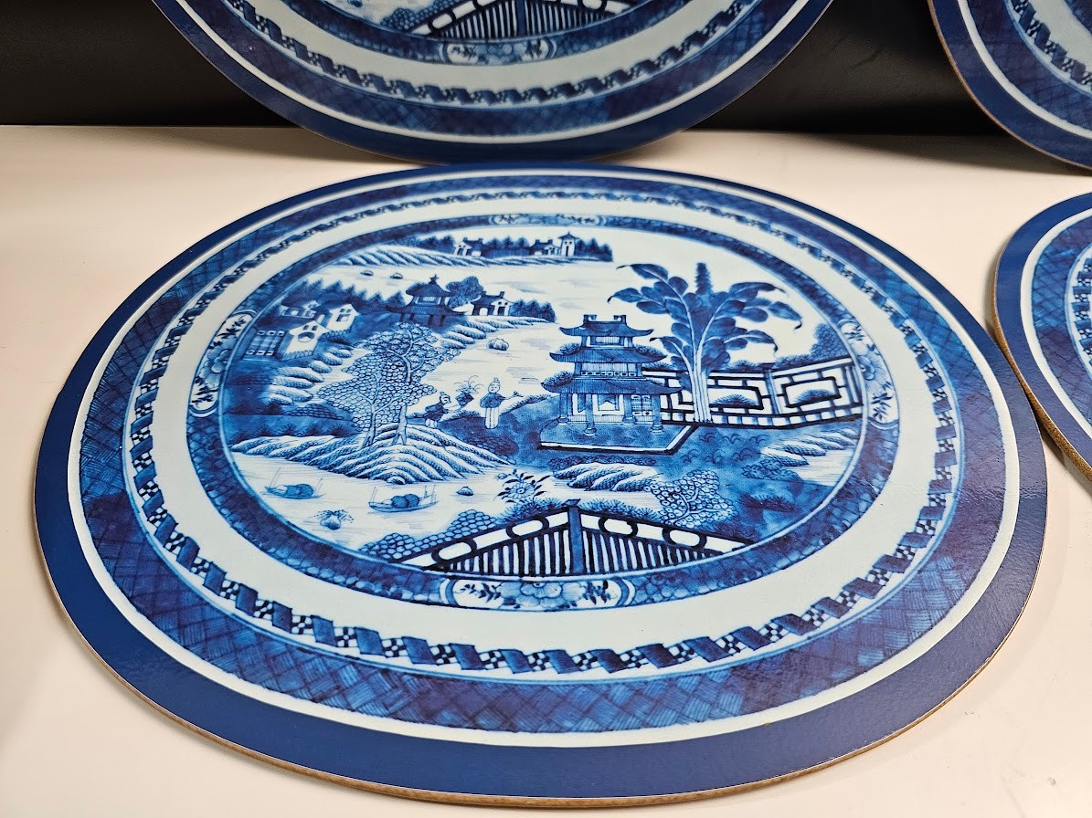 Acorn iconic blue willow asian replica dinner mat set of 4