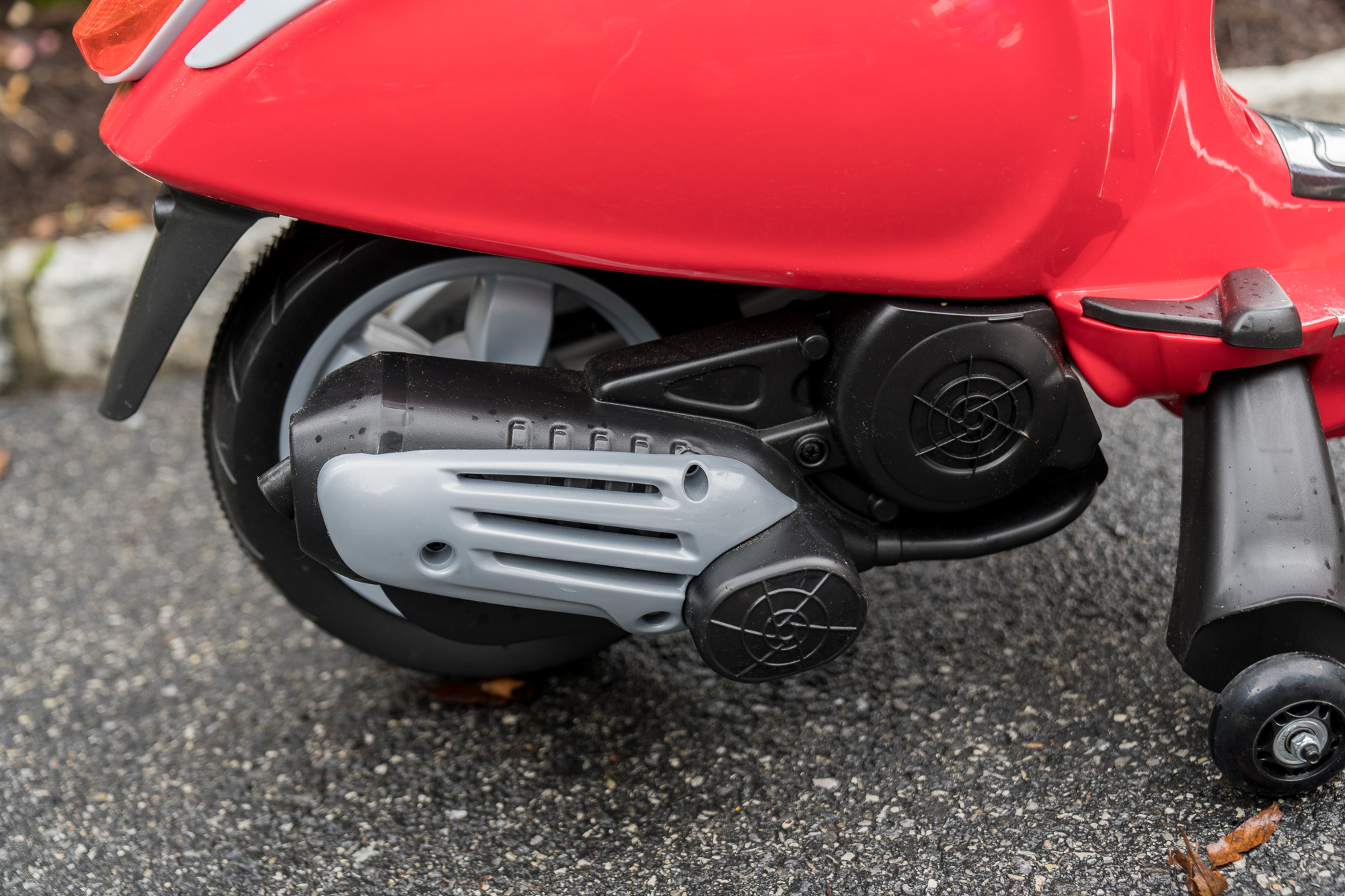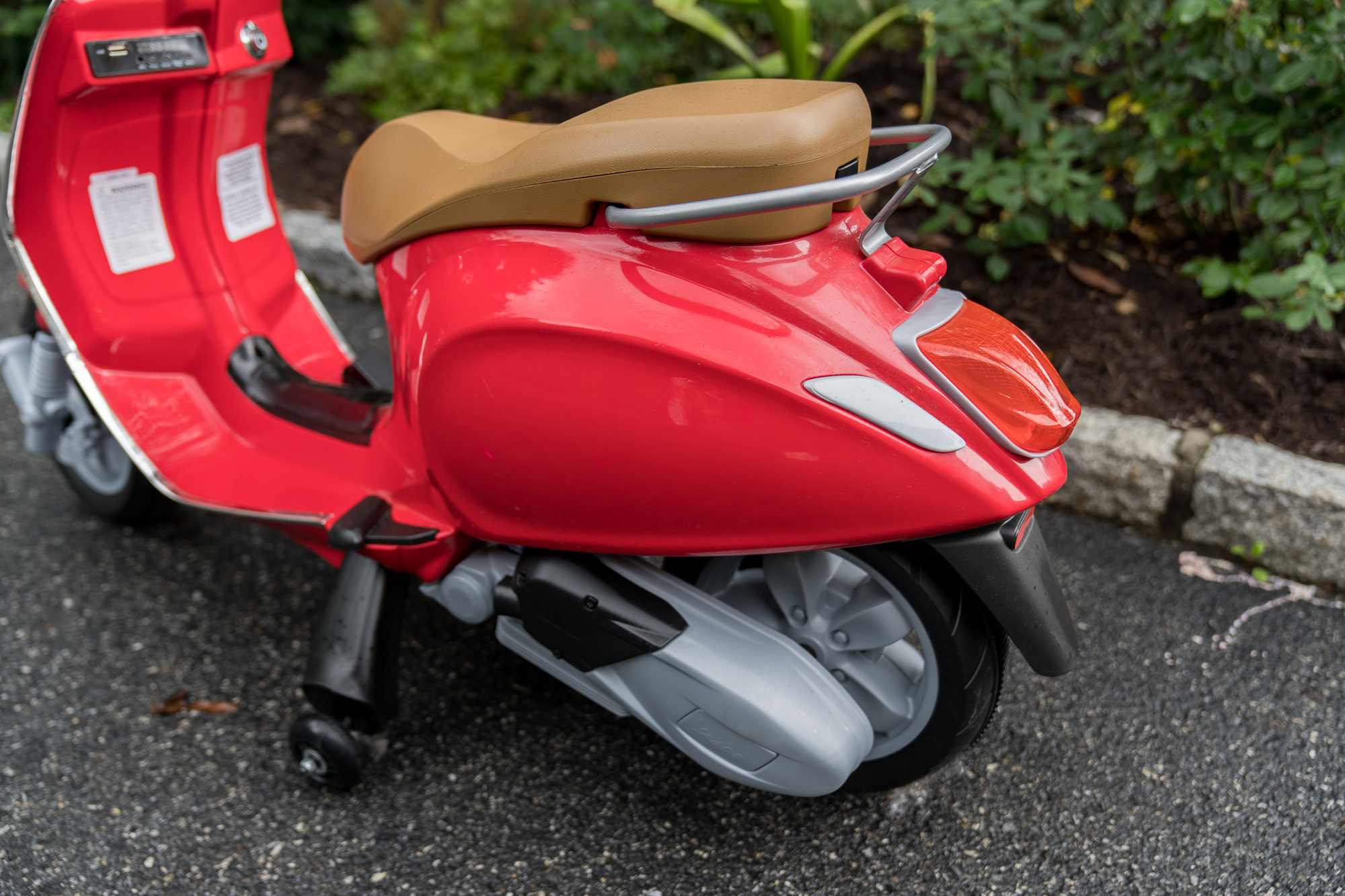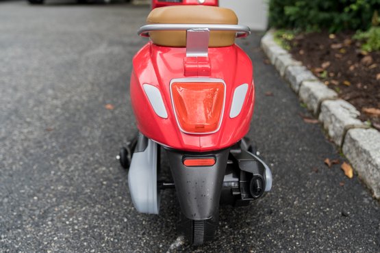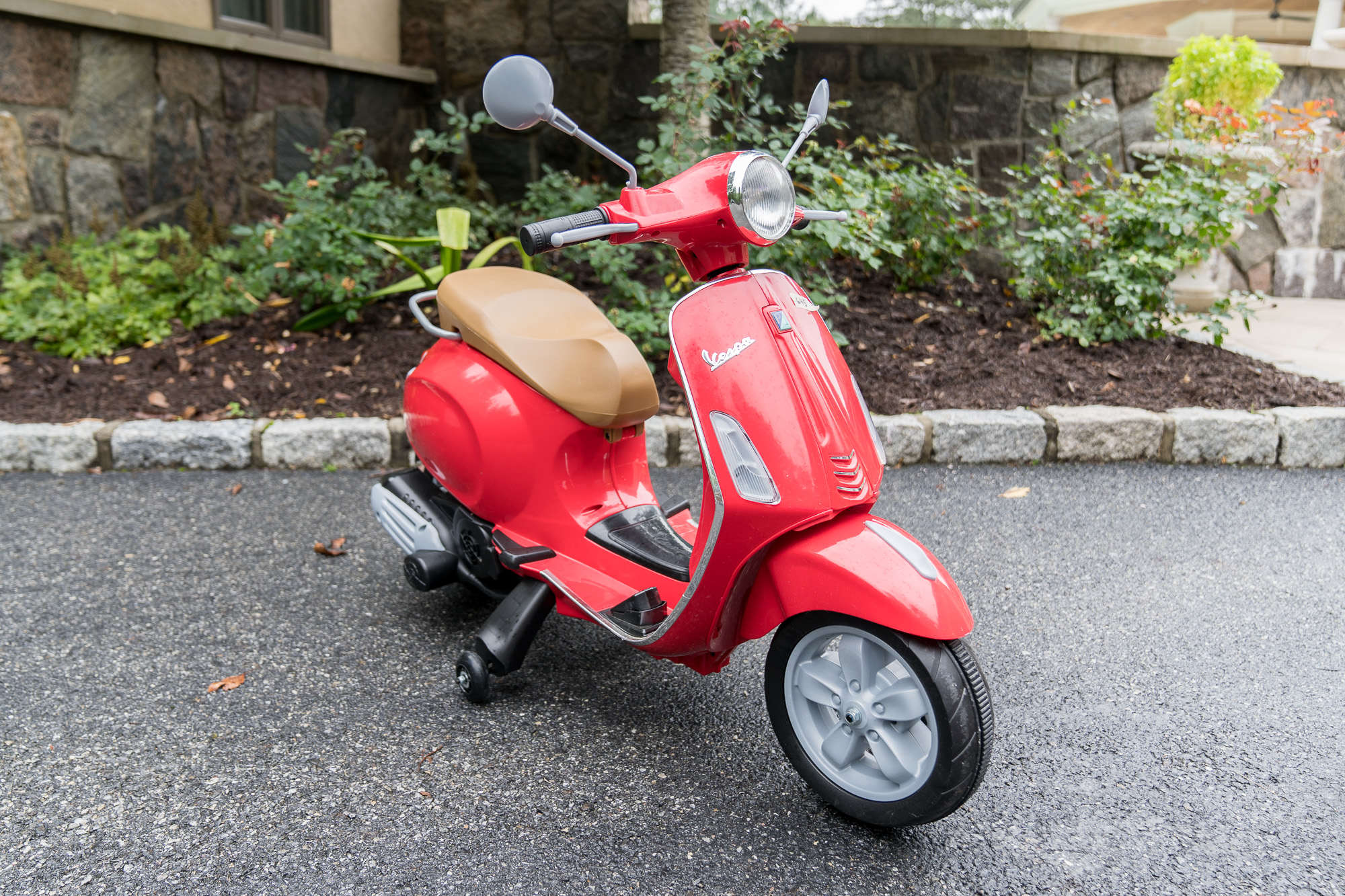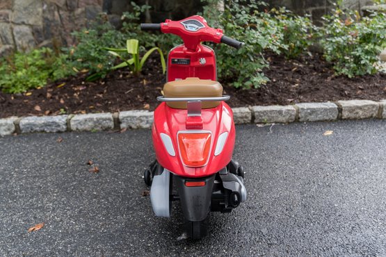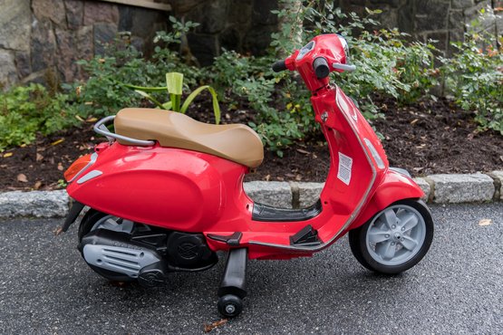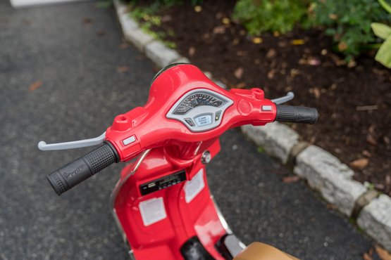 Perfect for the first electric scooter with two-wheels. Great 1st step before getting a bicycle (or someday a real Vespa). The Vespa is equipped with a 12V drive, working lights, and MP3 sound.