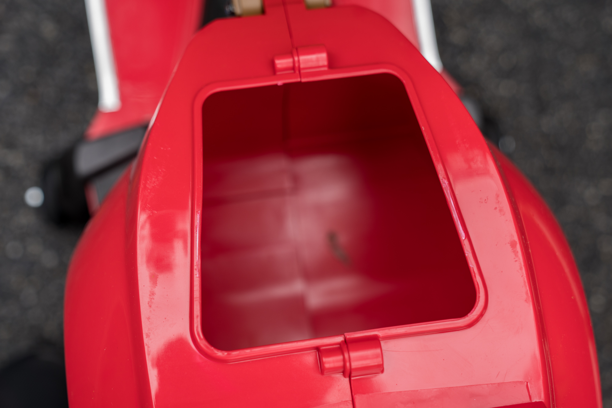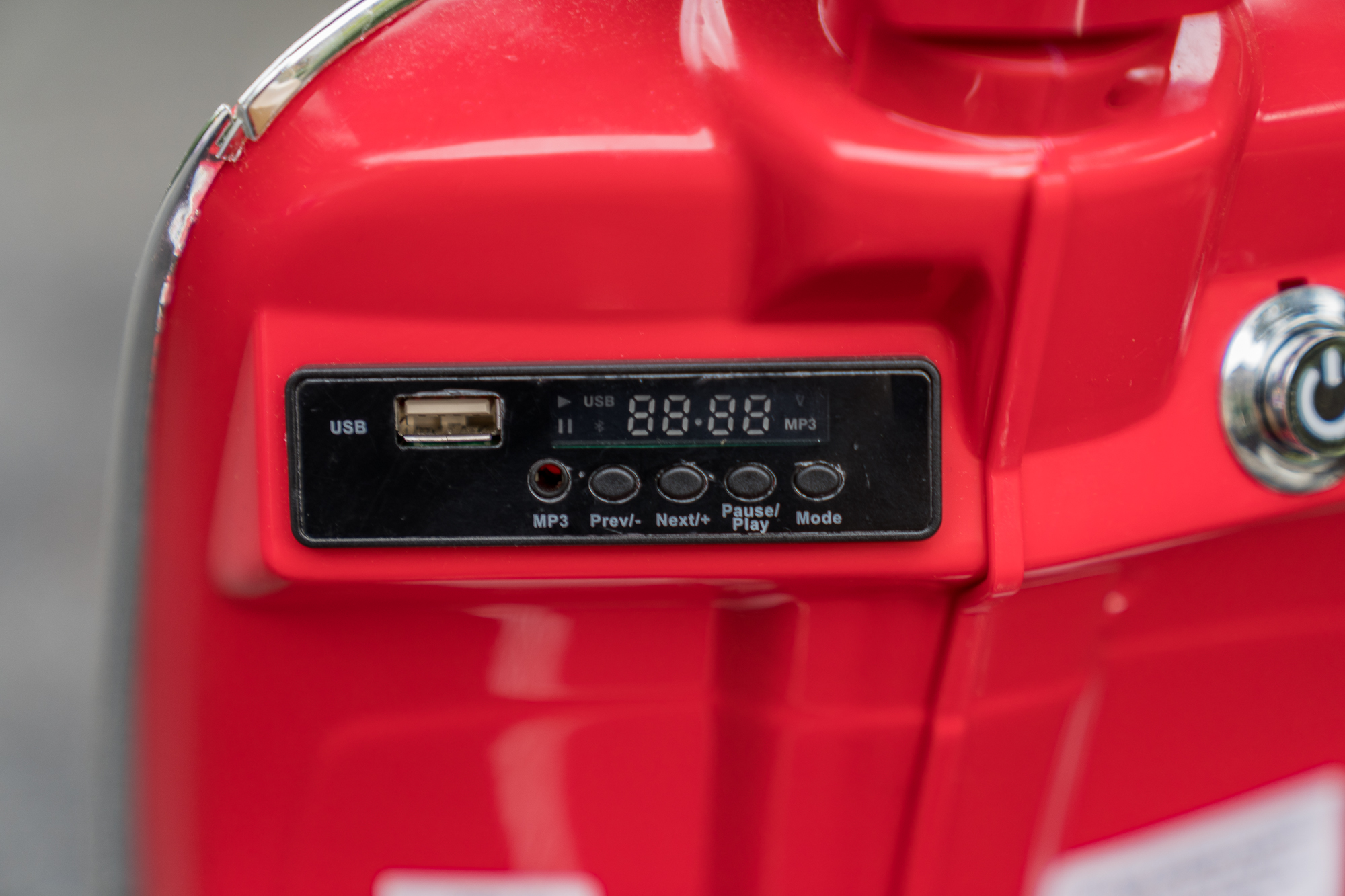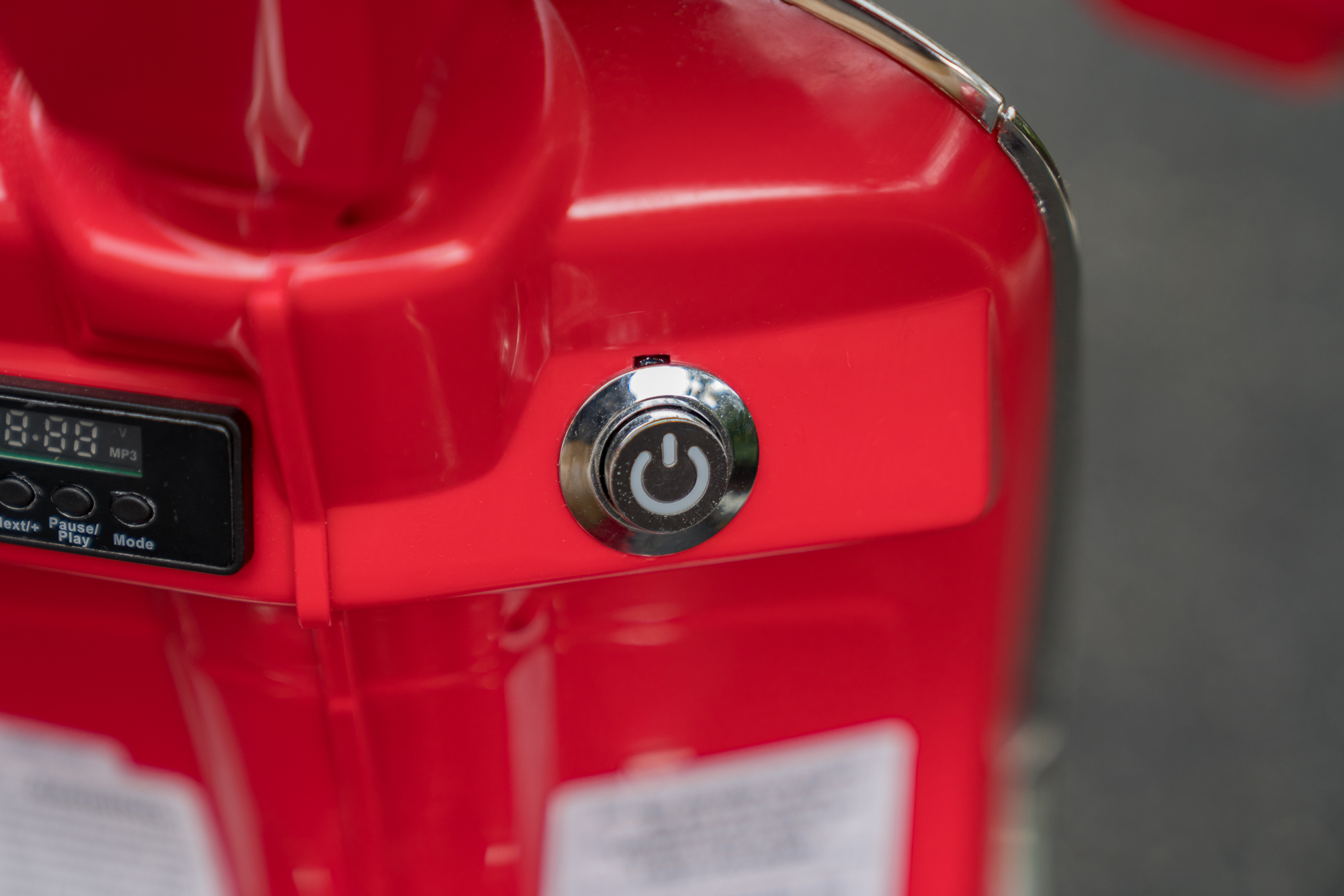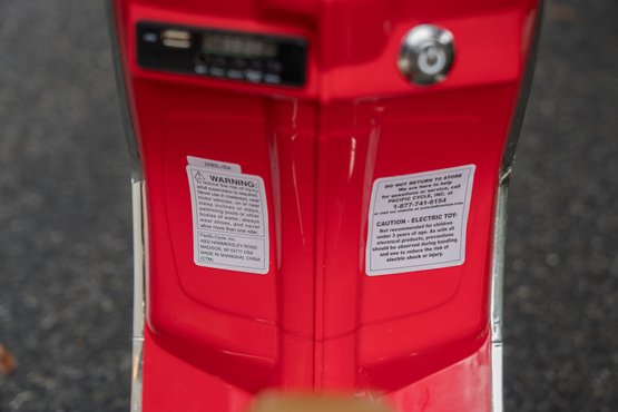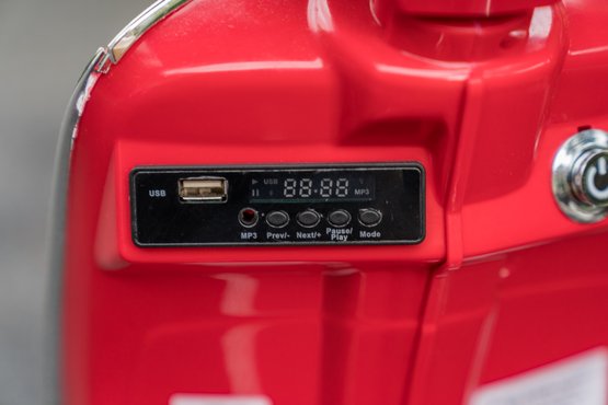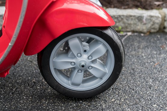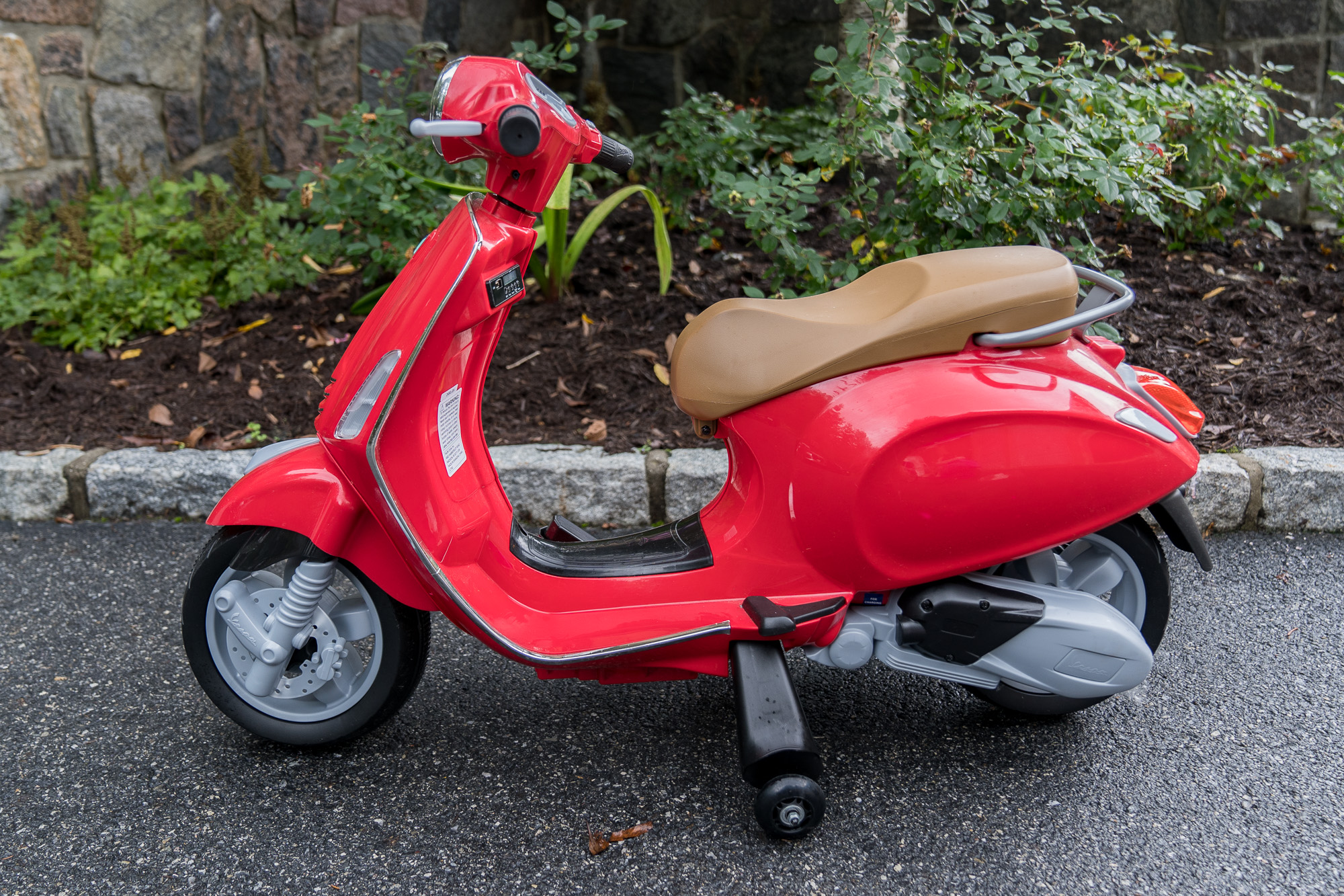 Perfect for the first electric scooter with two-wheels. Great 1st step before getting a bicycle (or someday a real Vespa). The Vespa is equipped with a 12V drive, working lights, and MP3 sound.