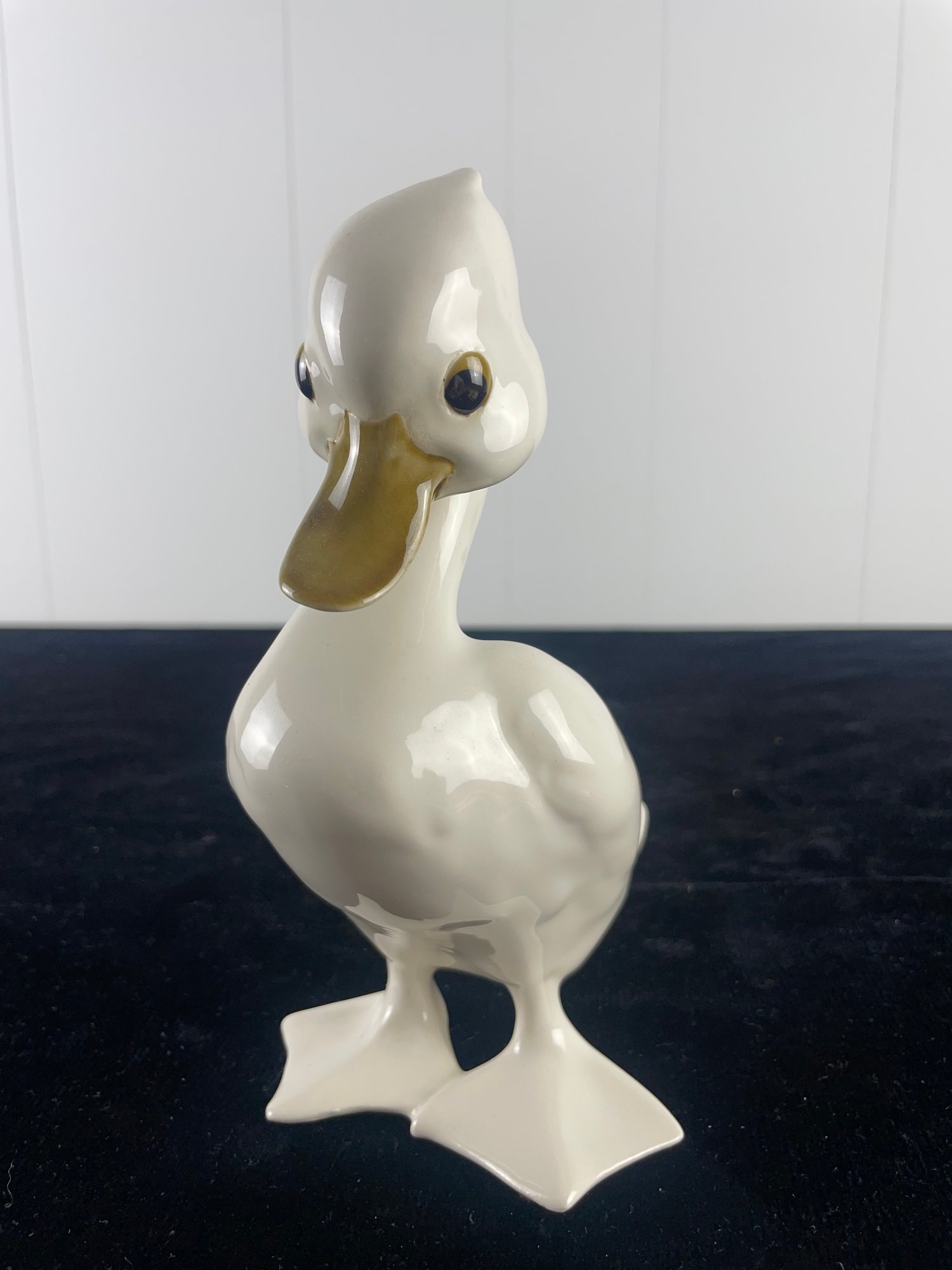 Painted duck shaped sculpture. Engraved on bottom. No damages seen in images. See photos for more conditions and sizing.