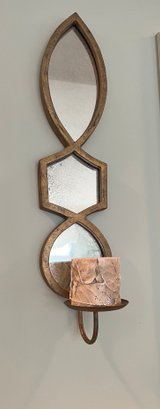 Pair of mirrored wall sconces in burnished geometric